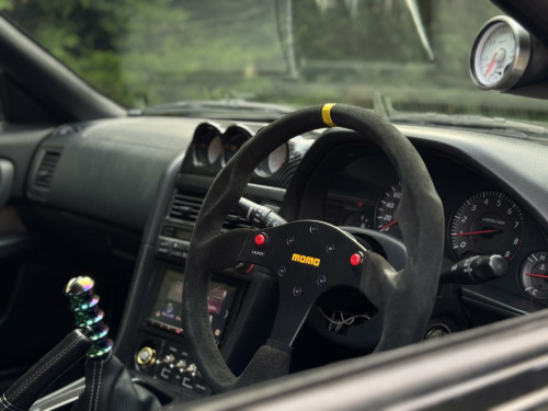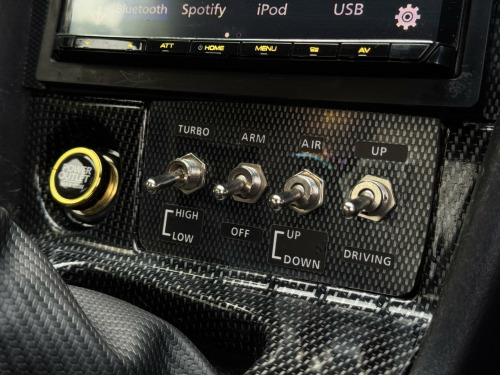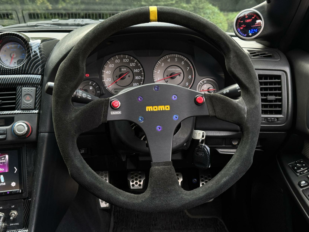 Specification is extensive, retaining matching original chassis and engine numbers. Highlights include a Garrett GTX3076 Gen 2 turbocharger, Link G4+ ECU with safety features, Plazmaman front-facing intake plenum, billet throttle body, full Ceika big brake kit, Full adjustable suspension upgrades combined with SuperPro bushings, Tein tie rods, carbon fibre GTR vented front wings, bonnet and 50mm rear fenders, Top Secret carbon GT spoiler, AS-style front lip, full GTR front-end conversion, Old-Skool Racing Heart 19' Alloy wheels, Blitz Nur Spec R exhaust, Bride Stradia II low-cushion seats, Momo 80 Evo steering wheel, Defi gauges and Focal speakers. The Meister coilovers’ air-cup system allows the vehicle to be lifted for low-entry access.