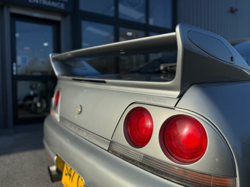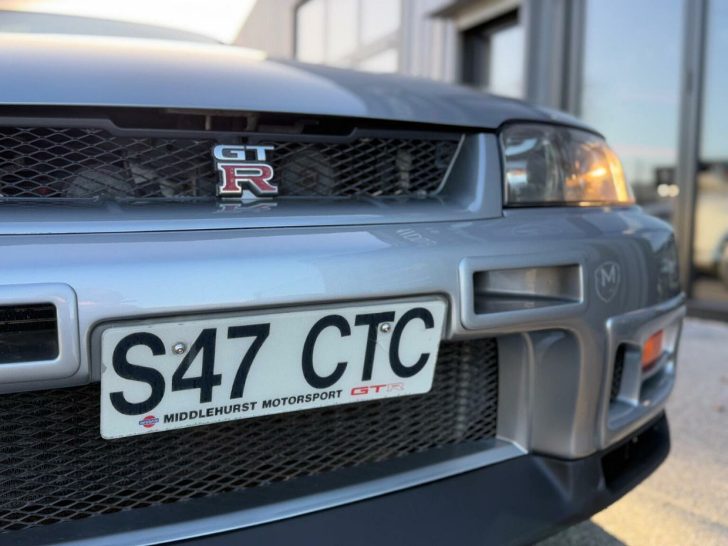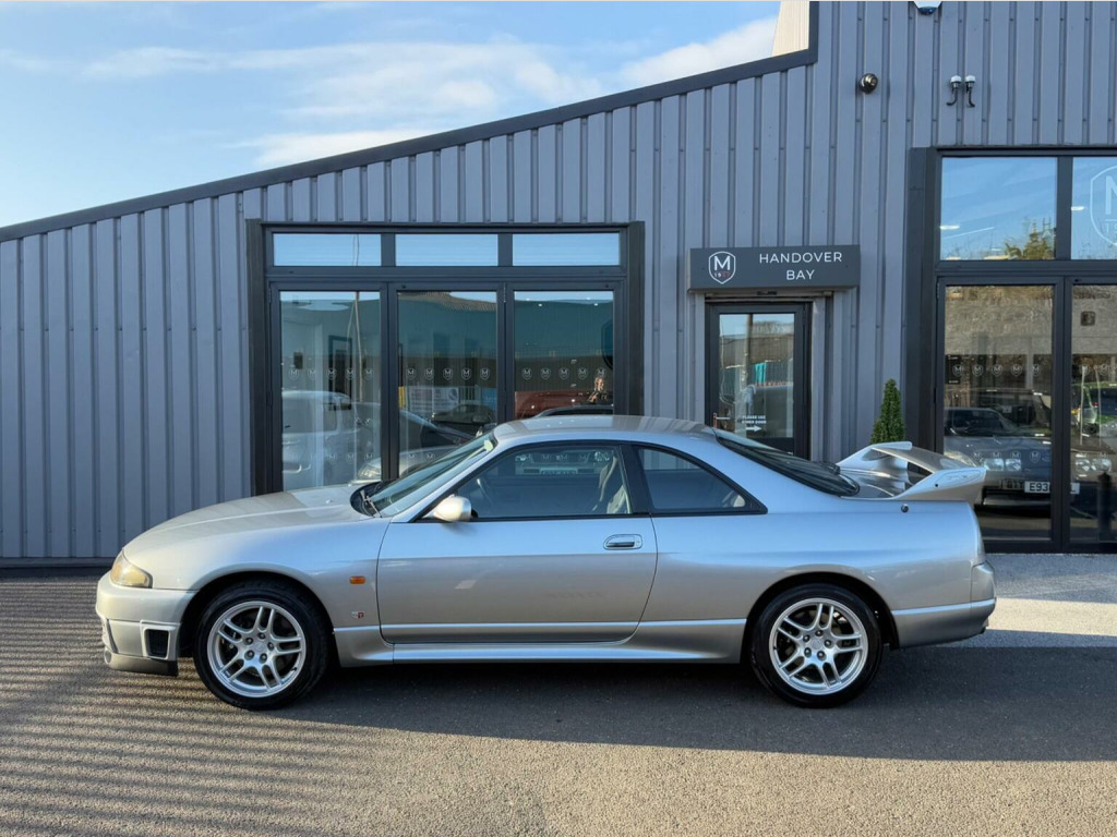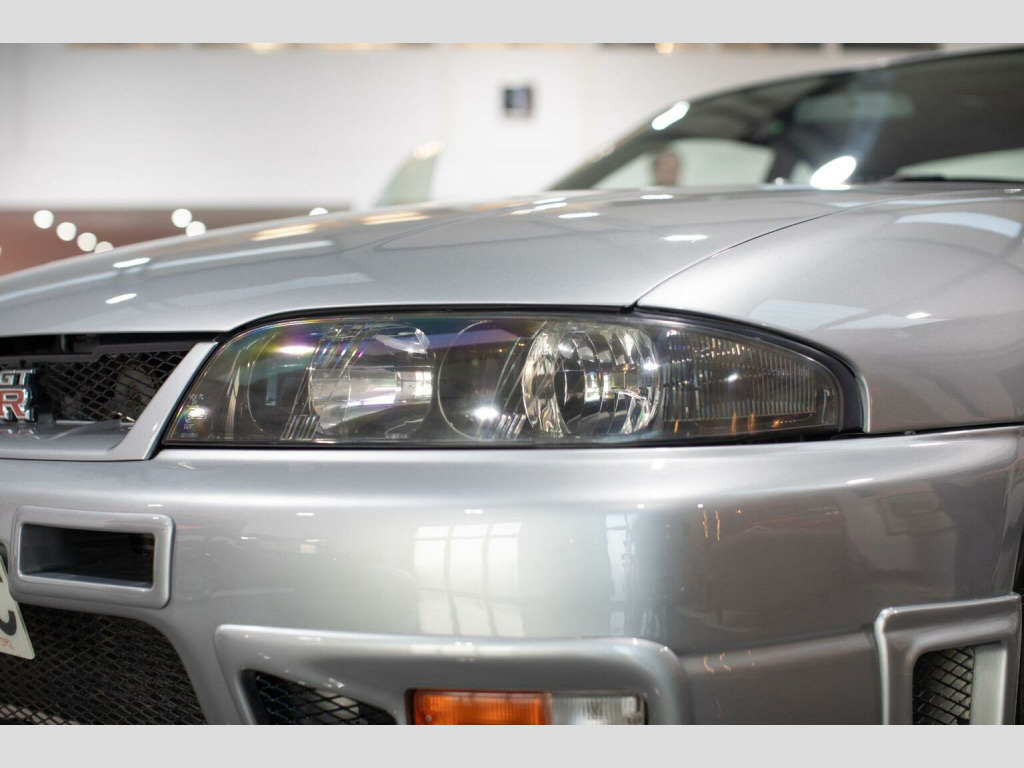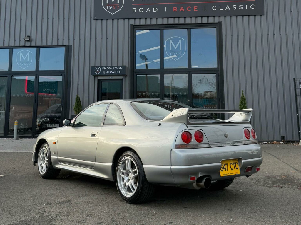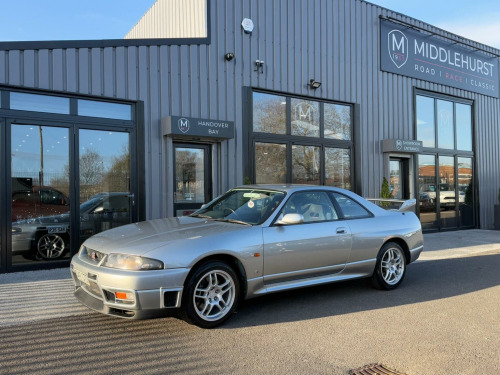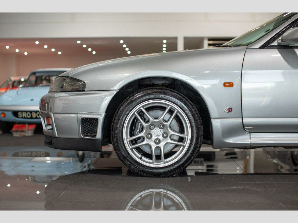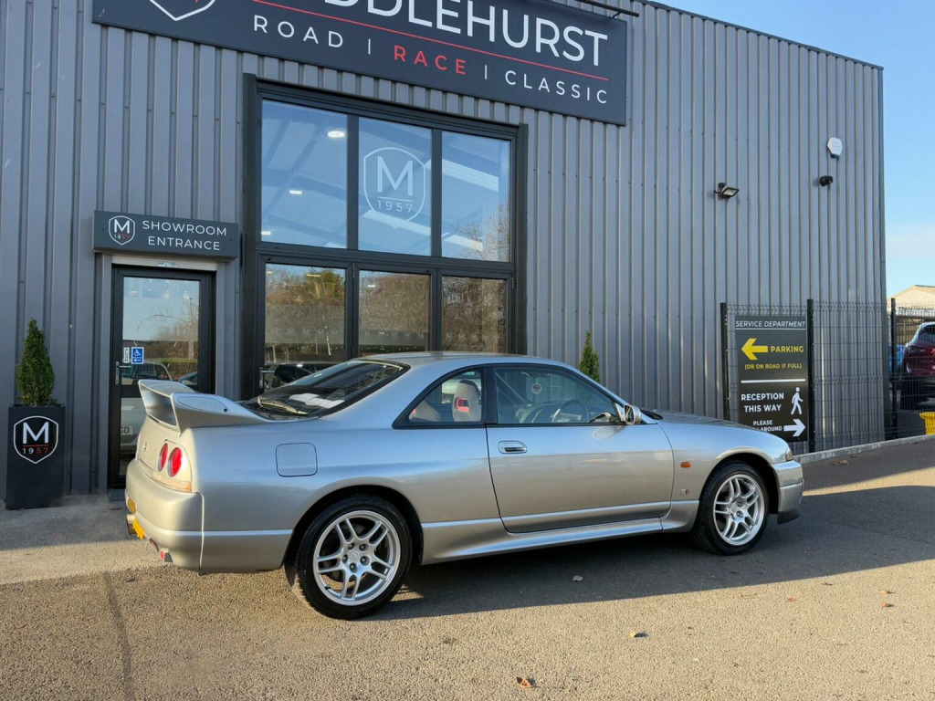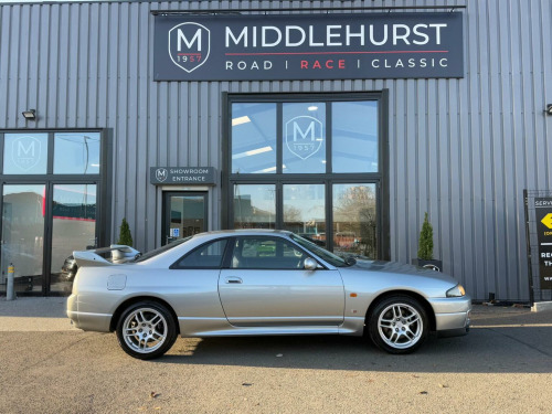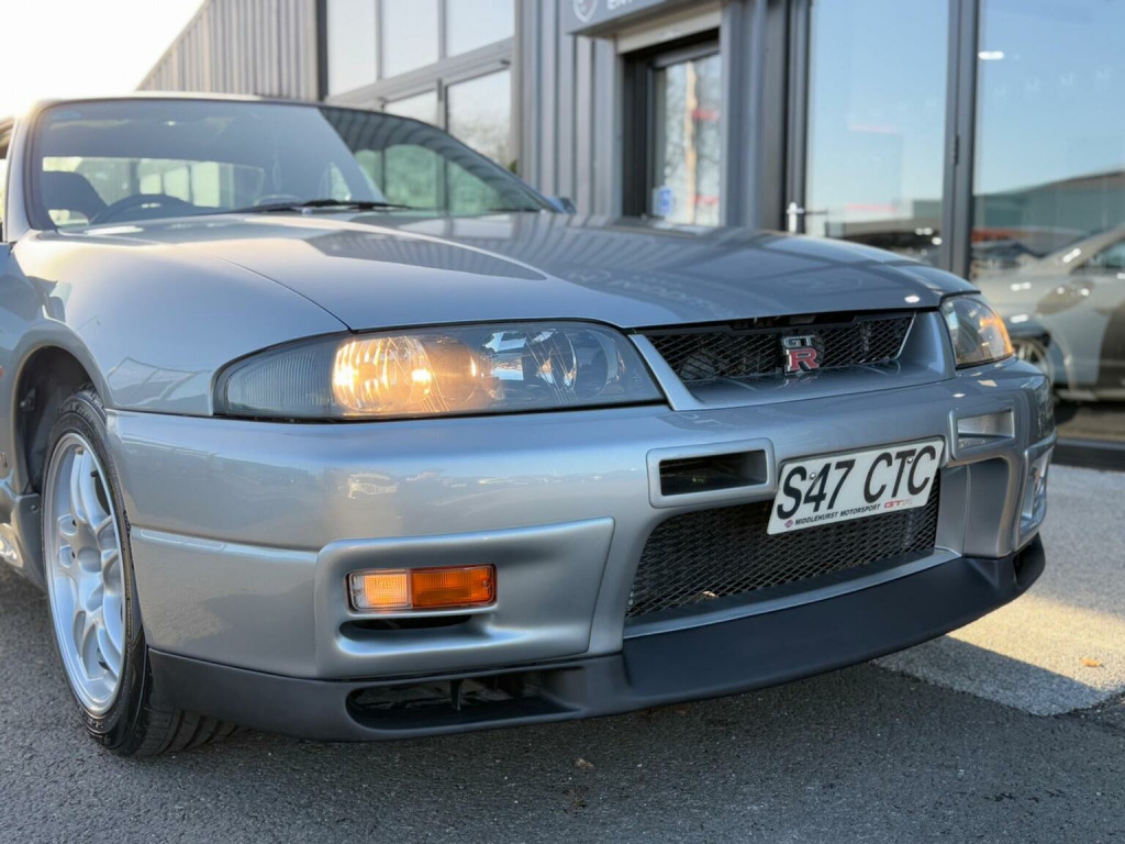 Middlehurst Road Race & Classic present this 1998/S registration, official UK specification Nissan Skyline GT-R R33 V-Spec (Series 3) finished in Sonic Silver (KR4) with grey cloth interior. This is 1 of the 100 UK cars that we supplied new from our Nissan dealership (Middlehurst Motorsport). It has been owned by the previous owner since it was just 6 months old and is therefore remarkably still only a 2 owner car. Middlehurst Motorsport were the only authorised dealer in the UK and supplied every single UK specification R33 and R34 GT-R, endorsed by Nissan Motor Company GB. The differences between standard grey imports and official UK specification examples are as follows: MPH speedometer cluster, E marked halogen headlamps, E marked glass, UK stereo head unit (Kenwood), Kenwood 6CD Autochanger, Thatcham category 1 alarm/immobiliser, modified engine ECU for EU fuels, engine oil cooler, differential cooler, gearbox cooler and transfer cooler with pumps developed by Nissan Motorsport (Nismo) Europe. They were also fully SVA tested (singly type approved) and had a unique front and rear bumper. The front bumper has engine oil cooler outlet (vent) on the passenger side, along with the inserts on the front bumper with built in indicators and sidelights. , We have a large history file present, with a fully stamped service book (every 6 months!) from brand new until 2008 when it was laid up. Since then it has been in dry storage after it had some major restoration work completed by ourselves in 2014/15, including two brand new genuine rear quarter panels, various bits of welding and a full glass out respray. In November 2025, it has been freshly serviced, a R35 coil pack conversion, MOTd and all the alloys have been refurbished, again by us. It is now on the button and ready to enjoy. Further restoration COULD be done on the underside and in the engine bay by the new owner if they wish (for example things like detailing the engine bay and re-doing the strut tops), but the good thing is that all of the MAJOR welding and restoration work has already been done.