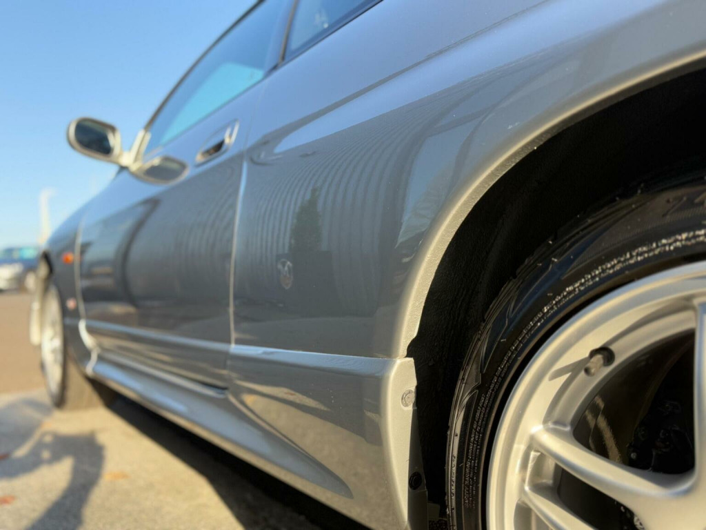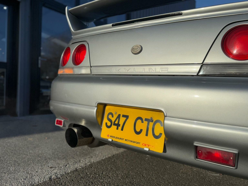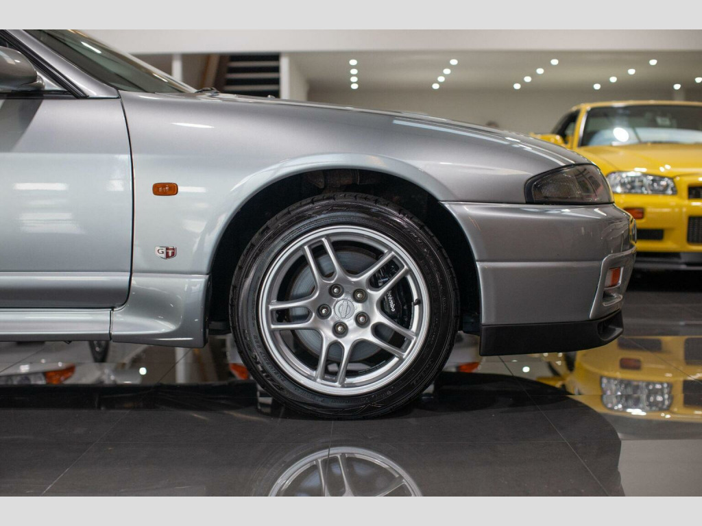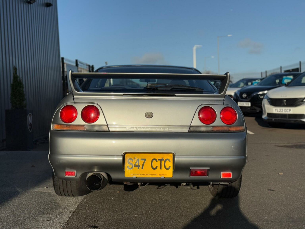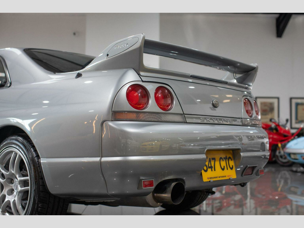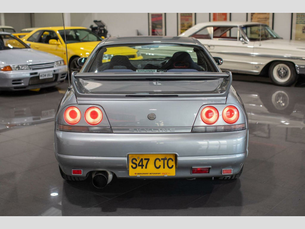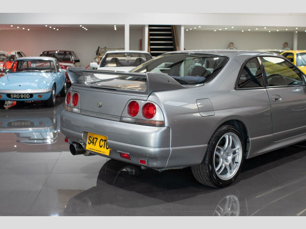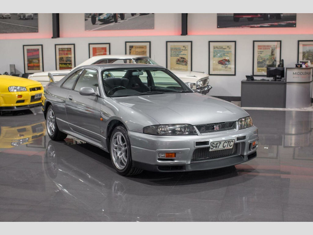 Middlehurst Road Race & Classic present this 1998/S registration, official UK specification Nissan Skyline GT-R R33 V-Spec (Series 3) finished in Sonic Silver (KR4) with grey cloth interior. This is 1 of the 100 UK cars that we supplied new from our Nissan dealership (Middlehurst Motorsport). It has been owned by the previous owner since it was just 6 months old and is therefore remarkably still only a 2 owner car. Middlehurst Motorsport were the only authorised dealer in the UK and supplied every single UK specification R33 and R34 GT-R, endorsed by Nissan Motor Company GB. The differences between standard grey imports and official UK specification examples are as follows: MPH speedometer cluster, E marked halogen headlamps, E marked glass, UK stereo head unit (Kenwood), Kenwood 6CD Autochanger, Thatcham category 1 alarm/immobiliser, modified engine ECU for EU fuels, engine oil cooler, differential cooler, gearbox cooler and transfer cooler with pumps developed by Nissan Motorsport (Nismo) Europe. They were also fully SVA tested (singly type approved) and had a unique front and rear bumper. The front bumper has engine oil cooler outlet (vent) on the passenger side, along with the inserts on the front bumper with built in indicators and sidelights. , We have a large history file present, with a fully stamped service book (every 6 months!) from brand new until 2008 when it was laid up. Since then it has been in dry storage after it had some major restoration work completed by ourselves in 2014/15, including two brand new genuine rear quarter panels, various bits of welding and a full glass out respray. In November 2025, it has been freshly serviced, a R35 coil pack conversion, MOTd and all the alloys have been refurbished, again by us. It is now on the button and ready to enjoy. Further restoration COULD be done on the underside and in the engine bay by the new owner if they wish (for example things like detailing the engine bay and re-doing the strut tops), but the good thing is that all of the MAJOR welding and restoration work has already been done.