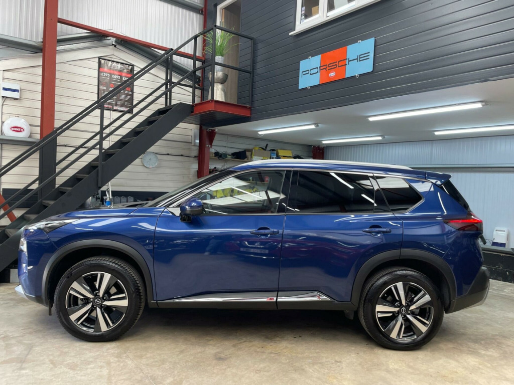 A VERY RARE EXAMPLE OF THIS HIGHLY POPULAR NEW SHAPE NISSAN XTRAIL TEKNA 7 SEATER WITH ONLY A HANDFUL AVAILABLE IN THE UK. FRESHLY SERVICED BY NISSAN AND BACKED WITH 11 MONTHS NISSAN ROADSIDE ASSIST/BALANCE OF MANUFACTURERS WARRANTY. XTRAIL 1.5 DIG-T MHEV AUTOMATIC. FINISHED IN CASPIAN BLUE AND COMPLIMENTED BY PREMIUM BLACK LEATHER HEATED MEMORY SEATS. SPECIFICATION INCLUDES: BOSE PREMIUM 6 SPEAKER SOUND SYSTEM, REAR DOOR SUNSHADES, 19 INCH DIAMOND CUT ALLOYS, ELECTRIC ROOF WITH SUNSHADE, FRONT AND REAR HEATED SEATS, HEATED STEERING WHEEL, LED HEADLAMPS, 12.3 TOUCHSCREEN WITH WIRELESS ANDROID AUTO AND APPLE CAR PLAY, 3D MAPS/WEATHER, TRAFFIC JAM PILOT, TOM TOM SERVICES LIVE TRAFFIC, VIRTUAL ASSISTANT, REAR USB CHARGING, REAR VIEW CAMERA, SKY PACK, AROUND VIEW MONITOR WITH MOVING OBJECT DETECTION, AMBIANT LIGHTING, POWER TAILGATE WITH HANDSFREE FUNCTIONALITY, PRO PILOT WITH HEAD UP DISPLAY, WIRELESS PHONE CHARGING PAD, 7 SEATS, INTELLEGENT CRUISE, DRIVING AIDS, BLIND SPOT WARNING, LANE DEPARTURE WARNING, EMERGENCY BRAKE ASSIST. COMPLETE WITH ALL MANUALS BOTH KEYS. v power sockets in dash and luggage space, 19in alloy wheels - diamond cut, 3 x 3-point rear seatbelts with load limiter and pretensioner, 40-20-40 folding rear seats, abs with ebd and brake assist, am-fm-dab audio system, active brake limited slip, advanced 10.8in head up display, advanced windscreen head up display, alarm - thatcham, android auto and apple carplay - wired, anti dazzle rear view mirror, auto hold function, auto rear wiper when reversing, automatic tri-zone climate control with pollen filter, blind spot warning, bluetooth with audio streaming, body coloured door mirrors, body coloured handles, body side moulding, butterfly console, centre console storage and armrest, chrome window surrounds, curtain and front side - far-side airbags, drive modes - sport-normal-eco, driver seat back pockets, driver and passenger airbags, driver and passenger sun visor with illuminated vanity mirror, driver-passenger and rear seatbelt reminder, electric heated - automatic folding door mirrors, electric speed-sensitive power steering, electrically adjustable 2-way lumbar support on driver seat, electrically adjustable 2-way lumbar support on passenger seat, electrically adjustable drivers seat, emergency and breakdown call, engine immobiliser, engine start button, follow me home headlights, front cupholders, front seat belt height adjustment, front seat belts with load limiter and pretensioners, front usb connections - type a and type c, front and rear door pockets with drink holders, front and rear electric windows, front and rear parking sensors, full digital 12.3in tft digital combimeter, google maps services - search - weather - 3d maps and google street view, handsfree automatic opening power tailgate, head restraints - 3 rear, headlight auto levelling system, headlights - high beam assist, heated front seats, heated rear seats - second row, heated steering wheel, height adjustable driver seat, height adjustable front head restraints, height adjustable passenger seat, hill start assist, isofix child seat anchoring points, intelligent around view monitor, intelligent auto headlight, intelligent blind spot intervention, intelligent driver alertness, intelligent emergency braking with pedestrian recognition and cyclist recognition-junction assist, intelligent forward collision warning, intelligent key, intelligent lane departure warning, intelligent lane intervention, intelligent lane keep assist, intelligent rear automatic braking, interior chrome door handles, led daytime running lights, led headlights with adaptive driving beam, led rear fog lights, leather steering wheel and gear knob, luggage board system, luggage space lighting, maximum speed limiter, moving object detection, multifunctional steering wheel, nissan connect 12.3in touchscreen infotainment system, nissan connect navigation, partially body coloured bumpers, passenger seat back pockets, propilot with hud, puncture repair kit, rain sensing windscreen wipers, rear cross traffic alert, rear door child locks, rear privacy glass, rear reversing light - bulb, rear roof spoiler, rear seat armrest with 2 cupholders, rear styling plate, rear usb charging only ports - type a and type c, rear view camera, remote central locking with deadlocking, remote control services - door locks - lights - horn and car locator, shark fin antenna, sky pack, sliding 2nd row, speakers x6, splash free wipers, tpms - tyre pressure monitoring system, telematics - notifications and connectivity services, thermaclear heated windscreen, three blink turn signal, tilt and telescopic adjustable steering wheel, tomtom services live traffic, traffic jam pilot, traffic sign recognition, trip computer, vdc - vehicle dynamic control, virtual personal assistant and firmware over the air capability, wireless apple carplay, wireless charging pad, e-pkb - electric parking brake, premium bose sound system with 10 speakers - 2 tweeters - 6 high-medium frequency door speakers and 2 in the subwoofer, 3rd row - 2 additional seats, synthetic leather monoform - black