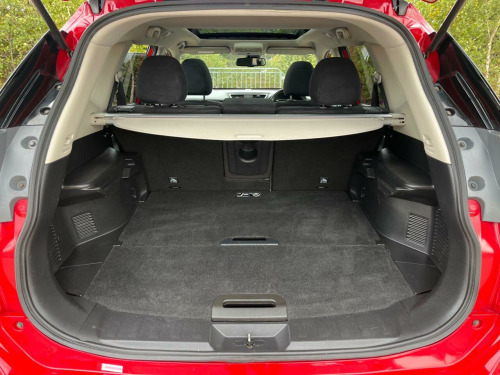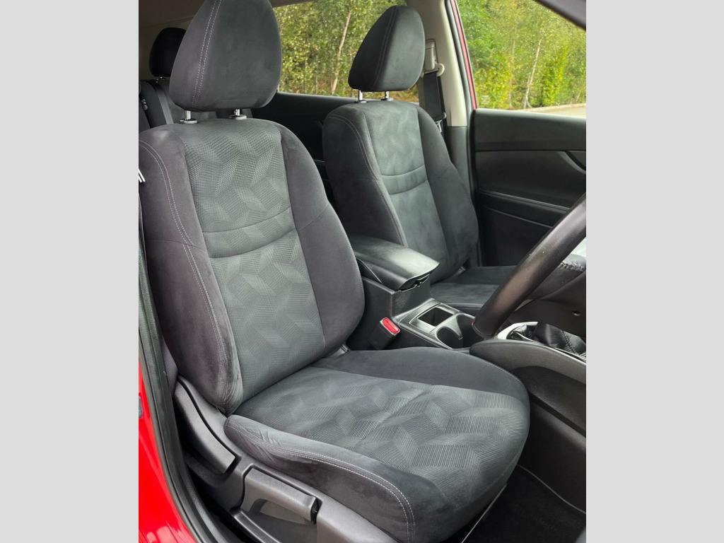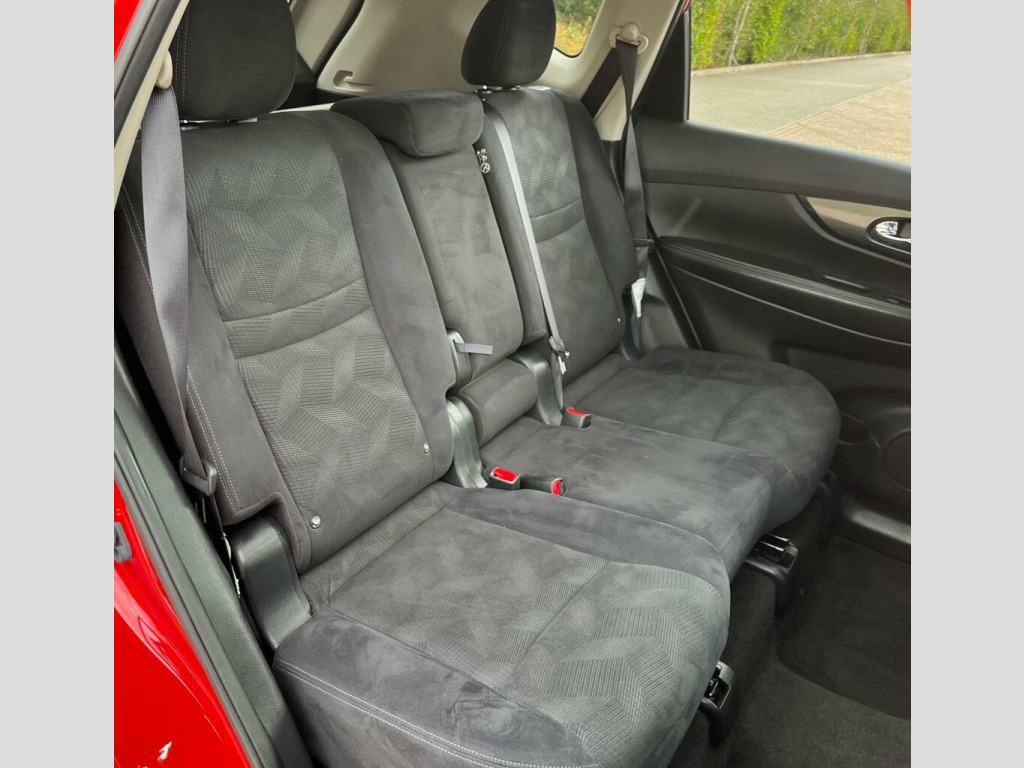 . 17in Alloy Wheels, 3 x 3-Point Rear Seatbelts, 5in High Definition Full Colour TFT Screen Combimeter, 6 Airbags, 6 Speakers, ABS with EBD and Brake Assist, AM-FM-CD Audio System, Alarm - Thatcham, Anti Dazzle Rear View Mirror, Auto Rain Sensing Wipers, Black Honeycomb Front Grille, Bluetooth with Microphone, Bumpers - Body Coloured, Chrome Window Surrounds, Cruise Control with Speed Limiter, Door Handles - Chrome, Dual Zone Climate Control Air Conditioning, ESP - Electronic Stability Programme, Electric Folding Door Mirrors, Engine Immobiliser, Front Fog Lamps with Chrome Ring, Front and Rear Armrests, Front and Rear Electric Windows, Front and Rear Parking Sensors, Head Restraints - 3 Rear, Head Restraints - Front, Hill Start Assist, ISOFIX Child Seat Anchoring Points for 2nd Row, LED Signature Daytime Running Lights, Leather Steering Wheel and Gear Knob, Luggage Board System, Metallic Grain Interior Inserts, Nissan Chassis Controls, Panoramic Sunroof with One Touch Shade, Power Assisted Steering, Rear Door Child Locks, Rear Privacy Glass, Rear Split Folding - Reclining and Sliding - 60-40, Rear Wiper, Remote Audio Control, Remote Central Locking with Superlocking, Spare Wheel, TPMS - Tyre Pressure Monitoring System, Tilt and Telescopic Adjustable Steering Wheel, Trip Computer, USB-AUX Socket Input, e-PKB - Electric Parking Brake, Cloth - Graphite, Chili Pepper.