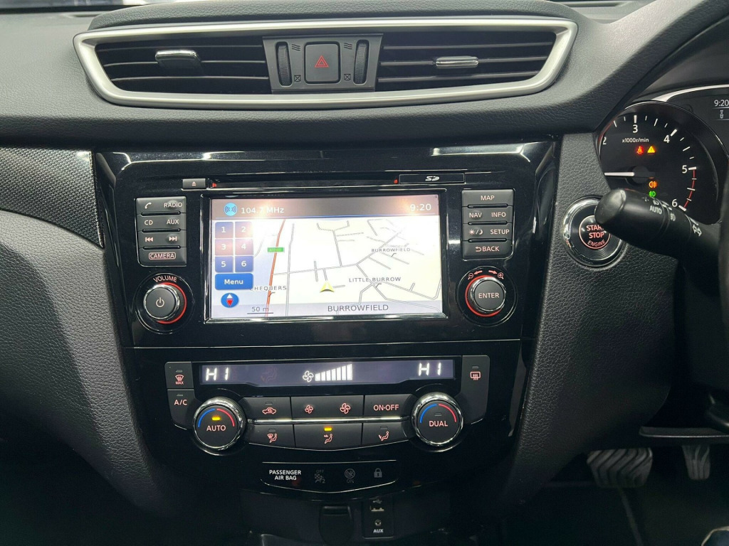 ULEZ COMPLIANT...5 SEATS....2 OWNERS...2 KEYS...FRONT AND REAR PARKING SENSORS...PANORAMIC ROOF...SAT NAV...REVERSE CAMERA AND SURROUND CAMERAS.. ..WE INCLUDE 15 MONTHS PLATINUM WARRANTY ON THIS CAR FREE OF CHARGE.....FREE 12 MONTHS A.A ROADSIDE RECOVERY......90 POINT CHECK ON EVERY CAR.....BUY WITH CONFIDENCE..... OPEN 7 DAYS A WEEK...NEW MOT AND FULL SERVICE CARRIED OUT....*** SCROLL DOWN TO MAKE A QUICK AND EASY ONLINE FINANCE APPLICATION***EMAIL [email protected] or call 01707 377 200. 19in Alloy Wheels - Machine Cut, 3 x 3-Point Rear Seatbelts, 6 Airbags, 6 Speakers, ABS with EBD and Brake Assist, AM-FM-CD Audio System, Alarm - Thatcham, Anti Dazzle Rear View Mirror, Around View Monitor Colour Front - Rear - Side Cameras, Auto Rain Sensing Wipers, Black Honeycomb Front Grille, Bluetooth with Microphone, Bumpers - Body Coloured, Chrome Window Surrounds, Cruise Control with Speed Limiter, DAB Radio, Door Handles - Chrome, Dual Zone Climate Control Air Conditioning, ESP - Electronic Stability Programme, Electric Folding Door Mirrors, Engine Immobiliser, Engine Start Button, Front Fog Lamps with Chrome Ring, Front and Rear Armrests, Front and Rear Electric Windows, Front and Rear Parking Sensors, Head Restraints - 3 Rear, Head Restraints - Front, Hill Start Assist, ISOFIX Child Seat Anchoring Points for 2nd Row, Intelligent Key, LED Signature Daytime Running Lights, Leather Steering Wheel and Gear Knob, Luggage Board System, Metallic Grain Interior Inserts, Nissan Chassis Controls, NissanConnect, One Touch Automatic Opening Power Tailgate, Panoramic Sunroof with One Touch Shade, Power Assisted Steering, Rear Door Child Locks, Rear Privacy Glass, Rear Split Folding - Reclining and Sliding - 60-40, Rear Wiper, Remote Audio Control, Remote Central Locking with Superlocking, Roof Rails - Satin, Smart Vision Pack, Spare Wheel, TPMS - Tyre Pressure Monitoring System, Tilt and Telescopic Adjustable Steering Wheel, Trip Computer, USB-AUX Socket Input, e-PKB - Electric Parking Brake, Cloth - Graphite.