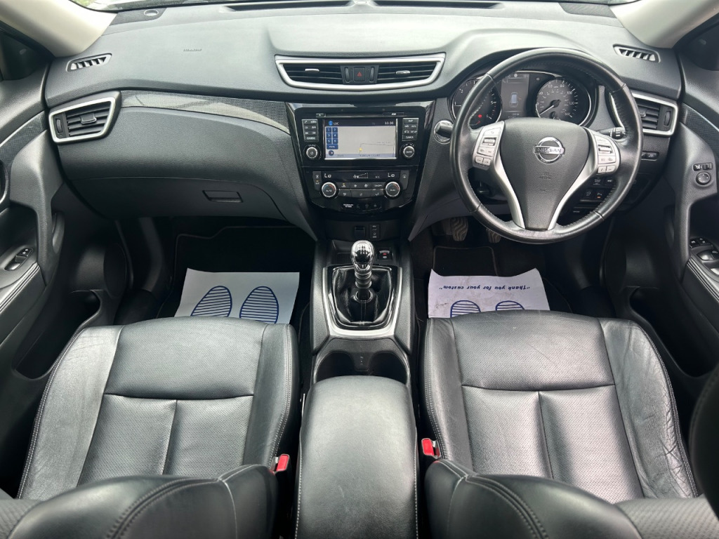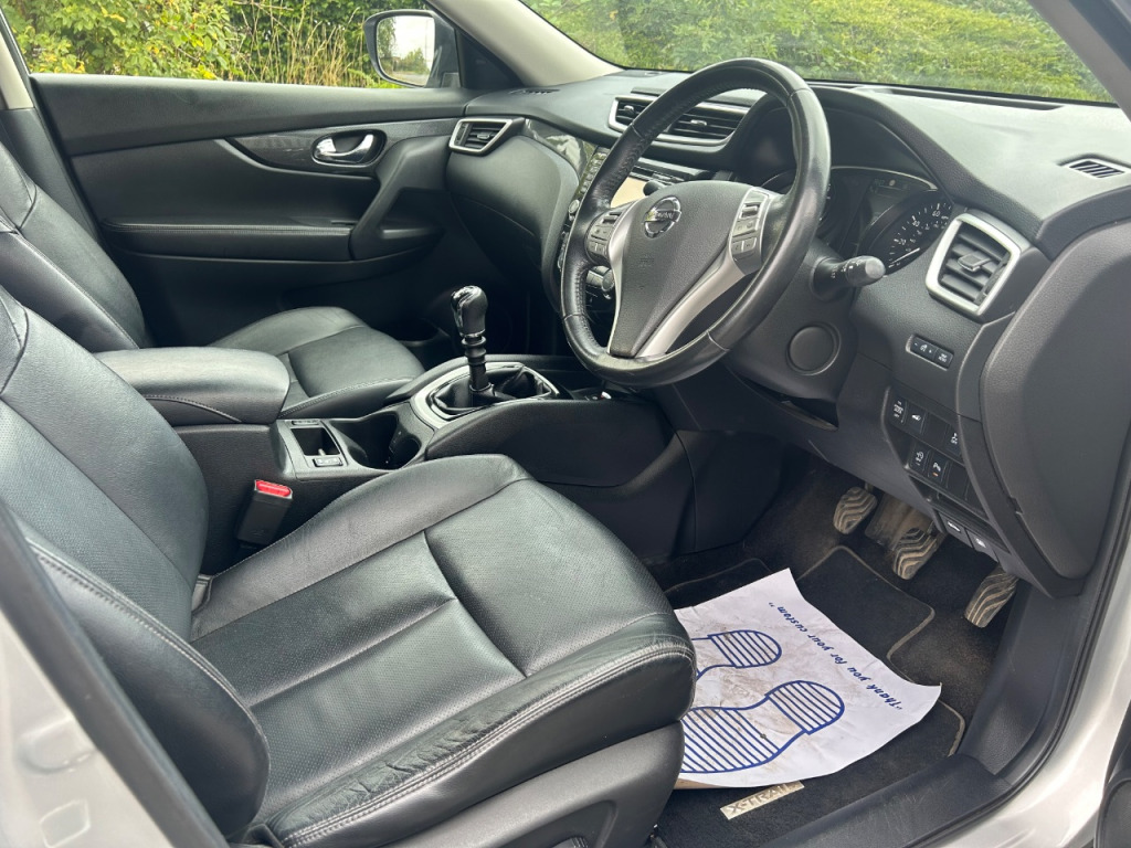 Superb Nissan X-Trail 1.6 DCI Tekna 7 Seat Diesel Manual Finished In Starburst Silver With Black Full Leather Trim, A Very Clean And Well Looked After Car With Full Service History. The Last Owner Had This Car From One Year Old, Huge Spec Including Sat Nav, DAB Radio, Bluetooth Phone Connection With Lane Departure Warning, Blind Spot Warning, Full Leather, Heated Electric Front Seats, 360 Degree Parking Cameras And Front And Rear Park Assist Cameras, 7 Seats, Load Liner, Opening Panoramic Glass Roof With Electric Blind, Keyless Entry And Start, ISOFIX Seats, Really Nice Clean Car With Full Service History And Two Keys.