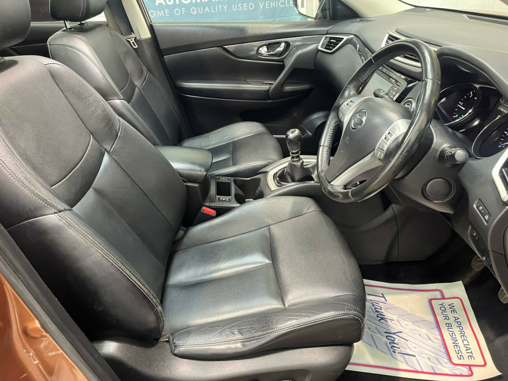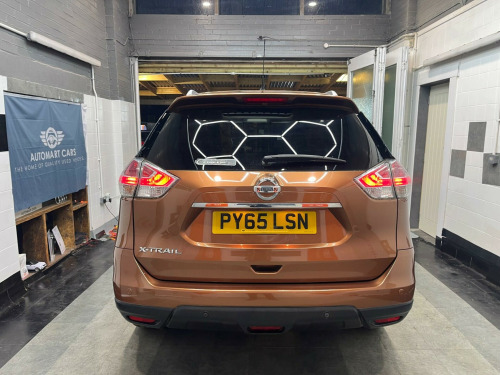This 2015 Nissan X-Trail dCi Tekna offers exceptional value with its remarkably low mileage of just 63,000 miles for its age. As a Euro 6 compliant vehicle, it features a 1.6 litre diesel engine that delivers an impressive fuel economy of up to 55 miles per gallon. The Tekna trim level ensures a premium experience, enhanced by Bi-LED headlights with automatic dusk sensing, and the NissanConnect system which includes Bluetooth connectivity for seamless integration of your devices. Maneuvering is made effortless with front and rear parking sensors, and you can enjoy an open and airy cabin thanks to the panoramic sunroof with a one touch shade.Beyond its impressive specifications, this X-Trail stands out with its low CO2 emissions, contributing to a more environmentally conscious drive. Its low insurance group rating further enhances its appeal, making it an economical choice for many drivers. You'll also appreciate the generous boot space, perfect for accommodating luggage, shopping, or sporting equipment. These highlights collectively demonstrate how this particular Nissan X-Trail offers a superior ownership proposition compared to other vehicles in its class.. 19in Alloy Wheels - Machine Cut, 3 x 3-Point Rear Seatbelts, 6 Airbags, 6 Speakers, ABS with EBD and Brake Assist, AM-FM-CD Audio System, Alarm - Thatcham, Anti Dazzle Rear View Mirror, Around View Monitor Colour Front - Rear - Side Cameras, Auto Rain Sensing Wipers, Automatic Headlights - Dusk Sensor, Black Honeycomb Front Grille, Bluetooth with Microphone, Bumpers - Body Coloured, Chrome Window Surrounds, Cruise Control with Speed Limiter, DAB Radio, Door Handles - Chrome, Dual Zone Climate Control Air Conditioning, ESP - Electronic Stability Programme, Electric Folding Door Mirrors, Electrically Adjustable Drivers Seat, Electrically Adjustable Passenger Seat, Engine Immobiliser, Engine Start Button, Front Fog Lamps with Chrome Ring, Front and Rear Armrests, Front and Rear Electric Windows, Front and Rear Parking Sensors, Head Restraints - 3 Rear, Head Restraints - Front, Headlights - Bi-LED, Headlights - High Beam Assist, Hill Start Assist, ISOFIX Child Seat Anchoring Points for 2nd Row, Intelligent Key, Intelligent Park Assist, LED Signature Daytime Running Lights, Leather Steering Wheel and Gear Knob, Luggage Board System, Metallic Grain Interior Inserts, Nissan Chassis Controls, NissanConnect, One Touch Automatic Opening Power Tailgate, Panoramic Sunroof with One Touch Shade, Power Assisted Steering, Rear Door Child Locks, Rear Privacy Glass, Rear Split Folding - Reclining and Sliding - 60-40, Rear Wiper, Remote Audio Control, Remote Central Locking with Superlocking, Roof Rails - Satin, Safety Shield, Seats - Heated Front, Smart Vision Pack, Spare Wheel, TPMS - Tyre Pressure Monitoring System, Tilt and Telescopic Adjustable Steering Wheel, Trip Computer, USB-AUX Socket Input, e-PKB - Electric Parking Brake, Leather - Graphite.
