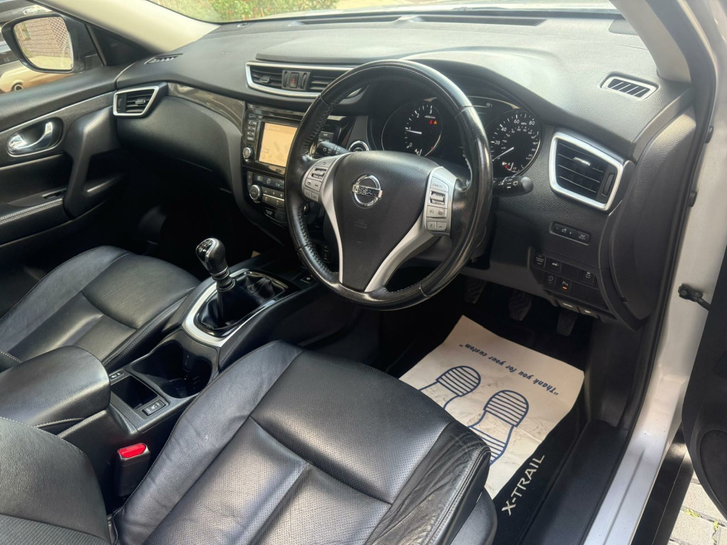 This 2016 Nissan X-Trail dCi Tekna boasts a full service history and has had only one owner from new, offering excellent peace of mind. This stylish SUV is equipped with a 1.6 litre Euro 6 diesel engine, providing an impressive fuel economy of 55 miles per gallon. Inside, you'll find comfortable heated front seats, dual zone climate control air conditioning, and a panoramic sunroof with a one touch shade for an airy cabin feel. The Tekna trim also includes the advanced Safety Shield, which incorporates Blind Spot Assistance, and efficient Bi-LED headlights.The Nissan X-Trail dCi Tekna stands out with its low CO2 emissions and a low insurance group, making it an economical choice for everyday driving. Its generous boot space ensures you have plenty of room for luggage or shopping. These highlights demonstrate how this particular X-Trail offers a superior ownership experience compared to other vehicles in its class, further enhanced by a 6 month warranty for added reassurance.AMAZING VALUE FOR MONEY 5 SEATS TOP OF THE RANGE Nissan X-Trail 1.6 dCi Tekna Euro 6 (s/s) 5dr Euro 6 (s/s) 5dr PANORAMIC OPEN SUNROOF COLOUR SCREEN SAT NAV REVERSE CAMERA ELECTRIC WINDOWS POWER STEERING CRUISE CONTROL VERY ECONOMICAL AND RELIABLE CAR DRIVES AND LOOKS SUPERB STUNNING CONDITION HPI CLEAR THIS VEHICLE WILL BE SOLD WITH 6 MONTHS FREE COMPREHENSIVE GOLD WARRANTY COVER AND 12 MONTHS AA BREAKDOWN COVER PX WELCOME FOR MORE INFORMATION OR TO BOOK A VIEWING PLEASE CALL 07400908644 OR 07597668564 OR 0771169550. 19in Alloy Wheels - Machine Cut, 3 x 3-Point Rear Seatbelts, 6 Airbags, 6 Speakers, ABS with EBD and Brake Assist, AM-FM-CD Audio System, Alarm - Thatcham, Anti Dazzle Rear View Mirror, Around View Monitor Colour Front - Rear - Side Cameras, Auto Rain Sensing Wipers, Automatic Headlights - Dusk Sensor, Black Honeycomb Front Grille, Bluetooth with Microphone, Bumpers - Body Coloured, Chrome Window Surrounds, Cruise Control with Speed Limiter, DAB Radio, Door Handles - Chrome, Dual Zone Climate Control Air Conditioning, ESP - Electronic Stability Programme, Electric Folding Door Mirrors, Electrically Adjustable Drivers Seat, Electrically Adjustable Passenger Seat, Engine Immobiliser, Engine Start Button, Front Fog Lamps with Chrome Ring, Front and Rear Armrests, Front and Rear Electric Windows, Front and Rear Parking Sensors, Head Restraints - 3 Rear, Head Restraints - Front, Headlights - Bi-LED, Headlights - High Beam Assist, Hill Start Assist, ISOFIX Child Seat Anchoring Points for 2nd Row, Intelligent Key, Intelligent Park Assist, LED Signature Daytime Running Lights, Leather Steering Wheel and Gear Knob, Luggage Board System, Metallic Grain Interior Inserts, Nissan Chassis Controls, NissanConnect, One Touch Automatic Opening Power Tailgate, Panoramic Sunroof with One Touch Shade, Power Assisted Steering, Rear Door Child Locks, Rear Privacy Glass, Rear Split Folding - Reclining and Sliding - 60-40, Rear Wiper, Remote Audio Control, Remote Central Locking with Superlocking, Roof Rails - Satin, Safety Shield, Seats - Heated Front, Smart Vision Pack, Spare Wheel, TPMS - Tyre Pressure Monitoring System, Tilt and Telescopic Adjustable Steering Wheel, Trip Computer, USB-AUX Socket Input, e-PKB - Electric Parking Brake. Full service history