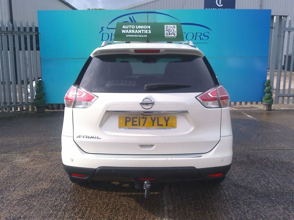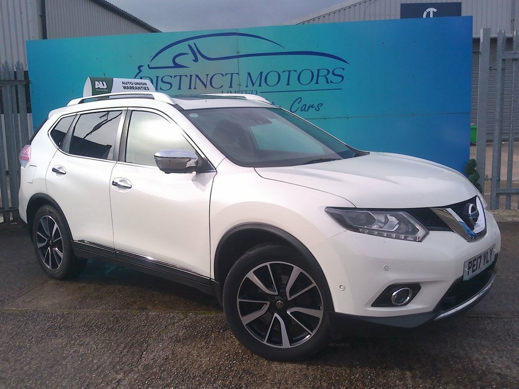 A LOVELY EXAMPLE TYPICALLY ECONOMICAL AND SPACIOUS NISSAN X-TRAIL TOP OF THE RANGE TEKNA EDITION 7 SEATER 4WD IN WHITE COVERED ONLY 52K WARRANTED MILES WITH 15 MONTHS NATIONWIDE WARRANTY FOR THIS WEEK ONLY FOR ADDED PEACE OF MIND. ONLY 1 OWNER FROM NEW WITH SERVICE HISTORY (LAST SERVICED AT 52K MILES), LONG MOT TO 10/26 WITH NO ADVISORIES, 2 KEYS, FULLY HPI CLEAR WITH FULLY WARRANTED MILEAGE CHECKS COMPLETED TOO. WE ARE A FAMILY RUN BUSINESS WITH MOST OF OUR VEHICLES PURCHASED FROM REPUTABLE MAIN AGENTS AND WE PREPARE OUR VEHICLES TO THE HIGHEST OF STANDARDS WHICH IS WHY WE ARE CONFIDENT ENOUGH TO OFFER 15 MONTHS NATIONWIDE WARRANTY. BOTH THE INTERIOR AND EXTERIOR CONDITION CLEARLY WELL APPRECIATED AND MAINTAINED THROUGHOUT WITH GREAT SPECIFICATION INCLUDING ALLOY WHEELS, SAT-NAV WITH REVERSE CAMERA, CLIMATE CONTROL, FULL HEATED BLACK LEATHER ELECTRIC SEATS, PANORAMIC ROOF, FRONT AND REAR ELECTRIC WINDOWS, POWER-OPERATED TAILGATE, BLUETOOTH, CRUISE CONTROL, HEATED ELECTRIC FOLDING MIRRORS, FRONT AND REAR PARKING SENSORS, REMOTE CENTRAL LOCKING AND MUCH MORE! 19in Alloy Wheels - Machine Cut, 3 x 3-Point Rear Seatbelts, 6 Airbags, 6 Speakers, ABS with EBD and Brake Assist, Alarm - Thatcham, AM-FM-CD Audio System, Anti Dazzle Rear View Mirror, Around View Monitor Colour Front - Rear , Auto Rain Sensing Wipers, Automatic Headlights - Dusk Sensor, Black Honeycomb Front Grille, Bluetooth with Microphone, Bumpers - Body Coloured, Chrome Window Surrounds, Cruise Control with Speed Limiter, DAB Radio, Door Handles - Chrome, Dual Zone Climate Control Air Conditioni, e-PKB - Electric Parking Brake, Electric Folding Door Mirrors, Electrically Adjustable Drivers Seat, Electrically Adjustable Passenger Seat, Engine Immobiliser, Engine Start Button, ESP - Elec