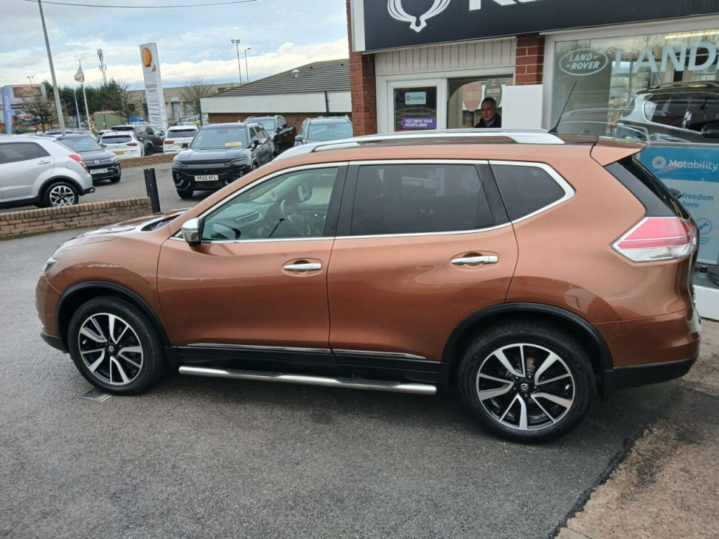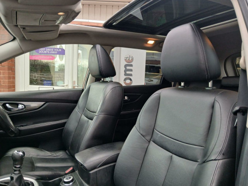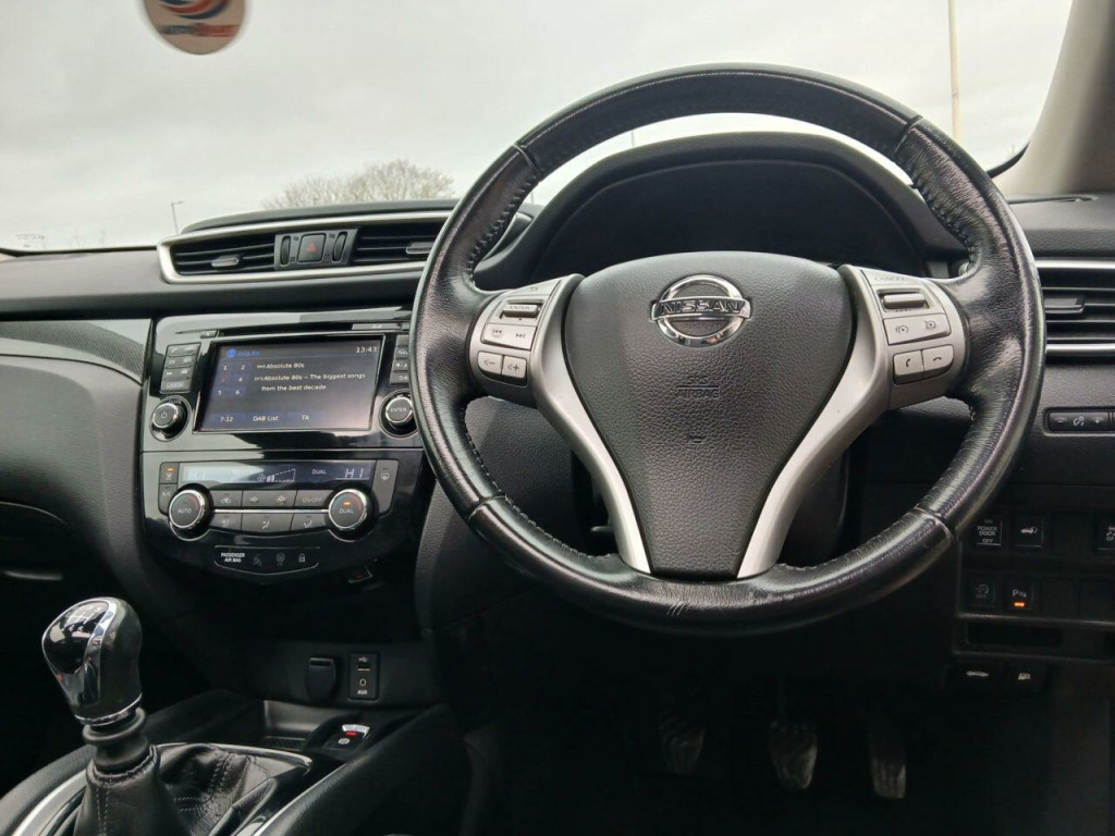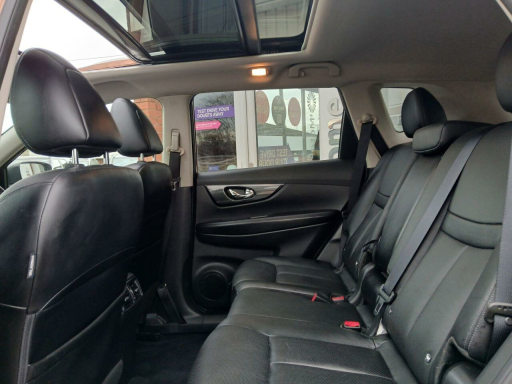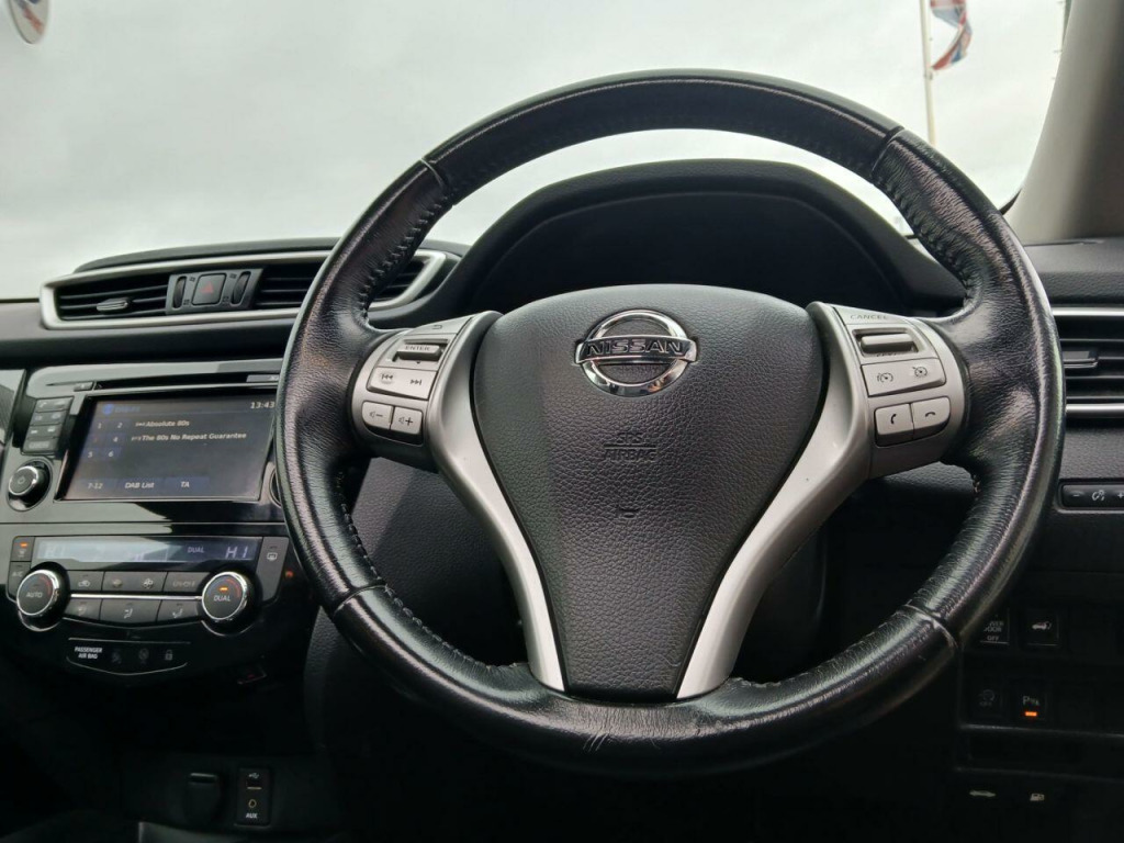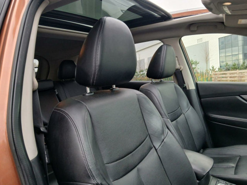 . 19in Alloy Wheels - Machine Cut, 3 x 3-Point Rear Seatbelts, 6 Airbags, 6 Speakers, ABS with EBD and Brake Assist, AM-FM-CD Audio System, Alarm - Thatcham, Anti Dazzle Rear View Mirror, Around View Monitor Colour Front - Rear - Side Cameras, Auto Rain Sensing Wipers, Automatic Headlights - Dusk Sensor, Black Honeycomb Front Grille, Bluetooth with Microphone, Bumpers - Body Coloured, Chrome Window Surrounds, Cruise Control with Speed Limiter, DAB Radio, Door Handles - Chrome, Dual Zone Climate Control Air Conditioning, ESP - Electronic Stability Programme, Electric Folding Door Mirrors, Electrically Adjustable Drivers Seat, Electrically Adjustable Passenger Seat, Engine Immobiliser, Engine Start Button, Front Fog Lamps with Chrome Ring, Front and Rear Armrests, Front and Rear Electric Windows, Front and Rear Parking Sensors, Head Restraints - 3 Rear, Head Restraints - Front, Headlights - Bi-LED, Headlights - High Beam Assist, Hill Start Assist, ISOFIX Child Seat Anchoring Points for 2nd Row, Intelligent Key, Intelligent Park Assist, LED Signature Daytime Running Lights, Leather Steering Wheel and Gear Knob, Luggage Board System, Metallic Grain Interior Inserts, Nissan Chassis Controls, NissanConnect, One Touch Automatic Opening Power Tailgate, Panoramic Sunroof with One Touch Shade, Power Assisted Steering, Rear Door Child Locks, Rear Privacy Glass, Rear Split Folding - Reclining and Sliding - 60-40, Rear Wiper, Remote Audio Control, Remote Central Locking with Superlocking, Roof Rails - Satin, Safety Shield, Seats - Heated Front, Smart Vision Pack, Spare Wheel, TPMS - Tyre Pressure Monitoring System, Tilt and Telescopic Adjustable Steering Wheel, Trip Computer, USB-AUX Socket Input, e-PKB - Electric Parking Brake.