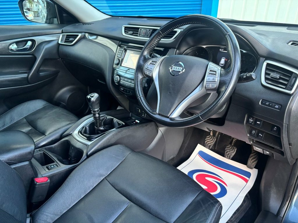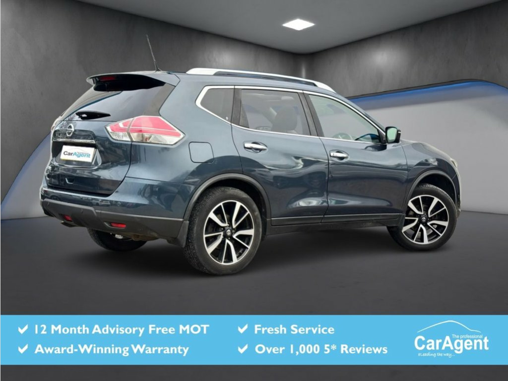 This 2016 Nissan X-Trail dCi Tekna boasts a clear vehicle history, offering you peace of mind. This stylish SUV features a 1.6 litre Euro 6 diesel engine, known for its efficiency, and comes equipped with the desirable Tekna trim. You'll appreciate the convenience of automatic headlights with a dusk sensor and intelligent key with keyless entry. For enhanced safety, it includes the Safety Shield with Blind Spot Assistance, and parking is made simple with the Around View Monitor offering 360 degree camera views. Enjoy the open air with the panoramic sunroof and its one touch shade, and benefit from the generous boot space for all your needs. This X-Trail is designed to impress with its impressive fuel economy, achieving up to 55 miles per gallon, which indicates it is more economical than many similar vehicles. Furthermore, its low CO2 emissions highlight its environmental consideration, and its low insurance group suggests more affordable running costs compared to other cars in its class. We hand pick our cars from several trusted sources we have used for over 9 years as we know their cars are prepared to the highest standard. As well as these benefits our team will make sure you have the best experience during your purchase and the car will be prepared to the highest standards. We are a UK Award Winning customer car team with our own in house 3 month warranty and service Centre with options to extend your warranty for 12, 24 or 36 months. Our cars come with 12 months 19in Alloy Wheels - Machine Cut, 3 x 3-Point Rear Seatbelts, 6 Airbags, 6 Speakers, ABS with EBD and Brake Assist, AM-FM-CD Audio System, Alarm - Thatcham, Anti Dazzle Rear View Mirror, Around View Monitor Colour Front - Rear , Auto Rain Sensing Wipers, Automatic Headlights - Dusk Sensor, Black Honeycomb Front Grille, Bluetooth with Microphone, Bumpers - Body Coloured, Chrome Window Surrounds, Cruise Control with Speed Limiter, DAB Radio, Door Handles - Chrome, Dual Zone Climate Control Air Conditioni, ESP - Electronic Stability Programme, Electric Folding Door Mirrors, Electrically Adjustable Drivers Seat, Electrically Adjustable Passenger Seat, Engine Immobiliser, Engine Start Button, Fron