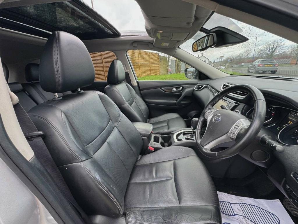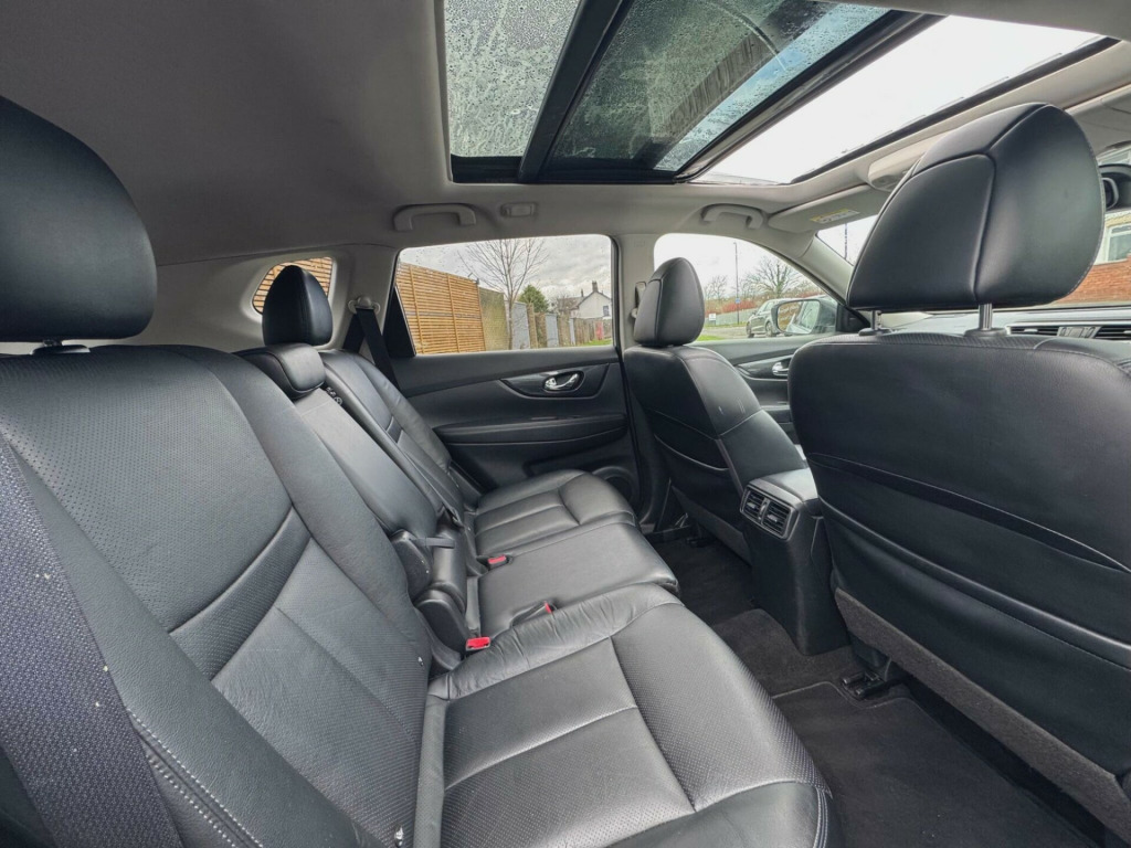 This 2017 Nissan X-Trail dCi Tekna boasts a clear vehicle history, offering you peace of mind. This well appointed Tekna trim features a 1.6 litre Euro 6 diesel engine, known for its efficiency. Inside, you'll find comfortable heated front seats, dual zone climate control air conditioning, and a panoramic sunroof with a one touch shade for an airy cabin feel. Stay connected on the go with Bluetooth and a microphone, while front and rear parking sensors make manoeuvring simple.The Nissan X-Trail dCi Tekna stands out with its impressive fuel economy, achieving up to 53 miles per gallon, which is better than many other vehicles in its class. It also benefits from a low insurance group, potentially saving you money on running costs. Furthermore, this model offers generous boot space, making it a practical choice for families or those who need extra room for luggage or shopping. in alloy wheels - machine cut, 3 x 3-point rear seatbelts, 6 airbags, 6 speakers, abs with ebd and brake assist, am-fm-cd audio system, alarm - thatcham, anti dazzle rear view mirror, around view monitor colour front - rear - side cameras, auto rain sensing wipers, automatic headlights - dusk sensor, black honeycomb front grille, bluetooth with microphone, bumpers - body coloured, chrome window surrounds, cruise control with speed limiter, dab radio, door handles - chrome, dual zone climate control air conditioning, esp - electronic stability programme, electric folding door mirrors, electrically adjustable drivers seat, electrically adjustable passenger seat, engine immobiliser, engine start button, front fog lamps with chrome ring, front and rear armrests, front and rear electric windows, front and rear parking sensors, head restraints - 3 rear, head restraints - front, headlights - bi-led, headlights - high beam assist, hill start assist, isofix child seat anchoring points for 2nd row, intelligent key, intelligent park assist, led signature daytime running lights, leather steering wheel and gear knob, luggage board system, metallic grain interior inserts, nissan chassis controls, nissanconnect, one touch automatic opening power tailgate, panoramic sunroof with one touch shade, power assisted steering, rear door child locks, rear privacy glass, rear split folding - reclining and sliding - 60-40, rear wiper, remote audio control, remote central locking with superlocking, roof rails - satin, safety shield, seats - heated front, smart vision pack, spare wheel, tpms - tyre pressure monitoring system, tilt and telescopic adjustable steering wheel, trip computer, usb-aux socket input, e-pkb - electric parking brake