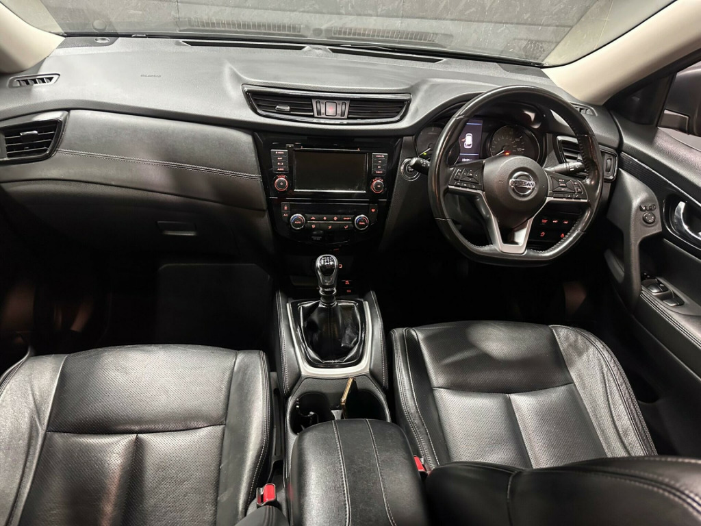 in alloy wheels - machine cut, 5in high definition full colour tft screen combimeter, 6 airbags, abs with ebd and brake assist, alarm - thatcham, anti dazzle rear view mirror, automatic headlights - dusk sensor, black honeycomb front grille, bluetooth with microphone, body coloured door mirrors, centre console storage and armrest, chrome side mouldings, chrome window surrounds, cruise control with speed limiter, dab-am-fm-cd bose 8 speaker premium audio system, door handles - chrome, driver attention alert, dual zone automatic air conditioning with pollen filter, esp - electronic stability programme, electric heated - automatic folding door mirrors with side turn signal light, electrically adjustable drivers seat - slide - recline - lifter and lumbar, electrically adjustable passenger seat - slide - recline, engine immobiliser, engine start button, front fog lights, front row ventilated cupholders, front and rear armrests, front and rear door pockets with drink holders, front and rear electric windows, front and rear parking sensors, front and rear seatbelt warning, handsfree automatic opening power tailgate, head restraints - 3 rear, headlights - high beam assist, heated front seats, heated rear seats - second row, height adjustable front head restraints, isofix child seat anchoring points, individual rear seat reading lights, intelligent around view monitor, intelligent emergency braking with pedestrian recognition, intelligent key, intelligent park assist, led daytime running lights, led headlights with adaptive front lighting system, lane departure warning, leather steering wheel and gear knob, luggage board system, moving object detection, nissan chassis controls, nissan connect evo 7in touchscreen navigation and entertainment system, panoramic sunroof with one touch shade, power assisted steering, rain sensing windscreen wipers, rear door child locks, rear privacy glass, rear split folding - reclining and sliding - 60-40, remote central locking with superlocking, roof rails - satin, safety shield, shark fin antenna, smartphone app integration, spare wheel, stand still assist with auto hold function, steering wheel - heated, steering wheel mounted audio controls, synthetic leather instrument panel, synthetic leather knee pad, tpms - tyre pressure monitoring system, tilt and telescopic adjustable steering wheel, traction control, traffic sign recognition, trip computer, usb-aux socket input, e-pkb - electric parking brake