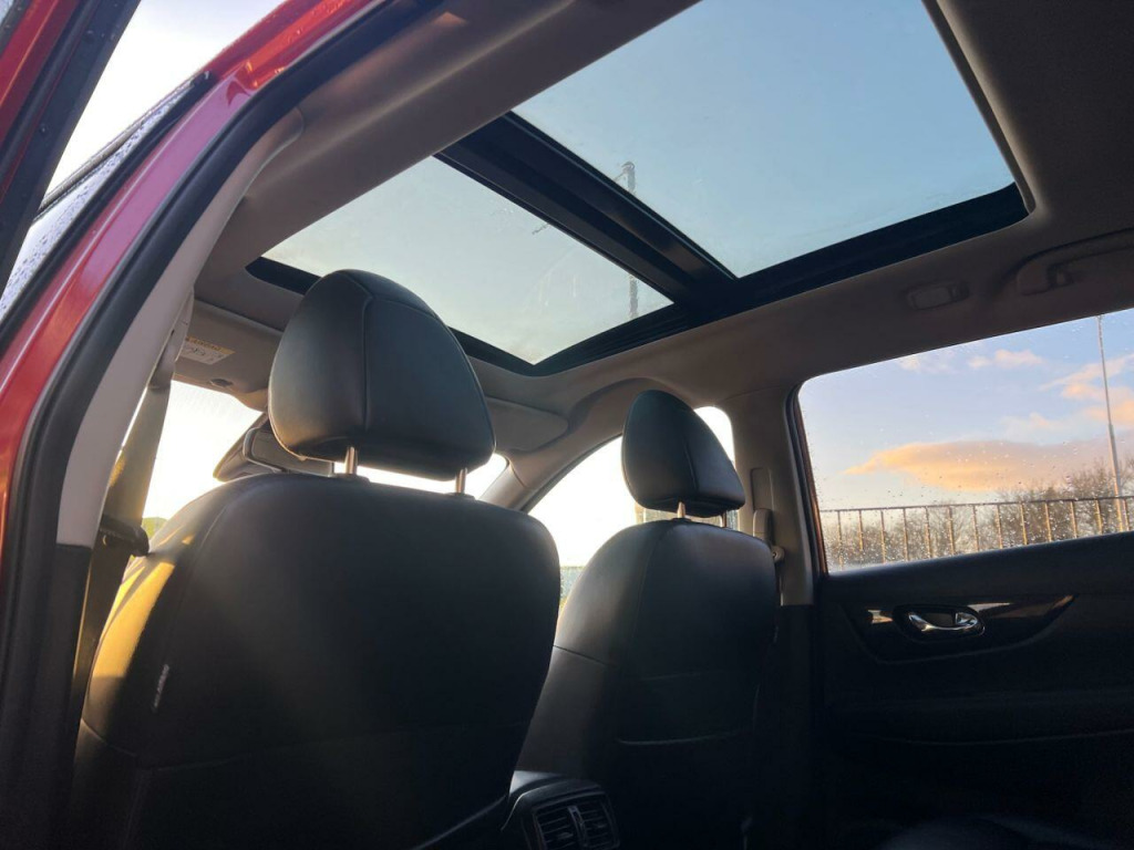 . 19in Alloy Wheels, 5in High Definition Full Colour TFT Screen Combimeter, 6 Airbags, Adaptive Front Lighting System, Alarm - Thatcham, Anti Dazzle Rear View Mirror, Armrest - Rear, Auto Rain Sensing Wipers, AutoHold Function - Stand Still Assist, Automatic Folding Mirrors, Automatic Headlights - Dusk Sensor, Black Honeycomb Front Grille, Bluetooth with Microphone, Body Coloured Door Mirrors, Bose 8 Speaker Premium Audio System, Centre Console Storage and Armrest, Chrome Side Mouldings, Chrome Window Surrounds, Cruise Control with Speed Limiter, DAB-AM-FM-CD Audio System, Door Handles - Chrome, Driver Attention Alert, Dual Zone Automatic Air Conditioning with Pollen Filter, ESP ABS EBD and Brake Assist, Electric Heated Mirrors with Side Turn Signal Lamp, Electrically Adjustable Drivers Seat - Slide - Recline - Lifter and Lumbar, Electrically Adjustable Passenger Seat - Slide - Recline, Engine Immobiliser, Engine Start Button, Front Fog Lights, Front Row Ventilated Cupholders, Front and Rear Door Pockets with Drink Holders, Front and Rear Electric Windows, Front and Rear Parking Sensors, Front and Rear Seatbelt Warning, Handsfree Automatic Opening Power Tailgate, Head Restraints - 3 Rear, Headlights - High Beam Assist, Headlights - LED, Heated Rear Seats - Second Row, Height Adjustable Front Head Restraints, ISOFIX Child Seat Anchoring Points, Individual Rear Seat Reading Lights, Intelligent Around View Monitor, Intelligent Emergency Braking with Pedestrian Recognition, Intelligent Key, Intelligent Park Assist, LED Daytime Running Lights, Lane Departure Warning, Leather D Shaped Steering Wheel, Leather Steering Wheel and Gear Knob, Luggage Board System, Moving Object Detection, Nissan Chassis Controls, NissanConnect, Panoramic Sunroof with One Touch Shade, Power Assisted Steering, Rear Door Child Locks, Rear Privacy Glass, Rear Split Folding - Reclining and Sliding - 60-40, Remote Central Locking with Superlocking, Roof Rails - Satin, Safety Shield, Seats - Heated Front, Shark Fin Antenna, Smartphone App Integration, Spare Wheel, Steering Wheel - Heated, Steering Wheel Mounted Audio Controls, Synthetic Leather Instrument Panel, Synthetic Leather Knee Pad, TPMS - Tyre Pressure Monitoring System, Tilt and Telescopic Adjustable Steering Wheel, Traction Control, Traffic Sign Recognition, Trip Computer, USB-AUX Socket Input, e-PKB - Electric Parking Brake.