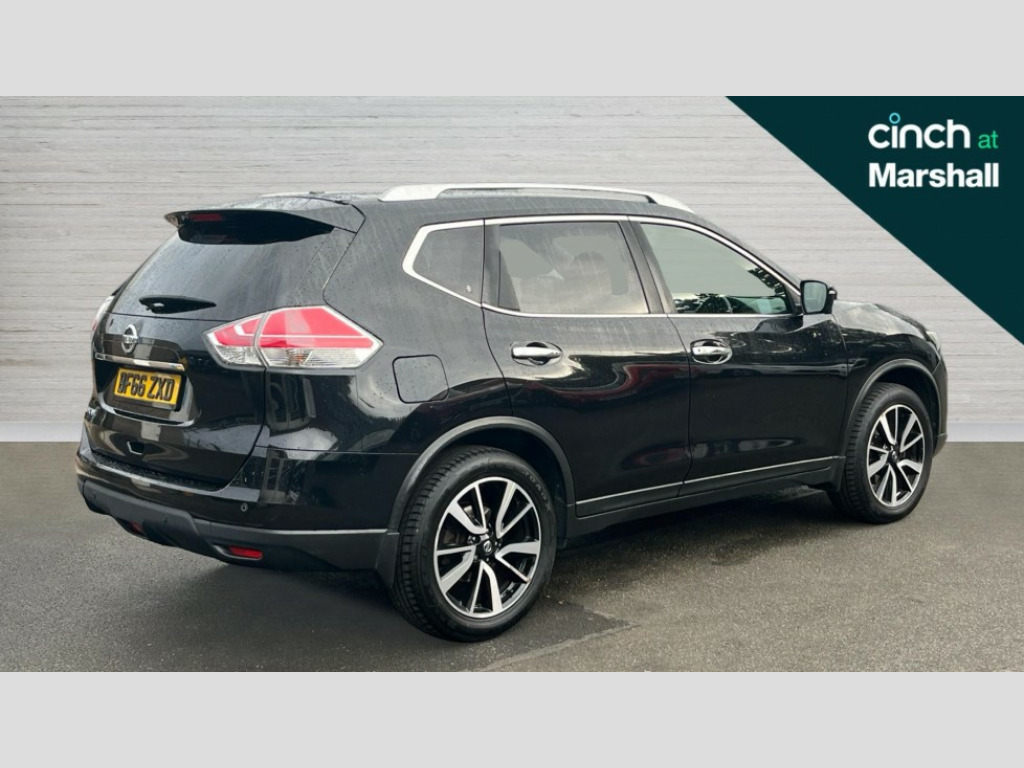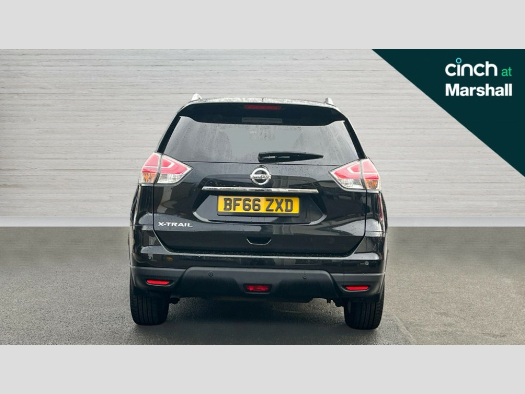 Nissan X-Trail 1.6 dCi N-Vision 5dr [7 Seat] 5" TFT driver information centre, Around View Monitor, Automatic tailgate opening, Bluetooth phone integration system, Cruise control + speed limiter, Engine start button, Front and rear parking cameras, Front and rear parking sensors, Lane departure warning system, Nissan connect sat nav system, PAS, Service interval indicator, Side view cameras, Traffic sign recognition, Trip computer, Diesel particulate filter, 6 speakers, Audio remote control in steering wheel, DAB Digital radio, Radio/CD, USB/aux input socket, Auto dimming rear view mirror, Automatic headlights, Automatic rain sensing wipers, Black honeycomb front grille, Body colour bumpers, Chrome door handles, Chrome window surround, Electric folding door mirrors, Electric panoramic sunroof, Electrically adjustable and heated door mirrors, Front and rear power windows, Front foglights with chrome rings, LED daytime running lights, Rear privacy glass, Rear wiper, Satin silver roof rails, 60/40 split folding rear seat, Cloth upholstery, Configurable luggage board system, Driver's seat manual height adjust, Dual zone climate control, Front and rear headrests, Front armrest, Isofix child seat attachment, Leather steering wheel and gear knob, Rake/reach adjustable steering wheel, Rear armrest, 3 point seatbelts on all seats, ABS, Child locks on rear doors, Driver and passenger airbags, EBD + Brake Assist, Electronic parking brake, ESP + traction control, Forward emergency braking, Front and rear curtain airbags, Hill start assist, Tyre pressure monitoring system, Warning triangle, Alarm, Immobiliser, Intelligent Key, Remote central locking, Metal grain interior trim, 19" 5 spoke alloy wheels, Space saver spare wheel