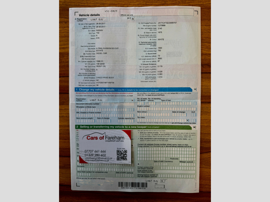 This 2017 Nissan X-Trail X-Trail 1.6 dCi N-Vision Automatic Euro 6 5dr is currently available for £7,995 in Fareham Hampshire with Diesel engine and Automatic gearbox. For more information or to arrange a viewing, click here to send us an email using form below.