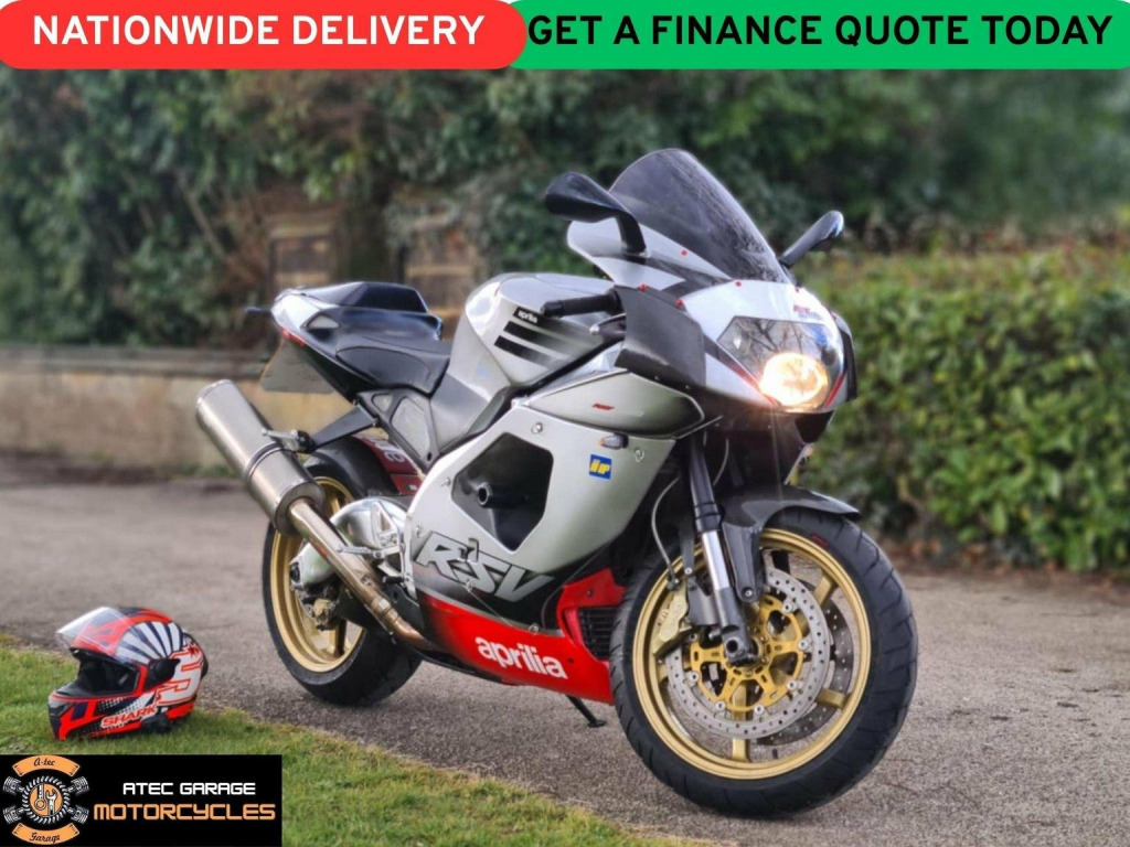 * FINANCE FROM ONLY £21.94 A WEEK * NATIONWIDE DELIVERY AVAILABLE!. This stunning and GENUINE 2003 APRILIA RSV 1000 MILLE! is just one of the rare and iconic machines fetched back to its former glory by us Atec Garage. What an iconic monster this machine is!. The RSV is one of the few true GP road bikes you can buy and this thing is a beast!. If you are old enough to remember when the RSV was released, Then you will know how sought after and loved this bike has been since its inception, a true poster bike of a generation and still just as awesome today 22 years later!. This Bike is a RARE standard condition bike and has been pampered all its life!,And it is a true Modern Retro machine that is only going up in value!!. Covered only 17k miles from new, The RSV comes with 4 KEYS!, A FULL 12 MONTH MOT and a COMPREHENSIVE 6 MONTH WARRANTY!, We have also just serviced the bike ourselves, fitted BRAND NEW MATCHED PIRELLI DIABLO TYRES, POWDERCOATED THE WHEELS and recommissioned this legend So the bike is ready to ride away today!. On the road the RSV is seriously dominating and such fun to ride!, The V-twin is brimming with torque and sounds fantastic,and the bike corners like its on rails and gets comments everywhere it goes!. The bodywork is in excellent shape and has been kept completely standard apart from powder coated gold wheels, custom seat and some added carbon fibre!, Come and check out this icon today! MORE PICS AND INFO ON OUR WEBSITE AT WWW.ATECGARAGE.CO.UK.---OUR STOCK ROTATES ON AND OFF AUTOTRADER WEEKLY---- SO PLEASE CHECK OUR WEBSITE IF THE BIKE YOU WANT ISNT ON AUTOTRADER AS IT STILL MAY BE FOR SALE ----LOTS MORE STOCK AT WWW.ATECGARAGE.CO.UK.