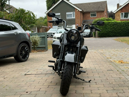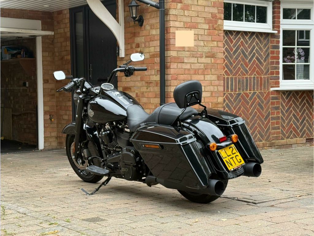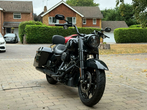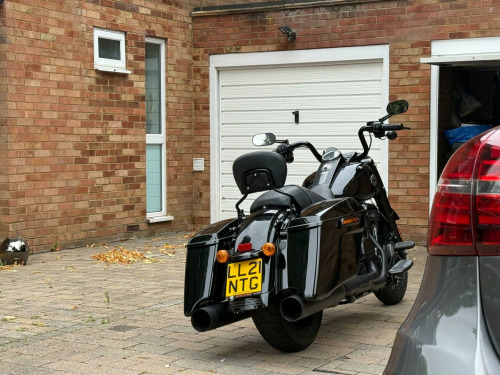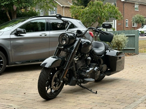 **CLICK ON FIRST SLIDE FOR VIDEO REVIEW + Harley Davidson Raod King Special Tourer, 114ci MILWAUKEE-EIGHT + BLACKED-OUT STYLE + STRETCHED BAGS + MINI-APE BARS + LOW MILES + EURO 5 + HPI CLEAR**, Finished in Vivid Black, this striking Harley-Davidson FLHRXS Road King Special delivers a perfect blend of custom styling and long-distance touring comfort. Powered by the Milwaukee-Eight 114ci (1868cc) Euro 5 V-Twin, it produces effortless torque and a commanding road presence, paired with a slick manual transmission and iconic Harley rumble. Distinct from the standard Road King, the Special features blacked-out finishes throughout, a streamlined headlamp nacelle, mini-ape handlebars, and stretched saddlebags that accentuate its bagger silhouette. Riding on a 19-inch front Talon wheel with a 18-inch rear, the stance is aggressive yet comfortable for touring. ABS brakes, electronic cruise control, responsive front suspension and rear emulsion shocks ensure a composed ride whether cruising city streets or eating up motorway miles. Spec Highlights: (1) Milwaukee-Eight 114 V-Twin (1868cc) – Euro 5 compliant, (2) Blacked-out styling with stretched saddlebags, (3) 19-inch Talon front wheel / 18-inch rear, (4) Mini-ape handlebars for a commanding riding position, (5) ABS, cruise control, front & rear suspension upgrades, (6) Only 2,419 miles from new, HPI Clear: No finance, theft, accident or mileage issues. Registered 15/06/2021, with only 2 previous keepers. A rare opportunity to acquire a low-mileage Road King Special with the desirable 114ci engine. It looks as good parked outside the café as it does rolling across Europe – ready to ride, enjoy and make your own. ANY PART EXCHANGE IS WELCOME. VIEWING IS STRICTLY APPOINTMENT ONLY. 3 MONTHS WARRANTY, EXTENDED WARRANTY AVAILABLE, HPI CLEAR AND VEHICLE TRACKING SOLUTIONS. ALL TRANSACTIONS SUBJECT TO A £199 ADMIN FEE. £100 OF EVERY SALE IS DONATED TO CHARITY. FINANCE AVAILABLE AT COMPETITIVE RATES. CM22 7AA