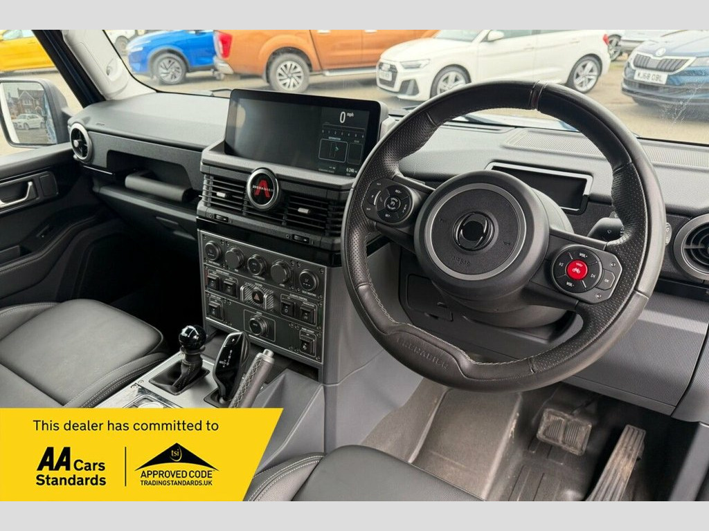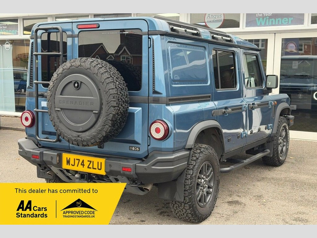 Discover the 2024 INEOS Grenadier D, a robust Four Wheel Drive vehicle designed for capability. This Euro 6 compliant model is powered by a 3.0L Diesel Engine, offering dependable performance. It comes equipped with a fixed towball and electrics, ready for towing up to 3500 kg, and features heated front seats for added comfort during your journeys. The INEOS Grenadier D stands out with its impressive towing capacity and efficient Euro 6 diesel engine, demonstrating its suitability for demanding tasks. The inclusion of heated front seats further enhances the driving experience, making it a practical and comfortable choice for those who require a vehicle that can handle both work and leisure with ease. ======================= Specification: Bluetooth, DAB Radio, Apple CarPlay, Android Auto, Rear Ladder, Side Steps, 17" Alloy Wheels, Fixed Towbar and Electrics, Heated Front Seats, Rear Privacy Glass, Leather Seats. ======================== Service History: The first service is now due and will be completed prior to sale. 17in Alloy Wheels, 17in Steel Wheels, Access Ladder, Advanced Anti-Theft Alarm and Immobilise, Bridgestone All-Terrain Tyre, Bump Strips, Contrast Ladder Frame - Powder Coat - Bl, Eldoret Blue, Fixed Towball and Electrics, Heat Reflective Privacy Glass, Heated Front Seats, Heavy Duty Utility Flooring with Drain V, Leather - Black, Nappa Leather Drivers Pack, Rear Side Windows, Roadside Emergency Kit