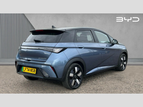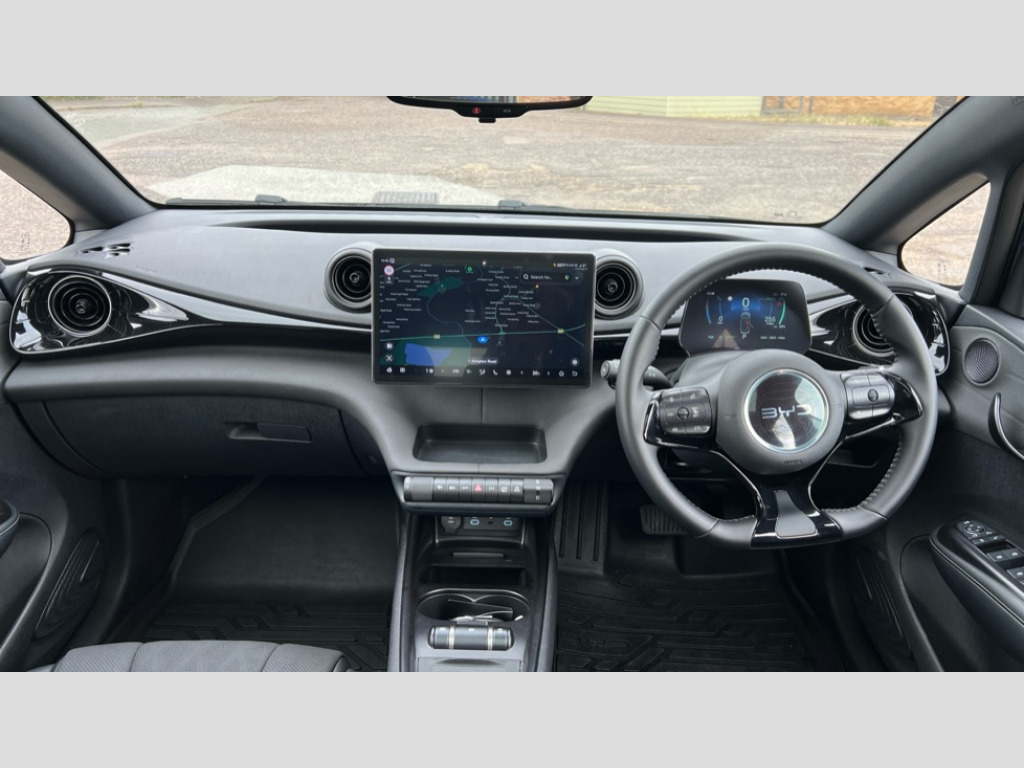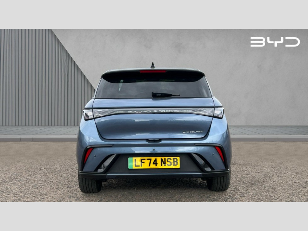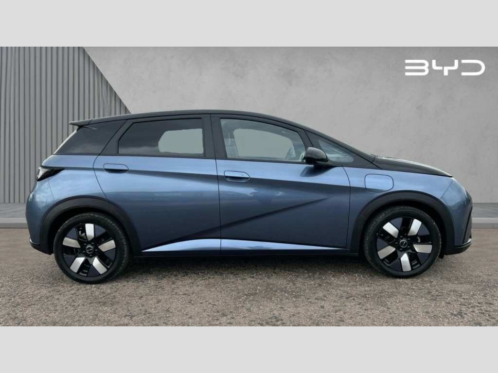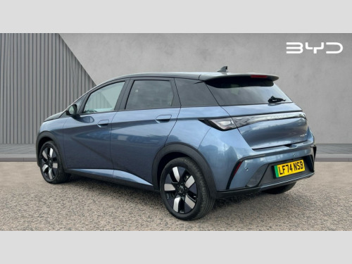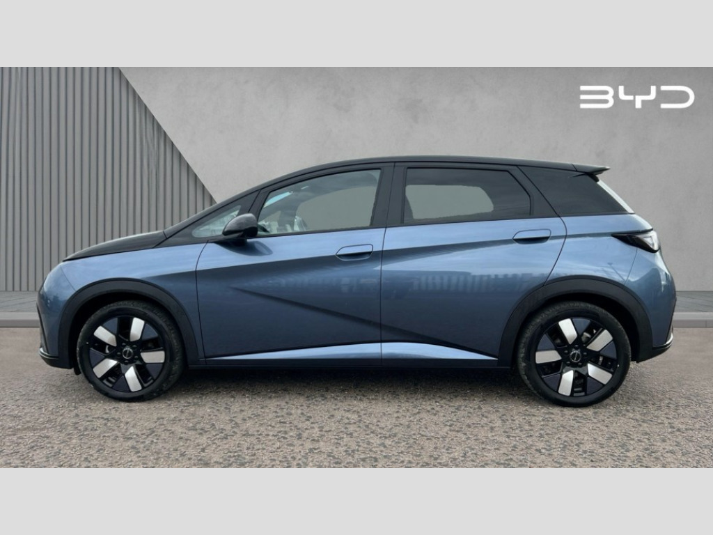BYD Dolphin 150kW Design 60.4kWh 5dr Auto 12.8" Electric rotary touchscreen, 2 x front parking radar, 3 x rear parking radar, 360 camera, 5" TFT full LCD instrument panel, Adaptive Cruise Control and Intelligent Cruise Control, Apple CarPlay and Android Auto, Blind spot detection, Child presence detection, Emergency call service, Emergency lane keep assist, Front cross traffic alert and front cross traffic brake, Indirect driver fatigue management, Intelligent Speed Limit Information and Intelligent Speed Limit Control, Lane departure prevention, Lane departure warning, Power assisted steering, Predictive collision warning, Rear cross traffic alert and rear cross traffic brake, Smartphone wireless charging, Traffic sign recognition, Voice control system, 11 kW Onboard charger, Vehicle To Load function, 6 speaker audio system with sound opimization, DAB+ radio, 4 x One-touch lift window with anti-pinch function, Automatic headlights, Electrically adjustable, heated and folding door mirrors, Electrically heated rear windscreen, Follow me home lighting, Footlights for exterior mirrors, Front wipers, High beam assist, LED 3rd brake light, LED continuous taillights, LED daytime running lights, LED Headlights, Panoramic roof, Rear fog lights, Rear privacy glass and rear side windows, Rear side wing doors, Rear wiper, Two tone metallic paint, 12V power sockets, 2 x Front USB port (1 x 18W Type C + 1 x 60W Type C), 2 x Rear USB port (1 x 18W Type C + 1 x 60w Type C), 3 individual rear seats, 3 rear head restraints, 60/40 split folding rear seat, Center armrest with dual cupholder, Driver seat with 6-way electric adjustment, Front LED reading lights, Front passenger seat with 4-way electric adjustment, Front seat sun visor with illuminated mirror, Heat pump, Heated front seats, Integrated front headrests, PM2.5 air filter, Rear LED reading lights, Rear trunk parcel shelf, Single front passenger seat, Trunk light, Vegan leather multifunction steering wheel, Vegan leather upholstery, 2 ISOFIX in outer rear seats and 1 ISOFIX in front passenger seat, 3x3 point rear seat belts, Auto vehicle hold function, Automatic emergency braking system, Belt with pretensioner and force limiter, Child locks on rear doors, Comfort stop, Deactivation switch for front passenger's airbag, Direct tyre pressure monitoring system, Door opening warning, Driver's airbag, Electronic brake distribution, Electronic parking brake, Electronic Stability Programme (ESP), Front center airbag, Front passenger airbag, Front side air curtain airbag, Front side airbags, Intelligent power brake system, Mechanical child safety lock, Seatbelt warning, Traction control, 2 x smart key and 1 x NFC key card, Keyless entry and start, 17" Tri-colour alloy wheels