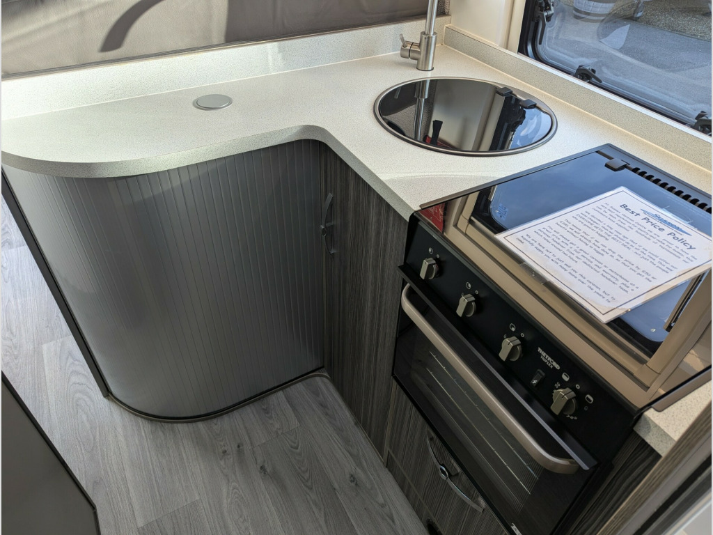 This 2022 Moto-Trek Leisure-Treka EB Elite has a side L-shaped lounge that converts to a double bed, a mid kitchen with a gas hob, oven, and fridge, and a rear end-bathroom with a toilet, shower, and wash basin. It comes with the added benefit of a solar panel, sun canopy, reverse camera and satnavThis vehicle can be viewed at our West Sussex branch located in Ashington on the A24. To book a viewing please call our sales team on 01903 893666For your complete peace of mind all our campervans are finance and HPI checked, have a full service and PDI and include up to 12 months in-house warranty.We also give you a dedicated one-to-one handover to show you how it all works and a full tank of fuel.Sussex Caravan and Motorhome Centre is a family owned, multi-award winning dealership including Practical Caravan Gold Supplying Dealer and FEEFO Platinum Trusted Service Award. Proudly celebrating over 35 years in business. berth, 230v socket, 4 belt, awning light, cab air-conditioning, cab blinds, canopy, driver airbag, electric step, fridge, grill, high level brake light, large heki rooflight, microwave, passenger swivel seats, reverse camera, sat nav, solar panel, truma combi heating system, tv aerial, usb socket