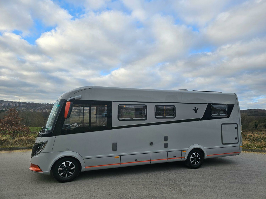 Niesmann + Bischoff Arto 77E, 2021 21 plate, Automatic, Stunning A class Motorhome , Huge spec, 4 berth, Totally Set up for wild camping, 2x solar panals , 3x95ah leisure batterys, 4000w power inverter for 240 v, large professionaly built extra tidy storage unit built in the huge rear heated garage with 450kg loading capacity, 2x garage auto lock entry doors, Outside gas Barbaque point ,gaslow including all European refill adaptors, Upgrade zenec Bluetooth nav surround radio /reverse camera ,apple play, Backlit tv ,auto seek satalite dishoyster80, Underfloor heating, Habitation and cab air conditioning, Twin hanging wardrobes, Huge rear bed can convert to 2x singles, Mood led lighting absolutely everywhere Upgrade backlit reed panals on headboard and wc door, Separate heated shower inc roof light Separate heated wc inc roof light, feature mirror bathroom cabinetry pot elec flush toilet Rear bedroom with sliding privacy door, Queen size over cab drop down bed , Fly screens, Blackout blinds ,tv ,dvd,usb, subwoofers, Auto lock kitchen cabinets soft close draws, Corrian worktops, built in coffe machine ,microwave ,cooker ,fridge freezer, extract and fresh air intake roof light, Electric drop down windscreen shutters ,refrigerated dashboard compartment, Electric heated mirrors cruise control, Blackout blinds / fly screens, 4m awning led strip lights, Expanding dinette table, Over rugs unused, Swivel captains seats, Loads of under floor storage lockers, Storage under lounge seating, Overhead lockers inc bedroom, Exterior slide out tool locker, Auto winterise, Anti freeze water storage tanks, Alloy wheels, led headlights, turning lights Larva orange accent graphics on grey body Fully remote central locking, Scorpion tracker, sigma alarm, imobilizer, Like new condition no blemishes in or out pristine . Eifel grey exterior paint, Large bathroom, Climate control, Cruise control, Rear parking camera, Comfort springs, Microfibre roof lining, 32 LED TV in media , Solar module 155 watt with aero legs, Media pack, Chassis pack, Verade oak modern line, UK tec tower, Slide storage case, Heat exchanger, , Ready to tour, , , , , , , , , , ,
