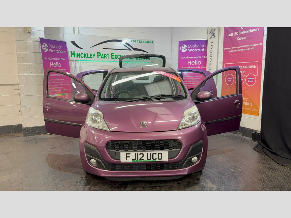 PEUGEOT 107 ACTIVE - PURPLE - 5 DOOR - 57295/ £20 a Year Tax / Group 3 Insurance / 2x keys / Comes With a New 12 Months MOT (No Advisories) / Just Been Serviced / Tyres Very Good / Great Runner / Fully Valeted Including Polish and Seats Cleaned. Note ***** Please See Option Which Reads ''Other Vehicles From This Dealer'' To See Our Range Of Peugoet 107s and Citreon C1s as We Specialize in these Vehicles or Look at our Website www.hinckleypartexchangecentre.co.uk ............. We Are Open 7 Days A Week For Appointment Only, Call Or Email Us Any Time To Arrange a Viewing, We Are A Part Exchange Site Which Sells Maintained Dealer Part Exchanges. We Inspect All Vehicles To Ensure Vehicles Are Correct Before Leaving Site. location is based in Hinckley, Leicestershire, LE101PN, We have a large well lit and heated showroom to keep you out of the elements along with a outside area for all your viewing needs or any special requirements. Check out our full stock see:- ***( www.Hinckleypartexchangecentre.co.uk )*** Hinckley Part Exchange Centre the family run first time driver specialists with 50+ vehicles in stock. Solely dealing in Peugeot 107, Citroen C1 & Toyota Aygo since 2015. We have over 30 years experience in the vehicle trade and will be sure to find you the right car to suit your budget and requirements. All vehicles leave our showroom with a new MOT (no advisories) a service and full vehicle check from our in house full-time dedicated mechanic. All vehicles are HPI clear and we do not sell any category damaged vehicles so you can be sure your getting the right vehicle for you or your loved one. Up to 12 months FREE warranty and the best after care and service.. 12V Power Socket, 14in Steel Wheels - Cordouan, 3.5mm Jack, 4-Speed Heater Fan, ABS - Anti Lock Braking System, Air Conditioning - Manual, Airbags - Side, CSC - Cornering Stability Control, Child Safety Door Locking, Cup Holders in Centre Console - 2 Front and 1 Rear, Door Mirrors - Body Coloured, EBFD - Electronic Brake Force Distribution, Electric Front Windows, Front Fog Lights, Front and Rear Aprons - Body-Coloured, Full Size Spare Wheel, Head Restraints - Front Integrated, Head Restraints - Rear Height Adjustment x2, Headlights - Remote Adjustment, Heated Rear Window, High Level Third Brake Light, ISOFIX Location Points - Rear, Lights On Warning, Luggage Compartment - Carpet, Radio-CD Player, Remote Control Central Locking, SMART Driver Front Airbag, SMART Passenger Front Airbag Includes Deactivation Switch, Seats - 50-50 Split Folding Rear, Side Impact Door Protection, Side Rubbing Strips - Black, Speakers x4, Speed Related Electric Power Assisted Steering, Steering Wheel - Height Adjustable, Sunvisor - Front with Vanity Mirrors, Tinted Windows - Rear Single Piece Tailgate with Push Button Release, Unfastened Seat Belt Warning - Driver, Windows - Pop-Out Opening Rear Side, Manhattan Cloth - Black and Grey. Full service history