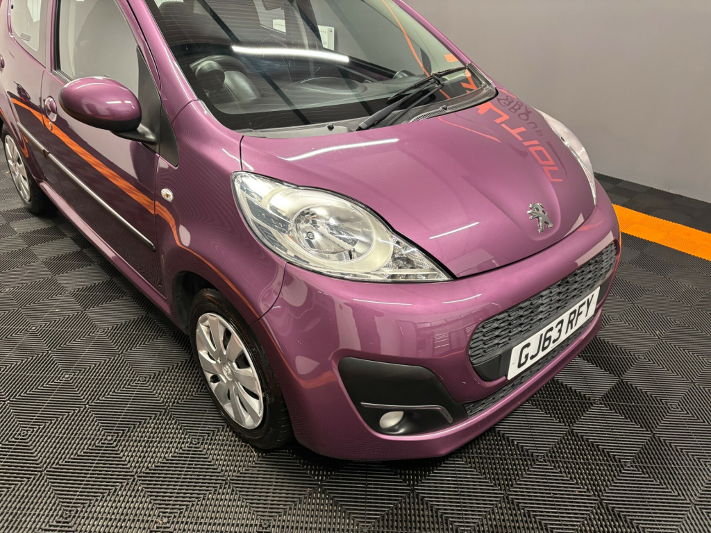Peugeot 107 1.0 Active 5dr Hatchback.. Registered - December 2013 (63-reg).. 24,000 miles.. Service history.. Just serviced - October 2025.. MOT - October 2026.. 1 year MOT (no advisories).. 1 lady owner from new.. 2 x keys.. Grade 1 immaculate condition inside and out (as new).. Air conditioning.. Factory fitted CD player with AUX input.. Power assisted steering.. ABS.. Alarm / central locking.. Electric windows.. ISO-FIX child seat anchor points.. Full size spare wheel with tool kit.. HPI clear with print-out.. Full detailed valet has been carried out.. Stunning example in pristine condition - finished in the desired Mauve Purple colour.. Ideal first car or little hatchback - with a super low mileage and extremely low running costs.. Only £20 per year road tax.. Low insurance group.. 65+ MPG.. Up to 2 years warranty available with the UK's best award winning warranty company.. FINANCE AVAILABLE...