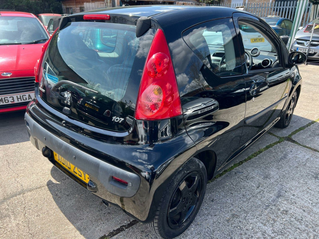 VEIWING STRICTLY BY APPOINTMENT PLEASE CALL ON 07973 377259 AS WE DO NOT PREFER WALK INS,HPI CLEAR,SERVCE HISTORY ,HALF LEATHER SEATS,BLACK GLOSS ALLOYS,SERVICE HISTORY,LONG MOT ELECTRIC WINDOWS,AIR CONDITIONING,,With only three previous owners and a full service history, this 2010 Peugeot 107 Allure is a well-maintained city car. Powered by a responsive 1.0L petrol engine, this Allure trim Peugeot 107 comes with an MOT valid until January 2026. The last service was carried out on 10th April 2025 at 68,000 miles, confirming the low mileage for its age. You can drive away with peace of mind, thanks to the included 3-month warranty and a clear vehicle history check.This Peugeot 107 stands out with its exceptional fuel economy of 63 mpg, meaning fewer trips to the petrol station. It also falls into a low insurance group, which can save you money on your annual premiums. Furthermore, its low CO2 emissions mean you'll be contributing less to pollution than with similar vehicles.. ULES COMPLIANT, E/WINDOWS, METALIC PAINT, Leather & Alcantara- Black & Grey, CENTRAL LOCKING, ALLOY WHEELS, PARKING SENSORS. Full service history
