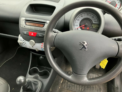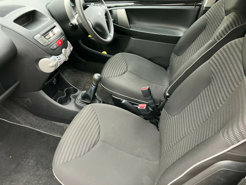 2014 '14' Peugeot 107 1.0 ACTIVEINTERIOR: Black cloth interior. Electric windows. Central locking. Power steering. Air con. Multiple air bags. Factory radio / cd player.EXTERIOR: Black paintwork, colour coded bumpers and mirrors. 14'' wheels. Some marks consistent with age / value etc.MECHANICALS: 998cc petrol engine. 5 speed manual gearbox. All running gear good, and the car drives well. Recent clutch kit at 41k. 4 fresh tyres at 47k. Fresh engine service at 48k.PAPERWORK: HPI clear. Full logbook. Current MOT expires September 23rd 2026. Invoice for recent engine services and clutch kit.OVERALL: Brilliant little city car. Smart looking. Very low mileage. Very very cheap to run, and cheap Cheap, £20 road TAX. Recent engine service. Long MOT., v power socket, 3.5mm jack, radio-cd player, speakers x4, 14in steel wheels - cordouan, door mirrors - body coloured, electric front windows, front and rear aprons - body-coloured, full size spare wheel, side rubbing strips - black, tinted windows - rear single piece tailgate with push button release, 4-speed heater fan, air conditioning - manual, cup holder - rear, cup holders - front centre console x2, head restraints - front integrated, head restraints - rear height adjustment x2, luggage compartment - carpet, seats - 50-50 split folding rear, steering wheel - height adjustable, sunvisor - front with vanity mirrors, abs - anti lock braking system, airbags - curtain, airbags - passenger deactivation switch, airbags - side, csc - cornering stability control, ebfd - electronic brake force distribution, esp - electronic stability programme, isofix location points - rear, remote control central locking, smart driver front airbag, smart passenger front airbag includes deactivation switch, side impact door protection, unfastened seat belt warning - driver, front fog lights, headlights - remote adjustment, high level third brake light, lights on warning, rev counter, speed related electric power assisted steering