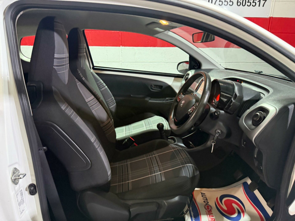Discover this exceptional 2017 Peugeot 108 Active, boasting incredibly low mileage of just 28,835 miles, a testament to its careful ownership by only two previous keepers. This compact and stylish city car is powered by an efficient 1.0 litre petrol engine, meeting the Euro 6 emission standards. Inside, you'll find practical features such as manual air conditioning to keep you comfortable in all weather, and Bluetooth connectivity for seamless handsfree calls and music streaming.This Peugeot 108 Active offers significant advantages for cost conscious drivers. Its remarkable fuel economy of up to 69 miles per gallon means fewer trips to the petrol station, while its low insurance group rating helps to keep your running costs down. Furthermore, its low CO2 emissions are beneficial for both the environment and potential tax savings. These highlights demonstrate how this particular 108 provides excellent value and efficiency compared to other vehicles in its class. v power socket, 15in steel wheels with brecola wheel trim, 2 front speakers plus 2 tweeters, 2 x 3 point rear seat belts, 3.5mm jack for external audio device, 7in multifunction colour touch screen, abs with electronic brakeforce distribution - ebd, ambience - black - grey, bluetooth, colour coded door handles, colour coded door mirrors, dab digital radio, door mirrors - manually operated, driver seat height adjustment, driver and passenger airbag with passenger airbag deactivation switch, esp - electronic stability program - with hill assist, electric front windows, electrically assisted power steering, front side airbags, front and rear curtain airbags, head restraints - rear x2, led daytime running lights, manual air conditioning, puncture repair kit, rear seat 3 point isofix location mounts x2, rear wash wipe, remote control central locking, seatbelt alarm, seats - 50-50 split folding rear, speed limiter, steering wheel - height adjustable, steering wheel mounted controls, thatcham approved cat 2 immobiliser, tyre pressure sensors, usb socket, diamond white, space saver spare wheel, carolight cloth - grey - white