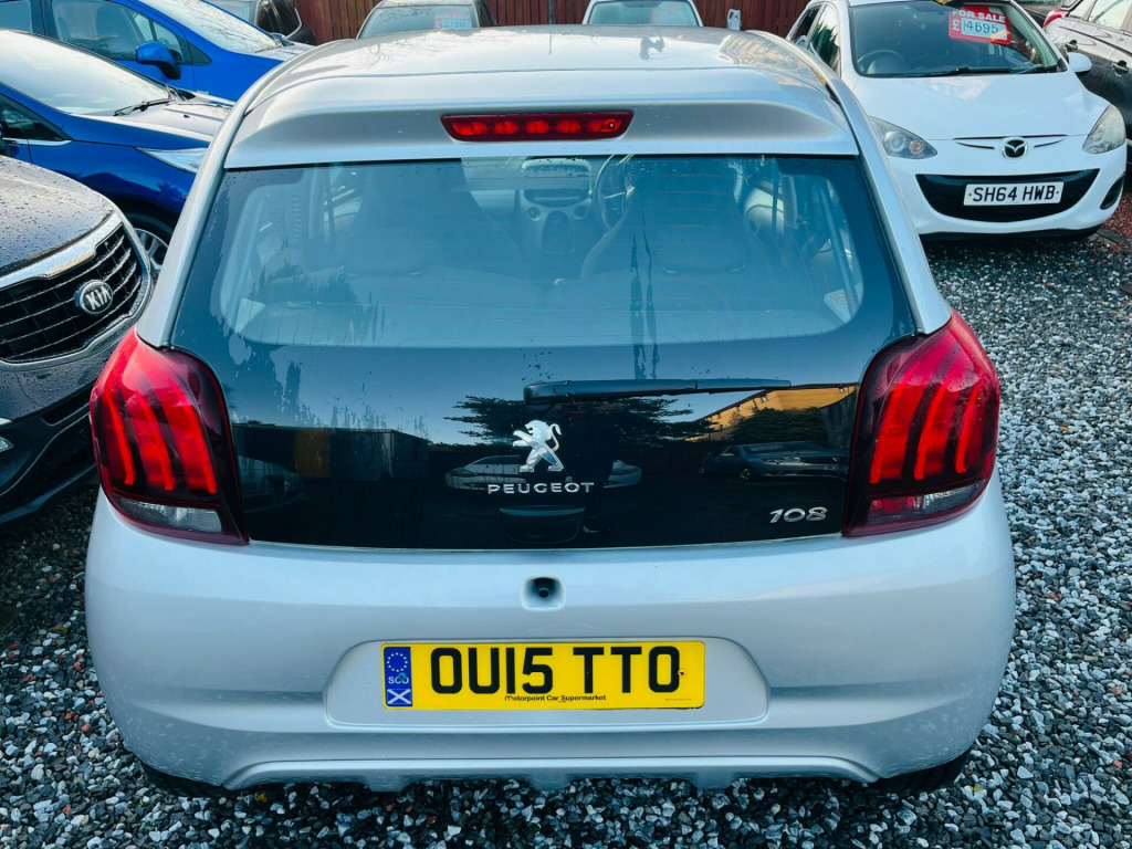 This 2015 Peugeot 108 1.0 VTi Active Euro 5 5dr Euro 5 Hatchback is currently available for £4,695 with Petrol engine and Manual gearbox. For more information or to arrange a viewing, click here to send us an email using form below.