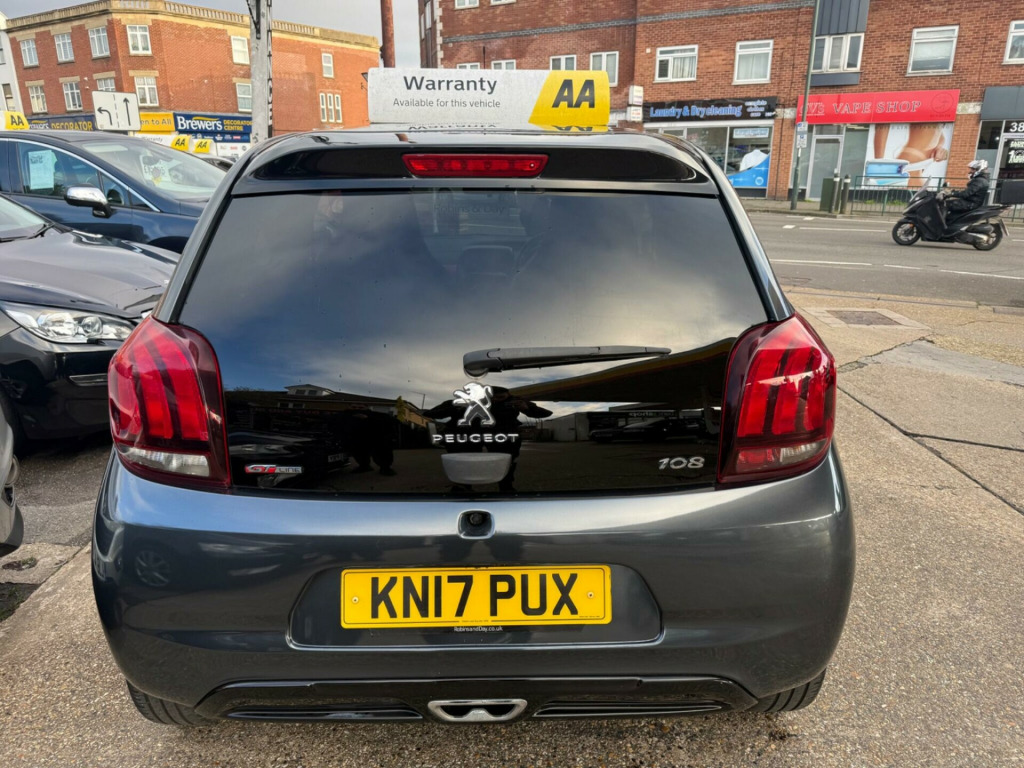 •Peugeot 108 1.2 PureTech GT Line•Low mileage •Manual drive •1.2Ltr•Hpi clean •2 Keys •Full service history •Comfort & convenience This 2017 Peugeot 108 GT Line presents an exceptional opportunity with remarkably low mileage for its age, having covered just 37801 miles. This stylish hatchback is powered by an efficient 1.2 litre petrol engine, meeting Euro 6 emissions standards. Inside, you'll find a 7 inch multifunction colour touchscreen that seamlessly integrates Bluetooth connectivity, allowing for easy access to your music and calls. The convenience continues with automatic headlights and the PEUGEOT Open and Go system, offering keyless entry for effortless access. Parking is made simpler too, thanks to the integrated reversing camera.This Peugeot 108 GT Line stands out with its impressive fuel economy, achieving a remarkable 66 miles per gallon, which indicates it is more economical than many similar vehicles. Furthermore, its low CO2 emissions highlight its environmental consideration. The low insurance group also means that running costs are kept to a minimum, making this a very sensible choice for many drivers. v power socket, 15in alloy wheels - s line, 2 front speakers plus 2 tweeters, 2 x 3 point rear seat belts, 3.5mm jack for external audio device, 7in multifunction colour touchscreen, abs with electronic brakeforce distribution - ebd, active city brake and lane departure warning system, air conditioning - automatic, airbags - curtain front and rear, bluetooth, colour coded door handles, dab digital radio, door mirrors - high gloss black housing, driver seat height adjustment, driver and passenger airbag with passenger airbag deactivation switch, esp - electronic stability program - with hill assist, electric front windows, electrically adjustable and heated door mirrors, electrically assisted power steering, exhaust tailpipe - finisher, front fog lights - chrome surround, front side airbags, front spoiler, gt line badging, gear knob - leather, head restraints - rear x2, headlights - automatic, led daytime running lights, laser red ambience - laser red dash insert and gloss black surround on centre console, leather trimmed steering wheel, peugeot open and go system, rear door child safety door lock, rear seat 3 point isofix location mounts x2, rear wash wipe, red peugeot lettering on grille, remote control central locking, rev counter, reversing camera, satellite navigation, seatbelt alarm, seats - 50-50 split folding rear, space saver spare wheel, speed limiter, spoiler - rear black, static fog lights, steering wheel - height adjustable, steering wheel mounted controls, thatcham approved cat 2 immobiliser, tinted rear and side windows, tyre pressure sensors, usb input, windows - pop-out opening rear side