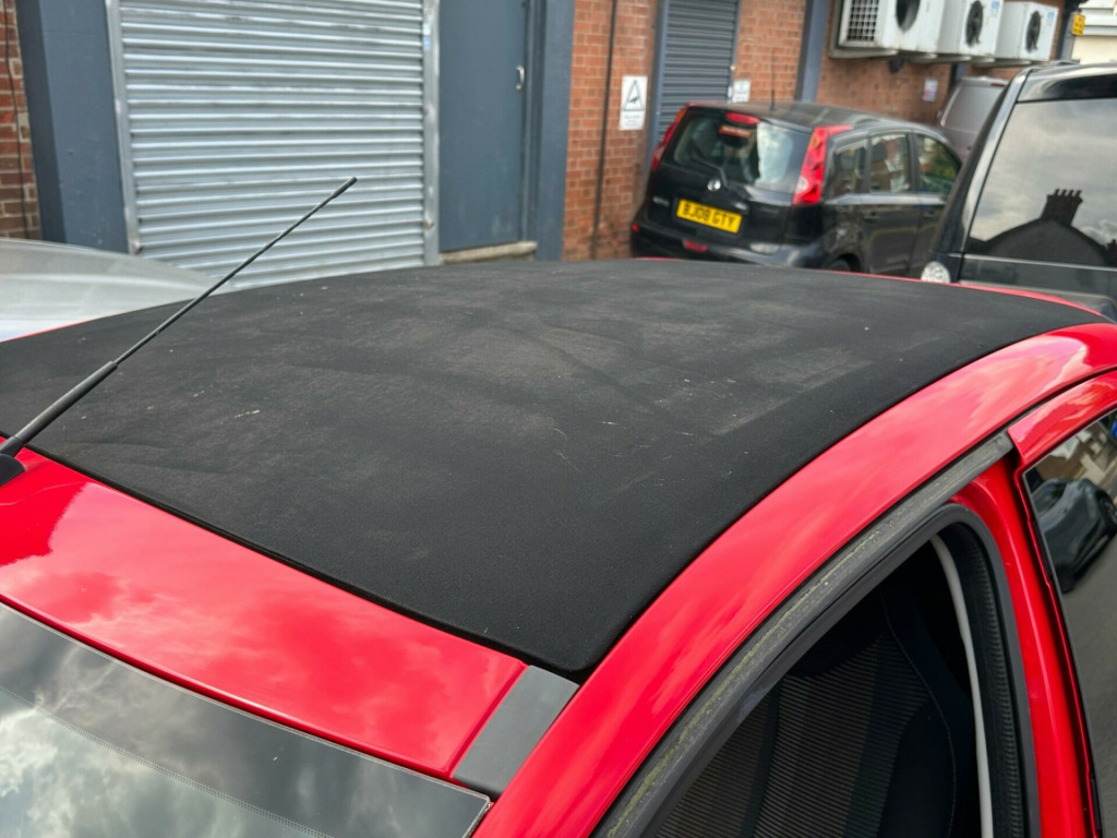 << 24 MONTHS WARRANTY - 12 MONTHS AA BREAKDOWN COVER - ULEZ COMPLIANT >>FLASH RED WITH GREY CLOTH UPHOLSTERY - AIR CON - ELECTRIC ROOF - REVERSE CAMERA - BLUETOOTH PHONE - BLUETOOTH AUDIO PLAY -LAST SERVICE 02/09/2025 38,524 MILES - LAST SERVICE CONSISTED OF: TIMING BELT - OIL SERVICE - FRONT DISCS & PADS - ROCKER COVER GASKET - NEW CLUTCH FITTED 01/2026 - MOT EXPIRES 01/09/2026 - RECORDED AS CATEGORY N 11-05-2020 - ( NON STRUCTURAL ) EXCELLENT VALUE - LOW MILEAGE - ANY INSPECTION WELCOME -. 12V Power Socket, 15in Alloy Wheels - Thorren, 3.5mm Jack, 7in Multifunction Colour Touchscreen, ABS - Anti Lock Braking System, Air Conditioning - Manual, Airbags - Curtain Front and Rear, Airbags - Front Side, Airbags - Passenger Deactivation Switch, Bluetooth Connectivity - Audio, Bluetooth Telephone Facility, Child Safety Door Locking, Chrome Door Handles, Chrome Door Mirrors, DAB Digital Radio, Driver Seat Height Adjustment, Drivers Airbag, EBFD - Electronic Brake Force Distribution, ESP - Electronic Stability Programme, Electric Front Windows, Electrically Adjustable and Heated Door Mirrors, Electrically Assisted Power Steering, Front Fog Lights, Front Passenger Airbags, Gear Knob - Leather Wrapped, Head Restraints - Rear x2, Headlights - Automatic, Hill Assist, ISOFIX Location Points - Rear, LED Daytime Running Lights, Leather Trimmed Steering Wheel, Open and Go System, Parking Aid - Reversing Camera, Pollen Filter, Retractable Roof - Black Fabric, Rev Counter, Seats - 50-50 Split Folding Rear, Speakers x4, Speed Limiter, Steering Wheel - Height Adjustable, Steering Wheel - Multifunction, Tinted Windows - Rear, Tyre Pressure Sensors, USB Input, Unfastened Seat Belt Warning - Front, Windows - Pop-Out Opening Rear Side. Part service history