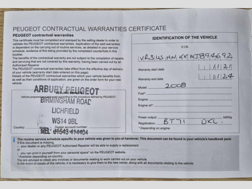 This 2021 Peugeot 2008 Allure Premium boasts a full dealership service history, offering peace of mind for its next owner. This stylish SUV is powered by an efficient 1.2 litre petrol engine, meeting Euro 6 emission standards. With only 21865 miles on the clock, it has low mileage for its age, and it will come with a Brand New, Independent, 12 month MOT once it is ordered. Notable features include a Bluetooth telephone facility for seamless connectivity and a Visibility Pack that incorporates automatic headlights, complemented by Eco LED headlights for enhanced illumination. The Peugeot 2008 Allure Premium stands out with its impressive fuel economy, achieving up to 53 miles per gallon, which is a significant advantage for everyday driving costs. Furthermore, its low CO2 emissions and low insurance group rating indicate that running this vehicle is more economical compared to many other cars in its class. These highlights demonstrate the thoughtful design and practical benefits this 2008 model offers. Comes with 4 Peugeot stamps in the Service Book with the last service carried out August '25 at 21,243 miles and it has 2 Keys, See below for its full list of features. Book today to view and test drive. Open 7 days a week. All part exchanges welcome. Please ask for details of our finance and extended warranty options, subject to status, T's and C's apply. Mirror Screen with Apple CarPlay and And, Visio Park 1 with 180 Degree Colour Reve, PEUGEOT i-Cockpit 7in Capacitive Colour , Bluetooth Telephone Facility, Programmable Cruise Control and Speed Li, Automatic Air Conditioning , DAB Digital Radio, 17in Salamanca Alloy Wheels , Smartphone Docking Station, Front USB Socket x2 including x1 USB-C, Voice Recognition , Electrochrome Rear View Mirror, Electric Front and Rear Windows , Comfort Front Seats, Driver and Front Passenger Seat Mechanic, Leather Trimmed Steering Wheel, Compact Multi-Function Steering Wheel, Front Central Armrest with Storage Compa, Full Grain Leather Gear Lever Top , Push Button Start, Multifunction Trip Computer, Tri-Materi