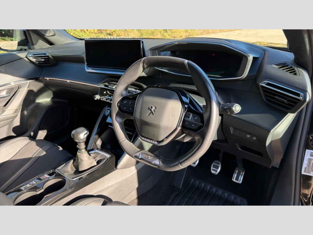 Peugeot 2008 1.2 PureTech 130 GT 5dr Blind spot monitoring, Bluetooth telephone facility, Connected 3D navigation, Driver attention warning, Exterior temperature indicator with ice warning, Lane keep assist, Mirror screen with mirror link, apple carplay and android auto, Multi function trip computer, PEUGEOT i-Cockpit with 10" capacitive colour touchscreen, PEUGEOT i-Cockpit with compact steering wheel, PEUGEOT i-Cockpit with configurable 3D headup instrument panel, PEUGEOT SOS and assistance, Smart phone docking station, Smartphone charging plate, Speed limit recognition and recommendation, Start/stop system, Visio Park 1 with 180 degree Colour reversing camera, 2 front USB socket with USB-C, 2 USB sockets in rear, DAB Radio (Digital Audio Broadcasting), Voice recognition for radio, navigation and telephony features, 2 X Rear number plate lights, Acoustic windscreen, Automatic front windscreen wipers, Automatic hazard light activation upon heavy brake application, Black diamond roof, Black front wing trim with gloss black detail and GT badging, Body coloured exterior door handles, Chrome exhaust tailpipe, Chrome Lion Badge front and rear, Dark tinted rear side and tailgate windows, Diamond black mirror shells, Diamond black rear spoiler (roof), Electric, heated, and power folding door mirrors, Frameless electrochrome interior rear view mirror, Front bumper - Silver lower trim, Full LED headlights with smartbeam assist, Gloss black finish on B pillar, Gloss black longitudinal roof rails, Gloss black rear cluster connecting strip, Gloss black roof bars, Gloss black window surround, GT model designation badging on tailgate, Headlights left on audible warning, LED daytime running lights with 3 claw headlight with distinctive tooth design, LED front fog lamps with remote cornering function, LED side indicator lights integrated into door mirrors, LED third brake light, Model designation badges front and rear, One touch electric front/rear windows with pinch protection, Radiator grille - Dark chrome chequered and gloss black edge trim, Radiator grille - gloss black top edge trim, Rear full LED 3D peugeot signature claw effect lights with daylight function, Rear reversing lights, Rear side wing doors, Rear windscreen wiper triggered automatically in reverse gear, Stainless steel door sill scuff plates, Tailgate with heated rear windscreen and wiper blade, Trailer Stability Programme, Variable front intermittent wipers, Welcome lighting, Wheel arch extensions, 1/3 to 2/3 split folding rear seats, 12v power outlet - front, 12V socket, 3 seat bench in 2nd row, 8 Colour personalisable ambient lighting, Aluminium pedals, Automatic air conditioning with pollen and active carbon filter, Central front armrest with storage compartment, Driver and front passenger sport seats, Electric power steering with reach and rake adjustable steering column, Front and rear carpet mats in black with lime green stitch detail, Front centre armrest, Front LED interior light with 2 reading spotlights and rear interior light with timer, Front passenger seat manual adjustment - height, longitudinal and back rest angle, Gear lever top - manual in full grain leather, Gear shift indicator, Heated front seats, High centre console, ISOFIX child seat mounting points on passenger seat, Lime green contrast stitching to front centre console, door panels and dashboard facia, Mistral full-grain perforated leather steering wheel with Lime Green stitch detail and satin chrome 'GT' emblem, Modular boot floor, Multifunction steering wheel, Piano keys: Gloss black and chrome toggle switches to access main functions of the vehicle and touchscreen functions, Roof lining - Mistral black, Seatbelt unfastened on the move audible and visual alert for front and rear seats, Single front passenger seat, Switch for Push Button Start finished in black with chrome surround, Visibility pack - 2008, 2x 2nd row ISOFIX child seat mountings, ABS (Anti-lock Braking System) with EBD (Electronic Brakeforce Distribution) and EBA (Emergency Braking Assistance), Acoustic vehicle alerting system, Active safety brake with night function/cyclists/pedestrians, Adaptive driver and front passenger airbags with passenger airbag deactivation function, Child locking functionality on rear doors, Driver/front passenger side airbags, Electric parking brake, ESP (Electronic Stability Program) + Hill Start Assist, Front and rear curtain airbags, Front and rear disc brakes, Front and rear three-point retractable seatbelts, with force limiters, Front optimised safety headrests and rear retractable headrests (x3), height adjustable, Tyre pressure sensor, Alarm system with anti-lift sensor, Automatic door locking when moving off, Deadlocks, Electronic code immobiliser, Exterior door lock x1 (Left-hand or passenger’s side), Remote central locking, Carbon effect Dashboard, front and rear door panel finish, 17" Salamanca diamond cut alloy wheels