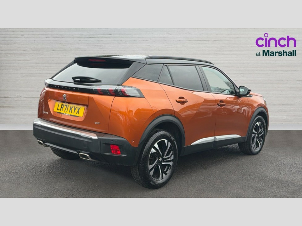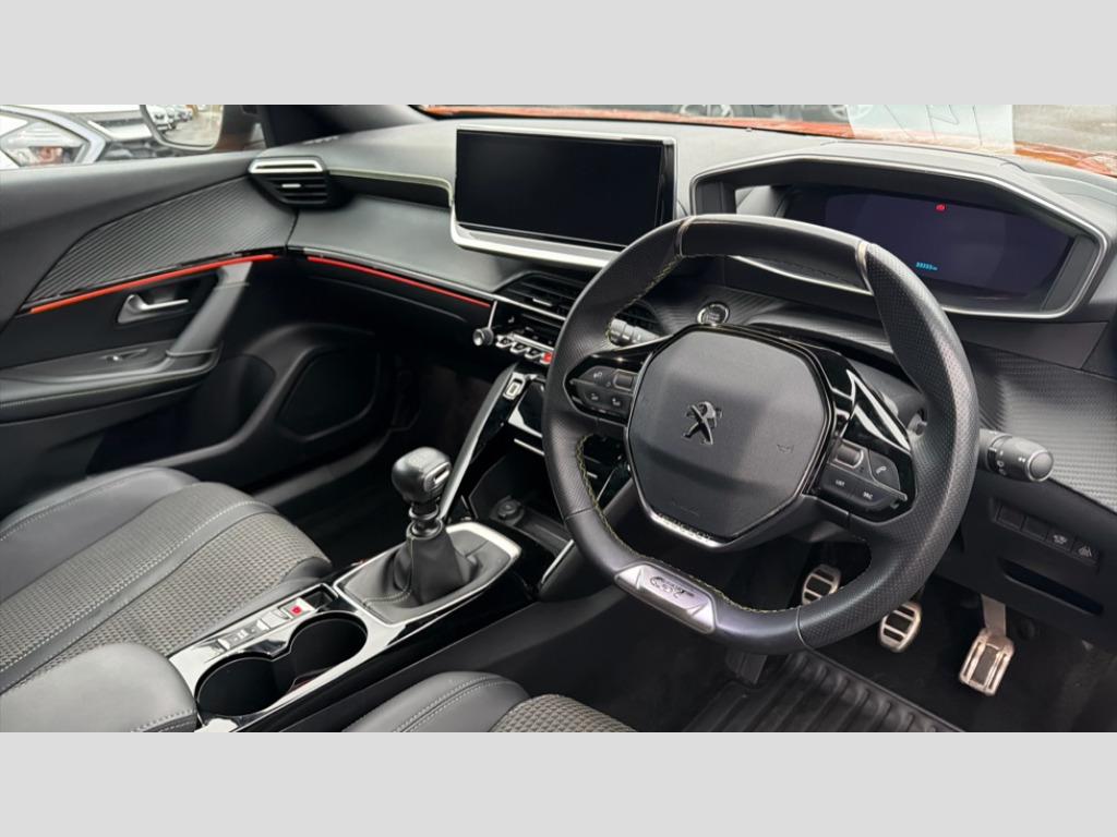Peugeot 2008 1.2 PureTech 130 GT 5dr 10" Capacitive colour touchscreen with connected 3D navigation, Bluetooth telephone facility, Driver attention warning, Exterior temperature indicator with ice warning, Front and rear parking sensors, Lane keep assist, Mirror screen with mirror link, apple carplay and android auto, Multi function trip computer, PEUGEOT i-Cockpit with compact steering wheel, PEUGEOT i-Cockpit with configurable 3D headup instrument panel, PEUGEOT SOS and assistance, Smart phone docking station, Speed limit recognition and recommendation, Start/stop system, Visio Park 1 with 180 degree Colour reversing camera, 2 front USB socket with USB-C, 2 USB sockets in rear, 6 speakers radio with mp3 compatible, DAB Radio (Digital Audio Broadcasting), Voice recognition for radio, navigation and telephony features, 2 X Rear number plate lights, Acoustic windscreen, Automatic hazard light activation upon heavy brake application, Black diamond roof, Black front wing trim with gloss black detail and GT badging, Body coloured exterior door handles, Chrome exhaust tailpipe, Chrome Lion Badge front and rear, Dark tinted rear side and tailgate windows, Diamond black mirror shells, Diamond black rear spoiler (roof), Electric, heated, and power folding door mirrors, Frameless electrochrome interior rear view mirror, Front bumper - Silver lower trim, Front tinted windscreen, Full LED headlights with smartbeam assist, Gloss black finish on B pillar, Gloss black longitudinal roof rails, Gloss black rear cluster connecting strip, Gloss black roof bars, Gloss black window surround, GT model designation badging on tailgate, Headlights left on audible warning, LED daytime running lights with 3 claw headlight with distinctive tooth design, LED side indicator lights integrated into door mirrors, LED third brake light, Lower door protection with silver inserts, Model designation badges front and rear, One touch electric front/rear windows with pinch protection, Radiator grille - Dark chrome chequered and gloss black edge trim, Radiator grille - gloss black top edge trim, Rear full LED 3D peugeot signature claw effect lights with daylight function, Rear reversing lights, Rear side wing doors, Rear windscreen wiper triggered automatically in reverse gear, Stainless steel door sill scuff plates, Tailgate with heated rear windscreen and wiper blade, Trailer Stability Programme, Variable front intermittent wipers, Welcome lighting, Wheel arch extensions, 1/3 to 2/3 split folding rear seats, 12v power outlet - front, 12V socket, 3 seat bench in 2nd row, 8 Colour personalisable ambient lighting, Aluminium pedals, Automatic air conditioning with pollen and active carbon filter, Central front armrest with storage compartment, Driver and front passenger dynamic seats, Electric power steering with reach and rake adjustable steering column, Front and rear carpet mats in black with lime green stitch detail, Front LED interior light with 2 reading spotlights and rear interior light with timer, Front passenger seat manual adjustment - height, longitudinal and back rest angle, Gear lever top - manual in full grain leather, Gear shift indicator, Heated front seats, High centre console with 2 cup holders, ISOFIX child seat mounting points on passenger seat, Lime green contrast stitching to front centre console, door panels and dashboard facia, Map pockets on front seat backs, Mistral full-grain perforated leather steering wheel with Lime Green stitch detail and satin chrome 'GT' emblem, Modular boot floor, Multifunction steering wheel, Piano keys: Gloss black and chrome toggle switches to access main functions of the vehicle and touchscreen functions, Roof lining - Mistral black, Seatbelt unfastened on the move audible and visual alert for front and rear seats, Single front passenger seat, Switch for Push Button Start finished in black with chrome surround, Visibility pack - 2008, 2x 2nd row ISOFIX child seat mountings, ABS (Anti-lock Braking System) with EBD (Electronic Brakeforce Distribution) and EBA (Emergency Braking Assistance), Acoustic vehicle alerting system, Active safety brake with night function/cyclists/pedestrians, Adaptive driver and front passenger airbags with passenger airbag deactivation function, Child locking functionality on rear doors, Driver/front passenger side airbags, Electric parking brake, ESP (Electronic Stability Program) + Hill Start Assist, Front and rear curtain airbags, Front and rear disc brakes, Front and rear three-point retractable seatbelts, with force limiters, Front optimised safety headrests and rear retractable headrests (x3), height adjustable, Tyre pressure sensor, Alarm system with anti-lift sensor, Automatic door locking when moving off, Deadlocks, Electronic code immobiliser, Exterior door lock x1 (Left-hand or passenger’s side), Remote central locking, Carbon effect Dashboard, front and rear door panel finish