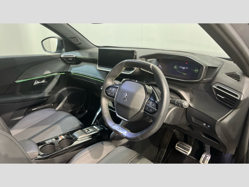Peugeot 2008 1.2 PureTech 130 GT 5dr EAT8 10" Capacitive colour touchscreen with connected 3D navigation, Bluetooth telephone facility, Driver attention warning, e-Toggle driving selector, Exterior temperature indicator with ice warning, Front and rear parking sensors, Mirror screen with mirror link, apple carplay and android auto, Multi function trip computer, PEUGEOT i-Cockpit with compact steering wheel, PEUGEOT i-Cockpit with configurable 3D headup instrument panel, PEUGEOT SOS and assistance, Smart phone docking station, Speed limit recognition and recommendation, Start/stop system, Visio Park 1 with 180 degree Colour reversing camera, 2 front USB socket with USB-C, 2 USB sockets in rear, 6 speakers radio with mp3 compatible, DAB Radio (Digital Audio Broadcasting), Voice recognition for radio, navigation and telephony features, 2 X Rear number plate lights, Acoustic windscreen, Automatic hazard light activation upon heavy brake application, Black diamond roof, Black front wing trim with gloss black detail and GT badging, Body coloured exterior door handles, Chrome Lion Badge front and rear, Dark tinted rear side and tailgate windows, Diamond black mirror shells, Diamond black rear spoiler (roof), Electric, heated, and power folding door mirrors, Frameless electrochrome interior rear view mirror, Front bumper - Silver lower trim, Front tinted windscreen, Full LED headlights with smartbeam assist, Gloss black finish on B pillar, Gloss black longitudinal roof rails, Gloss black rear cluster connecting strip, Gloss black roof bars, Gloss black window surround, GT model designation badging on tailgate, Headlights left on audible warning, LED daytime running lights with 3 claw headlight with distinctive tooth design, LED side indicator lights integrated into door mirrors, LED third brake light, Lower door protection with silver inserts, Model designation badges front and rear, One touch electric front/rear windows with pinch protection, Radiator grille - Dark chrome chequered and gloss black edge trim, Radiator grille - gloss black top edge trim, Rear full LED 3D peugeot signature claw effect lights with daylight function, Rear lower bumper gloss black diffuser effect trim, Rear reversing lights, Rear side wing doors, Rear windscreen wiper triggered automatically in reverse gear, Stainless steel door sill scuff plates, Tailgate with heated rear windscreen and wiper blade, Trailer Stability Programme, Twin chromed exhaust pipes, Variable front intermittent wipers, Welcome lighting, Wheel arch extensions, 1/3 to 2/3 split folding rear seats, 12v power outlet - front, 12V socket, 3 seat bench in 2nd row, 8 Colour personalisable ambient lighting, Aluminium pedals, Automatic air conditioning with pollen and active carbon filter, Central front armrest with storage compartment, Driver and front passenger dynamic seats, Electric power steering with reach and rake adjustable steering column, Front and rear carpet mats in black with lime green stitch detail, Front LED interior light with 2 reading spotlights and rear interior light with timer, Front passenger seat manual adjustment - height, longitudinal and back rest angle, Heated front seats, High centre console with 2 cup holders, ISOFIX child seat mounting points on passenger seat, Lime green contrast stitching to front centre console, door panels and dashboard facia, Map pockets on front seat backs, Mistral full-grain perforated leather steering wheel with Lime Green stitch detail and satin chrome 'GT' emblem, Modular boot floor, Multifunction steering wheel, Paddle shifts, Piano keys: Gloss black and chrome toggle switches to access main functions of the vehicle and touchscreen functions, Roof lining - Mistral black, Seatbelt unfastened on the move audible and visual alert for front and rear seats, Single front passenger seat, Switch for Push Button Start finished in black with chrome surround, Visibility pack - 2008, 2x 2nd row ISOFIX child seat mountings, ABS (Anti-lock Braking System) with EBD (Electronic Brakeforce Distribution) and EBA (Emergency Braking Assistance), Acoustic vehicle alerting system, Active safety brake with night function/cyclists/pedestrians, Adaptive driver and front passenger airbags with passenger airbag deactivation function, Child locking functionality on rear doors, Driver/front passenger side airbags, Electric parking brake, ESP (Electronic Stability Program) + Hill Start Assist, Front and rear curtain airbags, Front and rear disc brakes, Front and rear three-point retractable seatbelts, with force limiters, Front optimised safety headrests and rear retractable headrests (x3), height adjustable, Tyre pressure sensor, Alarm system with anti-lift sensor, Automatic door locking when moving off, Deadlocks, Electronic code immobiliser, Exterior door lock x1 (Left-hand or passenger’s side), Remote central locking, Carbon effect Dashboard, front and rear door panel finish