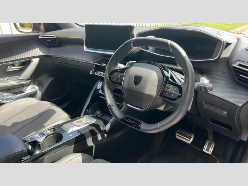 Peugeot 2008 1.2 PureTech 130 GT 5dr EAT8 Bluetooth telephone facility, Driver attention warning, E-call, Exterior temperature indicator with ice warning, Front and rear parking sensors, Multi function trip computer, PEUGEOT i-Cockpit with 10" high definition capacitive touchscreen, PEUGEOT i-Cockpit with compact steering wheel, PEUGEOT i-Cockpit with configurable 3D headup instrument panel, PEUGEOT SOS and assistance, Smartphone wireless charger, Speed limit recognition and recommendation, Wireless mirror screen with mirror link, apple carplay and android auto, Petrol Particulate Filter, 1x USB-C socket in rear and 1x USB-A socket in rear, 2 USB-C ports in the front, 6 speakers radio with mp3 compatible, DAB Radio (Digital Audio Broadcasting), Voice recognition for radio, navigation and telephony features, 2 X Rear number plate lights, Aluminium door sill scuff plates with peugeot lettering, Automatic hazard light activation upon heavy brake application, Black diamond roof, Black front wing trim with gloss black detail and GT badging, Body coloured exterior door handles, Dark tinted rear side and tailgate windows, Diamond black mirror shells, Diamond black rear roof spoiler, Electric, heated, and power folding door mirrors, Frameless electrochrome interior rear view mirror, Front bumper - Meteor grey lower trim, Full LED headlights with smartbeam assist with auto height adjustment, Gloss black finish on B pillar, Gloss black rear cluster connecting strip, Gloss black roof bars, Gloss black window surround, GT model designation badging on tailgate, Headlights left on audible warning, LED daytime running lights with distinctive 3 claw signature, LED side indicator lights integrated into door mirrors, LED third brake light, Model designation badges front and rear, One touch electric front/rear windows with pinch protection, Radiator grille - body coloured vertical chequered grille, Radiator grille - gloss black top edge trim, Rear full LED 3D peugeot signature claw effect lights with daylight function, Rear reversing lights, Rear side wing doors, Rear windscreen wiper triggered automatically in reverse gear, Tailgate with heated rear windscreen and wiper blade, Twin chromed exhaust pipes, Wheel arch extensions, 1/3 to 2/3 split folding rear seats, 12V socket, 3 seat bench in 2nd row, 8 Colour personalisable ambient lighting, Automatic air conditioning with pollen and active carbon filter, Central front armrest with storage compartment, Driver and front passenger sport seats, Electric power steering with reach and rake adjustable steering column, Front and rear carpet mats in black, Front LED interior light with 2 reading spotlights and rear interior light with timer, Front passenger seat manual adjustment - height, longitudinal and back rest angle, High centre console, ISOFIX child seat mounting points on passenger seat, Mistral full-grain perforated leather steering wheel with Lime Green stitch detail and satin chrome 'GT' emblem, Multifunction steering wheel, Piano keys: Gloss black and chrome toggle switches to access main functions of the vehicle and touchscreen functions, Roof lining - Mistral black, Seatbelt unfastened on the move audible and visual alert for front and rear seats, Single front passenger seat, Two position modular boot floor, Visibility pack - 2008, 2x 2nd row ISOFIX child seat mountings, ABS (Anti-lock Braking System) with EBD (Electronic Brakeforce Distribution) and EBA (Emergency Braking Assistance), Active safety brake with night function/cyclists/pedestrians, Adaptive driver and front passenger airbags with passenger airbag deactivation function, Child locking functionality on rear doors, Driver/front passenger side airbags, Electric parking brake, ESP (Electronic Stability Program) + Hill Start Assist, Front and rear curtain airbags, Front and rear disc brakes, Front and rear three-point retractable seatbelts, with force limiters, Front optimised safety headrests and rear retractable headrests (x3), height adjustable, Tyre pressure sensor, Automatic door locking when moving off, Deadlocks, Electronic code immobiliser, Peugeot Open and Go (keyless entry and push button start), Thatcham category 1 alarm, Carbon effect Dashboard, front and rear door panel finish