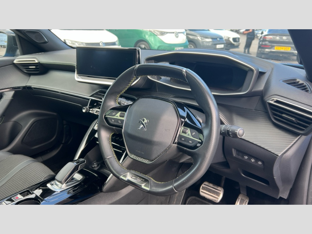 Peugeot 2008 100kW GT Line 50kWh 5dr Auto 10" Capacitive colour touchscreen with connected 3D navigation with Piano keys gloss black plated toggle switches to access touchscreen, Bluetooth telephone facility, Driver attention warning, Exterior temperature indicator with ice warning, Front and rear parking sensors, Lane keep assist, Mirror screen with mirror link, apple carplay and android auto, Multi function trip computer, PEUGEOT i-Cockpit with compact steering wheel, PEUGEOT i-Cockpit with configurable 3D headup instrument panel, PEUGEOT SOS and assistance, Push button start, Smart phone docking station, Smartphone charging plate, Speed limit recognition and recommendation, Visio Park 1 with 180 degree Colour reversing camera, Mode 3 type 2 cable for wallbox charging, 2 front USB socket with USB-C, 2 USB sockets in rear, 6 speakers radio with mp3 compatible, DAB Radio (Digital Audio Broadcasting), Voice recognition for radio, navigation and telephony features, 2 X Rear number plate lights, Automatic hazard light activation upon heavy brake application, Black front wing trim with gloss black detail and e-monogram, Body coloured exterior door handles, Chrome front lower bumper, Dark tinted rear side and tailgate windows, Diamond black rear spoiler (roof), Dichroic badging including front lion and tailgate, Electric, heated, and power folding door mirrors, Frameless electrochrome interior rear view mirror, Front windscreen wiper, Full LED headlights with smartbeam assist, Gloss black finish on B pillar, Gloss black rear cluster connecting strip, Gloss black roof bars, Gloss black window surround, GT Line model designation badging on tailgate, Headlights left on audible warning, LED daytime running lights with 3 claw headlight with distinctive tooth design, LED front fog lights, LED side indicator lights integrated into door mirrors, Model designation badges front and rear, Nera black door mirror shells, One touch electric front/rear windows with pinch protection, Radiator grille - body colour chequered and gloss black edge trim, Radiator grille colour coded higher part, Rear full LED 3D peugeot signature claw effect lights with daylight function, Rear reversing lights, Rear windscreen wiper triggered automatically in reverse gear, Stainless steel door sill scuff plates, Tailgate with heated rear windscreen and wiper blade, Wheel arch extensions, 1/3 to 2/3 split folding rear seats, 12V socket, 8 Colour personalisable ambient lighting, Aluminium pedals, Automatic air conditioning, Automatic gear lever in full grain leather and satin chrome, Central front armrest with storage compartment, Driver and front passenger seat manual adjustment in longitudinal and back rest angle, Driver and front passenger seat mechanical height adjustment, Driver and front passenger sport seats, Electric power steering with reach and rake adjustable steering column, Front and rear carpet mats in black with specific detailing, Front LED interior light with 2 reading spotlights and rear interior light with timer, Heated front seats, High centre console, ISOFIX child seat mounting points on passenger seat, Lime green contrast stitching to front centre console, door panels and dashboard facia, Mistral full grain perforated leather steering wheel with aikinite stitch detail and satin chrome 'GT Line' emblem, Modular boot floor, Piano keys gloss black plated toggle switches to access main functions of the vehicle, Pre heating function, Roof lining - Mistral black, Seatbelt unfastened on the move audible and visual alert for front and rear seats, Tri material cloth/leather upholstery, Visibility pack - 2008, 2x 2nd row ISOFIX child seat mountings, ABS (Anti-lock Braking System) with EBD (Electronic Brakeforce Distribution) and EBA (Emergency Braking Assistance), Active safety brake with night function/cyclists/pedestrians, Adaptive driver and front passenger airbags with passenger airbag deactivation function, Child locking functionality on rear doors, Driver/front passenger side airbags, Electric parking brake, ESP (Electronic Stability Program) + Hill Start Assist, Front and rear curtain airbags, Front and rear disc brakes, Front and rear three-point retractable seatbelts, with force limiters, Front optimised safety headrests and rear retractable headrests (x3), height adjustable, Tyre pressure sensor, Automatic door locking when moving off, Deadlocks, Electronic code immobiliser, Thatcham Cat.1 alarm, Carbon effect Dashboard, front and rear door panel finish, 18" Bund diamond cut alloy wheels, Tyre puncture repair kit