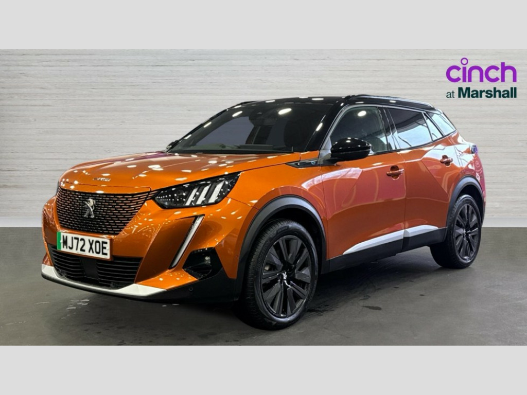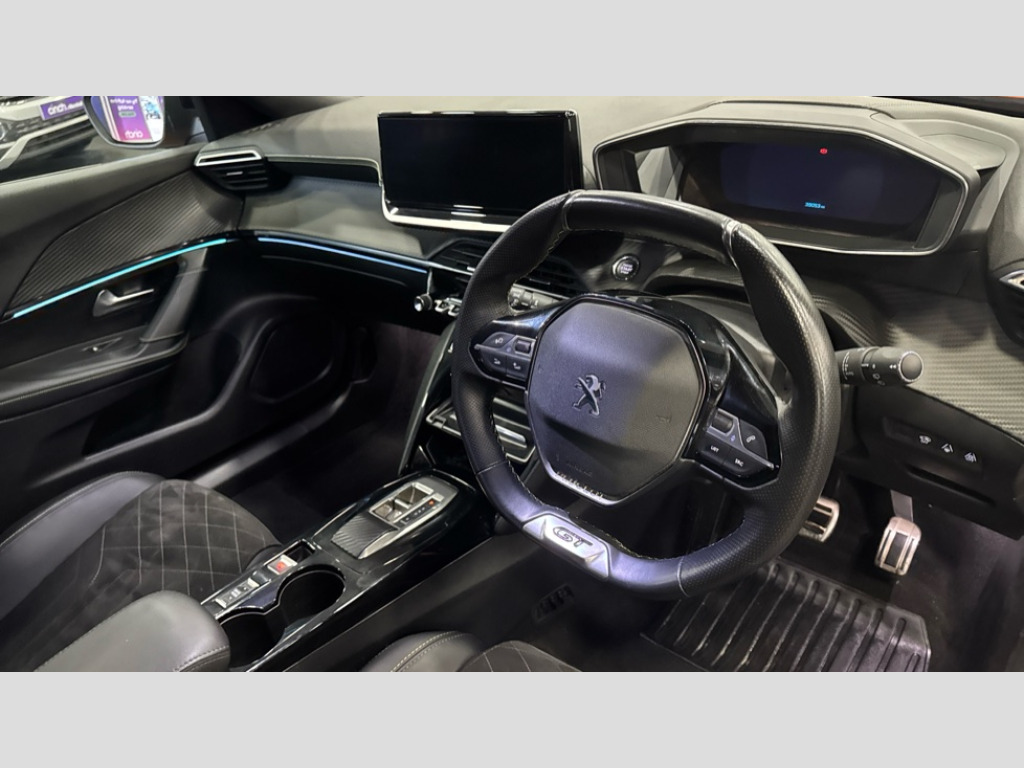 Peugeot 2008 100kW GT Premium 50kWh 5dr Auto Blind spot monitoring, Bluetooth telephone facility, Connected 3D navigation, Driver attention warning, e-Toggle driving selector, Exterior temperature indicator with ice warning, Lane keep assist, Mirror screen with mirror link, apple carplay and android auto, Multi function trip computer, PEUGEOT i-Cockpit with 10" capacitive colour touchscreen, PEUGEOT i-Cockpit with compact steering wheel, PEUGEOT i-Cockpit with configurable 3D headup instrument panel, PEUGEOT SOS and assistance, Smart phone docking station, Speed limit recognition and recommendation, Visio Park 1 with 180 degree Colour reversing camera, 7 kW monophase on board charger, Mode 3 type 2 cable for wallbox charging, 2 front USB socket with USB-C, 2 USB sockets in rear, 6 speakers radio with mp3 compatible, DAB Radio (Digital Audio Broadcasting), Voice recognition for radio, navigation and telephony features, 2 X Rear number plate lights, Acoustic windscreen, Automatic front windscreen wipers, Automatic hazard light activation upon heavy brake application, Black diamond roof, Black front wing trim with gloss black detail and e-monogram, Body coloured exterior door handles, Chrome Lion Badge front and rear, Dark tinted rear side and tailgate windows, Diamond black mirror shells, Diamond black rear spoiler (roof), Electric, heated, and power folding door mirrors, Frameless electrochrome interior rear view mirror, Front bumper - Silver lower trim, Full LED headlights with smartbeam assist, Gloss black finish on B pillar, Gloss black longitudinal roof rails, Gloss black rear cluster connecting strip, Gloss black roof bars, Gloss black window surround, GT model designation badging on tailgate, Headlights left on audible warning, LED daytime running lights with 3 claw headlight with distinctive tooth design, LED front fog lamps with remote cornering function, LED side indicator lights integrated into door mirrors, LED third brake light, Model designation badges front and rear, One touch electric front/rear windows with pinch protection, Radiator grille - body colour chequered and gloss black edge trim, Radiator grille - colour coded top edge trim, Rear full LED 3D peugeot signature claw effect lights with daylight function, Rear reversing lights, Rear side wing doors, Rear windscreen wiper triggered automatically in reverse gear, Stainless steel door sill scuff plates, Tailgate with heated rear windscreen and wiper blade, Variable front intermittent wipers, Welcome lighting, Wheel arch extensions, 1/3 to 2/3 split folding rear seats, 12v power outlet - front, 12V socket, 3 seat bench in 2nd row, 8 Colour personalisable ambient lighting, Aluminium pedals, Automatic air conditioning with pollen and active carbon filter, Central front armrest with storage compartment, Driver and front passenger sport seats, Driver seat manual adjustment - height, longitudinal and back rest angle, Electric power steering with reach and rake adjustable steering column, Front and rear carpet mats in black with specific detailing, Front centre armrest, Front LED interior light with 2 reading spotlights and rear interior light with timer, Front passenger seat manual adjustment - height, longitudinal and back rest angle, High centre console, ISOFIX child seat mounting points on passenger seat, Lime green contrast stitching to front centre console, door panels and dashboard facia, Mistral full-grain perforated leather steering wheel with Lime Green stitch detail and satin chrome 'GT' emblem, Modular boot floor, Multifunction steering wheel, Piano keys: Gloss black and chrome toggle switches to access main functions of the vehicle and touchscreen functions, Pre heating function, Roof lining - Mistral black, Seatbelt unfastened on the move audible and visual alert for front and rear seats, Single front passenger seat, Switch for Push Button Start finished in black with chrome surround, Tri material alcantara/cloth upholstery, Drive assist Plus pack - 2008, Visibility pack - 2008, 2x 2nd row ISOFIX child seat mountings, ABS (Anti-lock Braking System) with EBD (Electronic Brakeforce Distribution) and EBA (Emergency Braking Assistance), Acoustic vehicle alerting system, Active safety brake with night function/cyclists/pedestrians, Adaptive driver and front passenger airbags with passenger airbag deactivation function, Brake energy regeneration, Child locking functionality on rear doors, Driver/front passenger side airbags, Electric parking brake, ESP (Electronic Stability Program) + Hill Start Assist, Front and rear curtain airbags, Front and rear disc brakes, Front and rear three-point retractable seatbelts, with force limiters, Front optimised safety headrests and rear retractable headrests (x3), height adjustable, Tyre pressure sensor, Alarm system with anti-lift sensor, Automatic door locking when moving off, Deadlocks, Electronic code immobiliser, Exterior door lock x1 (Left-hand or passenger’s side), Peugeot Open and Go (keyless entry and push button start), Remote central locking, Carbon effect Dashboard, front and rear door panel finish, 18" Evissa diamond cut alloy wheels, Tyre inflation kit