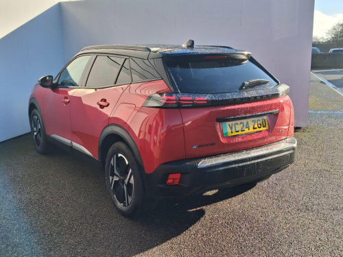 With low running costs and the remainder of Peugeot’s manufacturer warranty, this e-2008 GT is an excellent choice for drivers looking to make the switch to electric without compromising on style or practicality. 1-3 - 2-3 Folding Rear Seat, 12V Power Socket, 17in Alloy Wheels - Karakoy - Diamond Cut, 6-Speaker Radio - MP3 Compatible, 7KW Monophase On Board Charger, 8 Colour Personalisable Ambient Lighting, ABS with Electronic Brake Force Distributor EBD and Emergency Brake Assist EBA, Active Safety Brake - Night Function - Cyclists - Pedestrians, Airbags - Adaptive Driver and Front Passenger, Alarm - Thatcham Category 1, Aluminium Door Sill Scuff Plates with Peugeot Lettering, Automatic Air Conditioning with Pollen Filter and Carbon Active Filter, Automatic Door Locking When Moving Off, Automatic Hazard Light Activation Upon Heavy Brake Application, Bluetooth Telephone Facility, Child Locking Functionality on Rear Doors, DAB Digital Radio, Dark Tinted Rear Side and Tailgate Windows, Dashboard - Front and Rear Door Panel Finish - Carbon Effect, Deadlocking, Diamond Black Roof, Dichroic Badging on Tailgate, Door Mirror Covers - Black Diamond, Driver Attention Warning, Driver and Front Passenger Seat Mechanical Height Adjustment, Driver and Front Passenger Side Airbags, Dynamic Seats, ESP - Electronic Stability Program - with Hill Assist, Electric - Heated and Power Folding Door Mirrors, Electric Parking Brake, Electric Power Steering with Reach and Rake Adjustable Steering Column, Electric Windows - Front and Rear with One Touch and Pinch Protection, Electrochrome Rear View Mirror, Electronic Code Immobiliser, Exterior Door Handles - Body-Colour, Exterior Temperature Indicator with Ice Warning, Front Bumper - Meteor Grey Lower Trim, Front Central Armrest with Storage Compartment, Front Optimised Safety Headrests and Rear Retractable Headrests - x3 - Height-Adjustable, Front USB-C Socket x2, Front Wing Trim - Black with Gloss Black Detail and GT Badging, Front and Rear 3 Point Retractable Seatbelts - With Force Limiter, Front and Rear Carpet Mats in Black, Front and Rear Curtain Airbags, Full LED Headlights with Smartbeam Assist and Automatic Height Adjustment, GT Model Designation Badging on Tailgate, Gloss Black B Pillar, Gloss Black Rear Cluster Connecting Strip, Gloss Black Window Surround, Headlights Left On Audible Warning, Heat Pump, High Centre Console, ISOFIX Child Seat Fittings - Passenger Seat, ISOFIX Child Seat Fittings - x2 - Second Row, LED Daytime Running Lights with Distinctive 3-Claw Design, LED Front Interior Light with Reading Spotlights -x2- and Rear Interior Light with Timer, LED Side Indicator Lights Integrated into Door Mirrors, Lane Keeping Assist, Mistral Full-Grain Perforated Leather Steering Wheel with Lime Green Stitch Detail and Satin Chrome GT Emblem, Mode 3 Type 2 Cable for Wallbox Charging, Model Designation Badges - Front and Rear, Modular Boot Floor - 2 Position, Multifunction Trip Computer, New PEUGEOT Shield, PEUGEOT 3D i-Cockpit - Configurable 3D Head-Up Instrument Panel, PEUGEOT Open and Go System, PEUGEOT i-Cockpit - 10in HD Capacitive Colour Touchscreen, PEUGEOT i-Connect, Parking Sensors - Front, Parking Sensors - Rear, Peugeot i-Cockpit - Compact Multi-Function Steering Wheel, Piano Keys - Gloss Black and Chrome Plated Toggle Switches to Access Main Functions of Vehicle and Touchscreen Functions, Pre-Heating Functionality, Programmable Cruise Control and Speed Limiter, Push Button Start, Radiator Grille - Body-Colour Vertical Chequered Grille, Rear - USB-C Socket x1 and USB-A Socket x1, Rear Bumper - Gloss Black Finish, Rear Full LED 3D Peugeot Signature Claw Effect Lights with Daylight Function, Rear Number Plate Lights x2, Rear Reversing Lights, Rear Spoiler - Diamond Black, Rear Windscreen Wiper Triggered Automatically in Reverse Gear, Roof Lining - Mistral Black, Roof Rails - Gloss Black, Seatbelt Unfastened on the Move Audible and Visual Alert for Front and Rear Seats, Seating - Driver and Front Passenger Seat Manual Adjustment - Longitudinal and Back Rest Angle, Seating - Driver and Front Passenger Sport Seats, Smartphone Charging Plate, Speed Limit Recognition and Recommendation, Tailgate with Heated Rear Windscreen and Wiper Blade, Tyre Inflation Kit, Tyre Pressure Monitor, Visibility Pack, Visio Park 1 - 180 Degree Colour Reversing Camera, Voice Recognition - Radio-Navigation-Telephony Features, Wheel Arch Extensions, Wireless Mirror Screen - Apple CarPlay and Android Auto