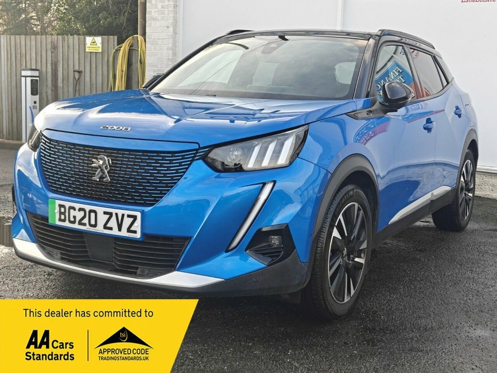 This 2020 Peugeot E-2008 GT Line boasts exceptionally low mileage for its age, having covered just 29,673 miles, and comes with a clear vehicle history check. This vehicle boasts itself with an excellent service history As an electric vehicle, it offers a substantial battery capacity of 50 kWh, providing a maximum range of 206 miles when new. Charging is convenient, with a full charge at home using a 7kW charger taking approximately 7 hours and 30 minutes, while rapid public charging can replenish the battery from empty to 80% in as little as 30 minutes. ========= Specification Apple CarPlay & Android Auto (Mirror Screen) 10in Touchscreen with Connected 3D Navigation Active Safety Brake (Night, Pedestrians & Cyclists) Full LED Headlights with Smartbeam Assist 180° Colour Reversing Camera (Visio Park 1) + Front & Rear Parking Sensors 7kW On-Board Charger + Mode 3 Type 2 Charging Cable Heated Front Seats Programmable Cruise Control with Speed Limiter Peugeot 3D i-Cockpit Digital Head-Up Instrument Display Wireless Smartphone Charging Plate Dual-Zone Automatic Climate Control Lane Keeping Assist Keyless Push Button Start Electric Folding & Heated Door Mirrors Customisable 8-Colour Ambient Interior Lighting ========= Service History 14/07/2021 - Peugeot - 3735 Miles 05/07/2022 - Peugeot - 10347 Miles 22/06/2023 - Peugeot - 18098 Miles 13/05/2025 - Independent - 26572 Miles This vehicle will be serviced and will have a MOT prior to sale ========= 1-3 - 2-3 Folding Rear Seat, 12V Power Socket, 18in Alloy Wheels - Storm - Diamond Cut , 6-Speaker Radio - MP3 Compatible, 7KW Monophase On Board Charger, 8-Colour Customisable Ambient Lighting, ABS with Electronic Brake Force Distribu, Active Safety Brake - Night Function - C, Alarm, Aluminium Pedals, Automatic Door Locking When Moving Off, Automatic Dual Zone Air Conditioning, Automatic Hazard Light Activation Upon H, Bluetooth Telephone Facility, Child Locking Functionality on Rear Door, DAB Digital Radio, Dark Tinted Rear Side and Tailgate Windo, Dashboard - Front and Rear Door Panel Fi, Deadlocking, Diamond Black Roof, Dichroic Badging including - Front Lion , Door Mirror Shells - Nera