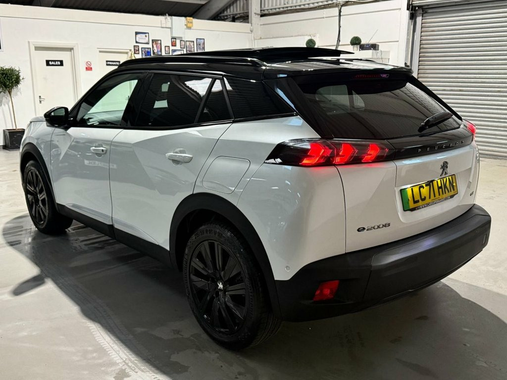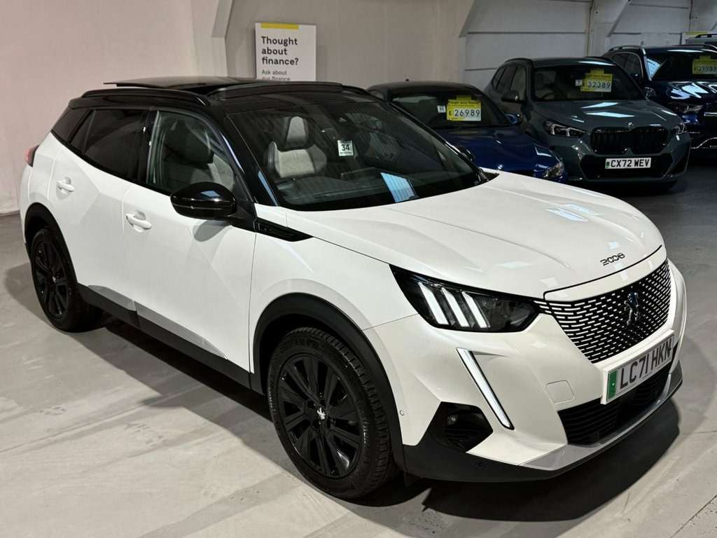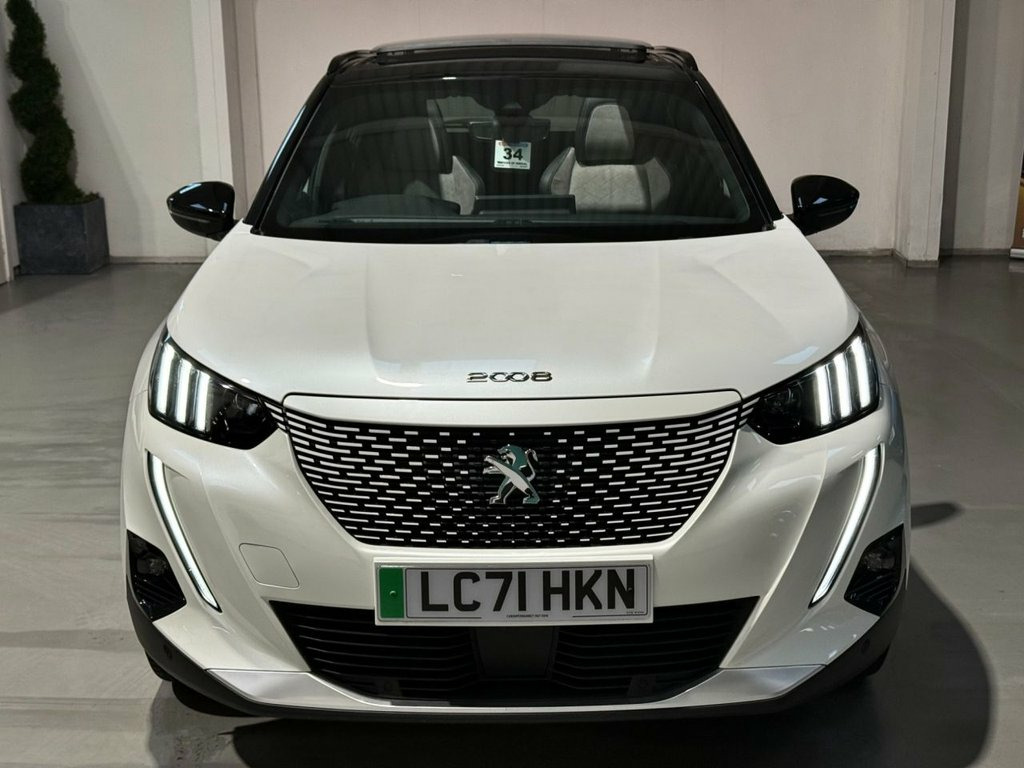 Woods of Wirral presents this 2021 Peugeot E-2008 GT Premium which is a superb example, having had one owner since new. Complimented by a full Peugeot main dealer service history ensuring this vehicle has been maintained to the highest of standards This electric SUV offers a compelling blend of style and practicality, featuring a 50 kWh battery that provides a maximum range of 206 miles when fully charged. For convenient home charging, a full charge using a 7kW wallbox takes approximately 7 hours and 30 minutes, while rapid public charging can replenish the battery from empty to 80% in as little as 30 minutes. Featuring the best level of specification including upgrade opening glass sunroof... heated part-leather front sports seats... wireless phone charging pad... built in satelite navigation.... privacy glass.... The GT Premium trim level ensures a well equipped and comfortable driving experience. This electric Peugeot E-2008 stands out with its impressive range and rapid charging capabilities, offering a more convenient ownership experience compared to many other electric vehicles. Its single owner provenance further enhances its appeal, suggesting careful maintenance and a well looked after vehicle. Panoramic Opening Glass Spoiler Roof wit, Peugeot i-Cockpit - Compact Multi-Functi, Seats - Heated Front, PEUGEOT i-Cockpit 10in Capacitive Colour, Pearlescent White, DAB Digital Radio, LED Daytime Running Lights - 3-Claw Head, Programmable Cruise Control and Speed Li, Dark Tinted Rear Side and Tailgate Windo, Smartphone Charging Plate, 1-3 - 2-3 Folding Rear Seat, 12V Power Socket, 18in Alloy Wheels - Evissa - Diamond Cut, 6-Speaker Radio - MP3 Compatible, 7KW Monophase On Board Charger, 8-Colour Customisable Ambient Lighting, ABS with Electronic Brake Force Distribu, Active Safety Brake - Night Function - C, Alarm with Anti-Lift Sensor, Aluminium Pedals, Automatic Air Conditioning with Pol