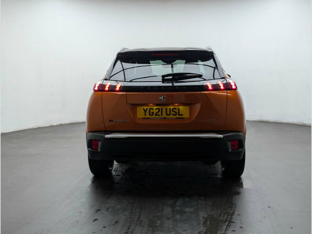 17" alloys, Navigation, Heated seats, Parking camera and Upgraded sound system. Last service done at 29913 miles. This 2021 Peugeot E-2008 GT is a clear vehicle history check, offering a compelling electric driving experience. As an electric vehicle, it boasts a 50 kWh battery with a maximum range of 206 miles when new. Charging is convenient, with a full charge at home taking approximately 7 hours and 30 minutes using a 7kW charger, and a rapid charge from empty to 80% achievable in just 30 minutes at a public charging station. This GT trim level comes equipped with a Smartphone Charging Plate for wireless phone charging, and Mirror Screen technology supporting Apple CarPlay, Android Auto, and MirrorLink for seamless smartphone integration. The E-2008 GT enhances your driving with the Visio Park 1 system, featuring a 180 degree colour reversing camera and parking assistance. Stay connected effortlessly with the Bluetooth Telephone Facility, and enjoy the convenience of the Visibility Pack, which includes automatic headlights. These features collectively demonstrate how this Peugeot E-2008 GT offers a superior and more connected driving experience compared to other vehicles in its class. 1-3 - 2-3 Folding Rear Seat, 12V Power Socket, 17in Alloy Wheels - Salamanca - Diamond , 6-Speaker Radio - MP3 Compatible, 7KW Monophase On Board Charger, 8-Colour Customisable Ambient Lighting, ABS with Electronic Brake Force Distribu, Active Safety Brake - Night Function - C, Alarm, Aluminium Pedals, Automatic Air Conditioning with Pollen F, Automatic Door Locking When Moving Off, Automatic Front Windscreen Wipers, Automatic Hazard Light Activation Upon H, Blind Spot Monitoring System, Bluetooth Telephone Facility, Child Locking Functionality on Rear Door, DAB Digital Radio, Dark Tinted Rear Side and Tailgate Windo, Dashboard - Front and Rear Door Panel Fi, Deadlocking, Diamond Black Roof,