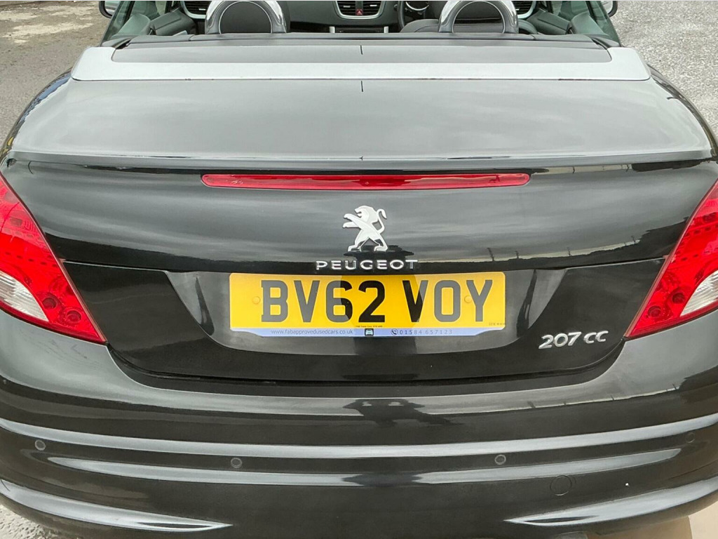2012 (62) Peugeot 207 CC 1.6 VTi Roland Garros Euro 5 2dr presented in Black with Dove Grey leather interior / Fantastic service history - serviced on 3k, 8k, 17k, 18k, 19k, 25k, 33k 40k & 48k / Two previous owner from new - last since 2020 / 1 key / New MOT with no advisories / USB input / Bluetooth / Cruise control / Rear parking sensors / Climate control / Automatic lights / Electric Hardtop Roof / Electric windows / Alloy wheels / Trip computer / Drive away today / All of our Cars are supplied with FREE NEW MOT with no advisories, FREE Interim service, FREE HPI Check, FREE MOT History Check, FREE 3 months Nationwide Parts and Labour Warranty and a FREE professional valet. Please call us to arrange a viewing and test drive or for any further information about this car.