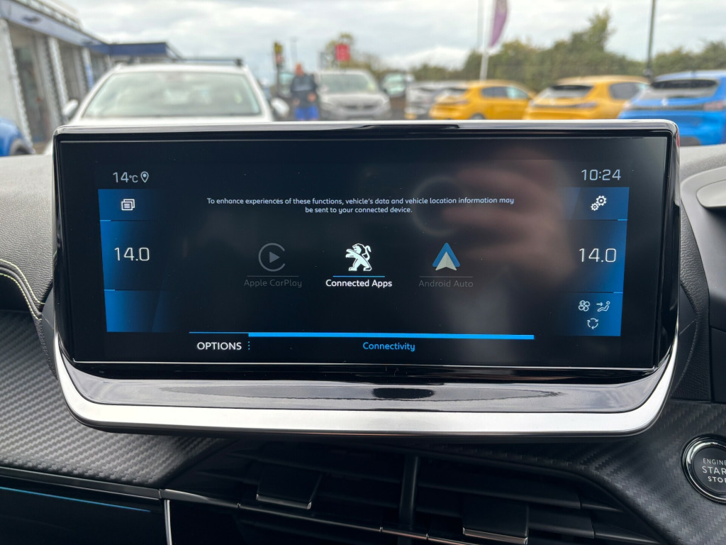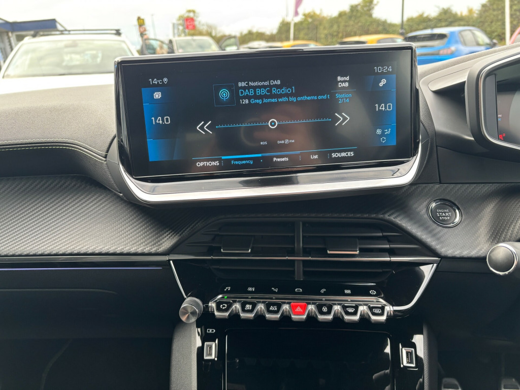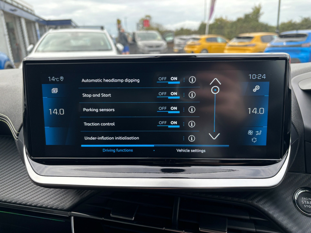 v power socket, 6-speaker radio - mp3 compatible, bluetooth telephone facility, dab - digital audio broadcasting, front usb socket x2 including x1 usb-c, mirror screen - apple carplay and android auto, peugeot i-cockpit 10in capacitive colour touchscreen with connected 3d navigation includes tomtom live updates (3 year subscription from new), peugeot connect sos and assistance, rear usb socket x2, roof mounted aerial with fin design, smartphone docking station, tomtom live services (3 year subscription from new), 17in alloy wheels - camden - diamond cut two-tone, dark tinted rear side and tailgate windows, diamond black roof, door mirror shells - nera black, electric - heated and power folding door mirrors, exterior door handles - body-colour, gt line model designation badging on c pillar, gt model designation badging on tailgate, gloss black b pillar, gloss black rear cluster connecting strip, gloss black wheel arch extensions, gloss black window surround, led side indicator lights integrated into door mirrors, model designation badges - front and rear, one-touch electric front windows with pinch protection, one-touch electric rear windows with pinch protection, peugeot scuff plates, radiator grille - dark chrome chequered and gloss black edge trim, rear bumper - gloss black finish, rear lower bumper gloss black diffuser effect trim, rear number plate lights x2, rear spoiler - diamond black, space saver spare wheel, tailgate with heated rear windscreen and wiper blade, visibility pack, 8-colour customisable ambient lighting, air conditioning - automatic, carpet mats, central front armrest with storage compartment, dashboard - front and rear door panel finish - carbon effect, driver and front passenger seat mechanical height adjustment, driver and front passenger sport seats, frameless electrochrome rear view mirror, front optimised safety headrests and rear retractable headrests - x3 - height-adjustable, gear lever with satin chrome detail, high centre console with 2 cup holders, led front interior light with reading spotlights -x2- and rear interior light with timer, lime green contrast stitching to armrest - front centre console - door panels - dashboard fascia, map pockets on front seat backs, mistral full-grain perforated leather steering wheel with aikinite stitch detail and satin chrome gt emblem, peugeot i-cockpit compact steering wheel, peugeot door sills, piano keys - gloss black plated toggle switches to access main functions of vehicle, push button start, rear reversing lights, roof lining - mistral black, seating - driver and front passenger seat manual adjustment - longitudinal and back rest angle, seating- 1-3 - 2-3 folding rear seat, abs with electronic brake force distributor ebd and emergency brake assist eba, active safety brake - night function - cyclists - pedestrians, airbags - adaptive driver and front passenger, airbags - curtain front and rear, airbags - driver and front passenger side, alarm - thatcham category 1 approved, automatic door locking when moving off, automatic hazard light activation upon heavy brake application, child locking functionality on rear doors, deadlocking, esp - electronic stability programme with hill start assist, electric parking brake, electronic code immobiliser, front three-point retractable seatbelts with force limiters, isofix child seat fittings - x2 - second row, isofix with top tether on passenger seat, lane keeping assist, rear windscreen wiper triggered automatically in reverse gear, seatbelt unfastened on the move audible and visual alert for front and rear seats, speed limit recognition and recommendation, blind spot monitoring, driver attention warning, electric power steering with reach and rake adjustable steering column, exterior temperature indicator with ice warning, gear shift indicator, multifunction trip computer, peugeot 3d i-cockpit - configurable 3d head-up instrument panel, programmable cruise control and speed limiter, tyre pressure sensors, visio park 1 - 180 degree colour reversing camera, voice recognition - radio-navigation-telephony features, full led headlights with smartbeam assist, headlights left on audible warning, led daytime running lights - 3-claw headlight with distinctive tooth design, rear full led 3d peugeot signature claw effect lights with daylight function