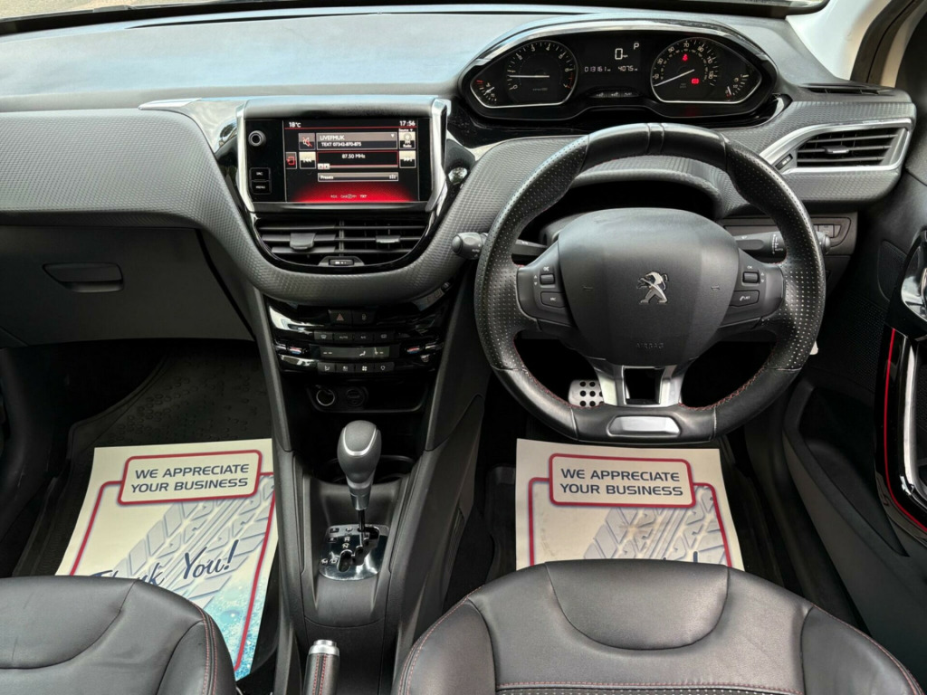 Blackheath Motor Group Are Humbled To Offer This Lovely Little Peugeot 208 1.2 GT Line Automatic 2016/16 Finished in Silver Metallic With Contrasting Black Leather Interior With Red Stitching. A Colour Combination Which Needs to Be Seen in Person as it Looks Lovely And Maintains A Great Shine. Only Covered A Very Low & Vosa Verified 12,000 Miles From New With Full Up To Date Service History. Just Been Recently Serviced at 12K in Sep 25. Very Well Maintained Vehicle Via Just 1F Owner From New. Presented With 2 Keys, MOT: May 26. Very High Specification Being The GT Line : Panoramic Roof, GT Styling Additions, Reverse Camera, Parking Sensors, Multi Airbags, Electric Windows, Electric Mirrors, Air Condition, Climate Control, Cruise Control, Traction Control, Peugeot Touch Screen In Car Entertainment With DAB, MP3 AUX, Day Time Running Lights, Alloy Wheels and Much More. This Low Mileage 208 Has Been Very Well Looked After And Has A Lovely Specification. Blackheath Motor Group is a Family Run Business Which Prides Itself in Not Only Supplying Motor Vehicles, But Also Building Positive Relationships with its Satisfied Customers. All of Our Stock is Carefully Picked From Main Dealers Throughout the UK. Please Visit Our Website or Call Us To Book an Appointment on 07543455948 / 02084655506. We Are Always Happy to Give Car Related Advice and Answer Any Questions. 3 Month Warranty. Free 1 Year AA Breakdown Cover. tive city brake, 12v power socket, 17in alloy wheels - caesium, 2 front and 2 rear speakers plus 2 tweeters, 7in multifunction colour touchscreen, abs - anti lock braking system, air conditioning - automatic dual zone, airbags - curtain front and rear, airbags - front side, airbags - passenger deactivation switch, aluminium effect on pedals, aluminium effect on sills, automatic activation of hazard warning lights, bluetooth, child safety door locking, cruise control, dab digital radio, deadlocks, door handles - body coloured, door mirrors - black housing, door mirrors - electric folding and heated, driver seat height adjustment, drivers airbag, eba - emergency brake assist, ebfd - electronic brake force distribution, esp - electronic stability programme, electrically assisted power steering, electrochrome rear view mirror, equaliser grille with stamped 3d effect, exhaust tailpipe - chrome, external temperature gauge, follow me home headlights, front fog lights - cornering assist, front fog lights - gloss black finishers, front passenger airbags, full size spare wheel, gt line badging, gear shift indicator, gloss black grille finisher, headlights - automatic, height and reach adjustable steering column, isofix location points - rear, illuminated footwell - led, instrument panel lcd screen display - colour, interior lights with illuminated footwell - led, led daytime running lights, leather trimmed steering wheel, leather and chrome gear knob, mirror screen, one touch electric drivers window, passenger seat height adjustment, pollen filter, rain sensing front wipers, rear boomerang effect lights - led, rear head restraints x3, rear parking aid, rear wash wipe, remote control central locking, seats - 2-3 - 1-3 rear bench, seats - sports, speed alarm, speed limiter, steering wheel - multifunction, sunvisor - front with vanity mirrors, thatcham approved cat 2 immobiliser, tinted windows - rear, trip computer, tyre pressure sensors, usb input, unfastened seat belt warning - front, visibility pack
