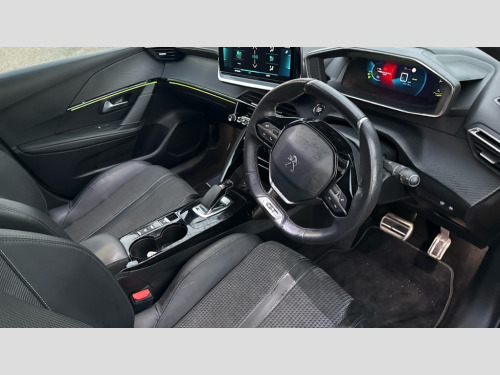 Peugeot 208 100kW GT 50kWh 5dr Auto 10" Capacitive colour touchscreen with connected 3D navigation, Blind spot monitoring, Bluetooth telephone facility, Driver attention warning, Exterior temperature indicator with ice warning, Mirror screen with mirror link, apple carplay and android auto, Multi function trip computer, PEUGEOT i-Cockpit with compact steering wheel, PEUGEOT i-Cockpit with configurable 3D headup instrument panel, PEUGEOT SOS and assistance, Push button start, Smart phone docking station, Speed limit recognition and recommendation, Visio park assist 180 with colour reversing camera + front and rear parking sensor, 7 kW monophase on board charger, Mode 3 type 2 cable for wallbox charging, 2 front USB socket with USB-C, 2x USB sockets in rear, 6 speakers radio with mp3 compatible, DAB Digital radio, Voice recognition for radio, navigation and telephony features, 2 X Rear number plate lights, Automatic hazard light activation upon heavy brake application, Automatic lights, Automatic windscreen wipers, Body coloured exterior door handles, Dark tinted rear side and tailgate windows, Diamond black rear spoiler (roof), Diamond Black roof, Dichroic badging in front lion with e monogram on C pillar and tailgate, Electric front windows + one touch + anti-pinch, Electric rear windows with one touch/anti-pinch, Electrically adjustable, heated and power folding door mirrors, Follow me home headlights, Frameless electrochrome interior rear view mirror, Full LED headlights with smartbeam assist, Gloss black finish on B pillar, Gloss black rear cluster connecting strip, Gloss black wheel arch extensions, Gloss black window surround, GT model designation badging on tailgate, Headlights left on audible warning, LED daytime running lights with 3 claw headlight with distinctive tooth design, LED side indicator lights integrated into door mirrors, Model designation badges front and rear, Nera black door mirror shells, Peugeot scuff plates, Radiator grille - body colour chequered and gloss black edge trim, Rear bumper with gloss black finish, Rear full LED 3D peugeot signature claw effect lights with daylight function, Rear lower bumper diffuser effect trim in gloss black, Rear reversing lights, Rear windscreen wiper triggered automatically in reverse gear, Roof mounted aerial with fin design, Tailgate with heated rear windscreen and wiper blade, 1/3 to 2/3 split folding rear seats, 12V socket, 8 Colour personalisable ambient lighting, Aluminium pedals and foot rest, Automatic air conditioning, Automatic gear lever in full grain leather and satin chrome, Driver and front passenger seat manual adjustment in longitudinal and back rest angle, Driver and front passenger seat mechanical height adjustment, Driver and front passenger sport seats, Electric power steering with reach and rake adjustable steering column, Front and rear carpet mats in black with specific detailing, Front centre armrest with storage compartment, Front LED interior light with 2 reading spotlights and rear interior light with timer, High centre console with 2 cup holders, ISOFIX child seat mounting points on passenger seat, Lime green contrast stitching to armrest, front centre console, door panels and dashboard facia, Map pockets on the backs of the front seats, Mistral full grain perforated leather steering wheel with aikinite stitch detail and satin chrome 'GT' emblem, Piano keys gloss black plated toggle switches to access main functions of the vehicle, Piano keys gloss black plated toggle switches to access touchscreen functions, Pre heating function, Roof lining - Mistral black, Seatbelt unfastened on the move audible and visual alert for front and rear seats, Tri material cloth/leather upholstery, 2x Isofix child seat fitting on outer rear seats, 3 rear 3 point seatbelts, ABS (Anti-lock Braking System) with EBD (Electronic Brakeforce Distribution) and EBA (Emergency Braking Assistance), Active safety brake with night function/cyclists/pedestrians, Adaptive driver and front passenger airbags with passenger airbag deactivation function, Child locking functionality on rear doors, Driver/front passenger side airbags, Electric parking brake, ESP with Hill Assist, Front and rear curtain airbags, Front and rear disc brakes, Front optimised safety headrests and 3 x rear retractable headrests with height adjustable, Front three point retractable seatbelts with force limiters, Tyre pressure sensor, Acoustic vehicle alert system (AVAS), Automatic door locking when moving off, Deadlock, Electronic code immobiliser, Thatcham cat. 1 alarm with anti lift sensor, Carbon effect Dashboard, front and rear door panel finish, 17" Shaw diamond cut two tone alloy wheels, Tyre puncture repair kit