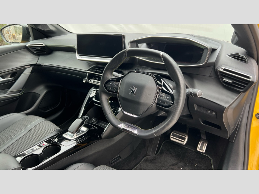 Peugeot 208 100kW GT 50kWh 5dr Auto 10" Capacitive colour touchscreen with connected 3D navigation, Blind spot monitoring, Bluetooth telephone facility, Driver attention warning, Exterior temperature indicator with ice warning, Mirror screen with mirror link, apple carplay and android auto, Multi function trip computer, PEUGEOT i-Cockpit with compact steering wheel, PEUGEOT i-Cockpit with configurable 3D headup instrument panel, PEUGEOT SOS and assistance, Push button start, Smart phone docking station, Speed limit recognition and recommendation, Visio park assist 180 with colour reversing camera + front and rear parking sensor, 7 kW monophase on board charger, Mode 3 type 2 cable for wallbox charging, 2 front USB socket with USB-C, 2x USB sockets in rear, 6 speakers radio with mp3 compatible, DAB Digital radio, Voice recognition for radio, navigation and telephony features, 2 X Rear number plate lights, Automatic hazard light activation upon heavy brake application, Automatic lights, Automatic windscreen wipers, Body coloured exterior door handles, Dark tinted rear side and tailgate windows, Diamond black rear spoiler (roof), Diamond Black roof, Dichroic badging in front lion with e monogram on C pillar and tailgate, Electric front windows + one touch + anti-pinch, Electric rear windows with one touch/anti-pinch, Electrically adjustable, heated and power folding door mirrors, Follow me home headlights, Frameless electrochrome interior rear view mirror, Full LED headlights with smartbeam assist, Gloss black finish on B pillar, Gloss black rear cluster connecting strip, Gloss black wheel arch extensions, Gloss black window surround, GT model designation badging on tailgate, Headlights left on audible warning, LED daytime running lights with 3 claw headlight with distinctive tooth design, LED side indicator lights integrated into door mirrors, Model designation badges front and rear, Nera black door mirror shells, Peugeot scuff plates, Radiator grille - body colour chequered and gloss black edge trim, Rear bumper with gloss black finish, Rear full LED 3D peugeot signature claw effect lights with daylight function, Rear lower bumper diffuser effect trim in gloss black, Rear reversing lights, Rear windscreen wiper triggered automatically in reverse gear, Roof mounted aerial with fin design, Tailgate with heated rear windscreen and wiper blade, 1/3 to 2/3 split folding rear seats, 12V socket, 8 Colour personalisable ambient lighting, Aluminium pedals and foot rest, Automatic air conditioning, Automatic gear lever in full grain leather and satin chrome, Driver and front passenger seat manual adjustment in longitudinal and back rest angle, Driver and front passenger seat mechanical height adjustment, Driver and front passenger sport seats, Electric power steering with reach and rake adjustable steering column, Front and rear carpet mats in black with specific detailing, Front centre armrest with storage compartment, Front LED interior light with 2 reading spotlights and rear interior light with timer, High centre console with 2 cup holders, ISOFIX child seat mounting points on passenger seat, Lime green contrast stitching to armrest, front centre console, door panels and dashboard facia, Map pockets on the backs of the front seats, Mistral full grain perforated leather steering wheel with aikinite stitch detail and satin chrome 'GT' emblem, Piano keys gloss black plated toggle switches to access main functions of the vehicle, Piano keys gloss black plated toggle switches to access touchscreen functions, Pre heating function, Roof lining - Mistral black, Seatbelt unfastened on the move audible and visual alert for front and rear seats, Tri material cloth/leather upholstery, 2x Isofix child seat fitting on outer rear seats, 3 rear 3 point seatbelts, ABS (Anti-lock Braking System) with EBD (Electronic Brakeforce Distribution) and EBA (Emergency Braking Assistance), Active safety brake with night function/cyclists/pedestrians, Adaptive driver and front passenger airbags with passenger airbag deactivation function, Child locking functionality on rear doors, Driver/front passenger side airbags, Electric parking brake, ESP with Hill Assist, Front and rear curtain airbags, Front and rear disc brakes, Front optimised safety headrests and 3 x rear retractable headrests with height adjustable, Front three point retractable seatbelts with force limiters, Tyre pressure sensor, Acoustic vehicle alert system (AVAS), Automatic door locking when moving off, Deadlock, Electronic code immobiliser, Thatcham cat. 1 alarm with anti lift sensor, Carbon effect Dashboard, front and rear door panel finish, 17" Shaw diamond cut two tone alloy wheels, Tyre puncture repair kit