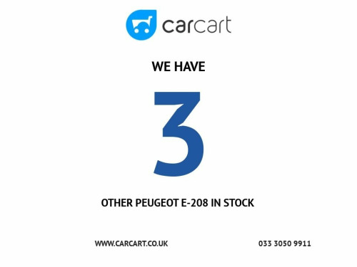 One of the best additions to our stock! An electric Peugeot 208 finished in Jet black! The 50 kWh battery pack provides a generous electric range, ensuring you can confidently drive through both city and suburban areas without sacrificing performance. The budget-friendly yet elegant design of the car ensures excellent value for money, striking a perfect balance between affordability and style. Ideal for city driving, this small car is easy to maneuver and perfect for navigating busy streets. Loaded with features, such as, Satellite Navigation, Apple and Android Play, Bluetooth, Automatic Folding Mirrors, Front and Rear Parking Sensors, Keyless Entry, 17 Inch Alloy Wheels, this car ensures a comfortable ride. Your peace of mind is ensured with 3-Month warranty, next MOT due 02/2027, last serviced 01/2026 (total 4 services, 3 by MD), ULEZ Compliant, HPI clear. The car has been prepared to meet high standards, undergoing a rigorous 100-point check. Rest assured that the car comes with clean bodywork, tidy interior and a smooth drive on the road. WE PROVIDE FINANCING ON ALL VEHICLES AT COMPETITIVE RATES, CHECK ELIGIBILITY USING OUR FREE FINANCE CHECKER WITHOUT AFFECTING YOUR CREDIT SCORE AT CARCART.CO.UK/FINANCE. V5C form present or to follow. PAY REFUNDABLE FEE ON OUR WEBSITE TO RESERVE VEHICLE! Viewing available 7 days a week! AS WE ARE A VERY BUSY DEALERSHIP, PLEASE CHECK THE AVAILABILITY BEFORE COMING DOWN CALLING 03330509911 OR TEXTING VIA WHATSAPP 07570757055. Every effort 12V Power Socket, 16in Alloy Wheels - Elborn, 6-Speaker Radio - MP3 Compatible, 7KW Monophase On Board Charger, ABS with Electronic Brake Force Distribu, Active Lane Keeping Assistance - LKA and, Active Safety Brake - Pedestrians, Airbags - Adaptive Driver and Front Pass, Airbags - Curtain Front and Rear, Airbags - Driver and Front Passenger Sid, Alarm - Thatcham Category 1, Automatic Air Conditioning, Automatic Door Locking When Moving Off, Automatic Hazard Light Activation Upon H, Bluetooth Telephone Facility, Child Locking Functionality on Rear Door, DAB Digital Radio, Dark Tinted Rear Side and Tailgate Windo, Dashboard - Front and Rear Door Panel Fi, Deadlocks, Dichroic Badging including