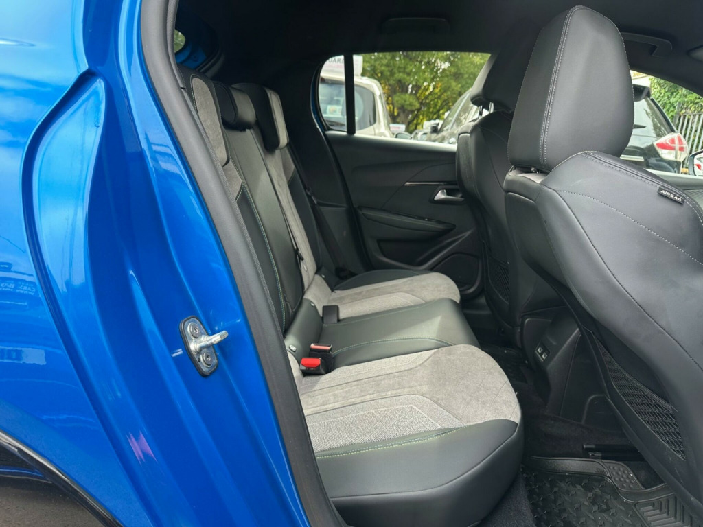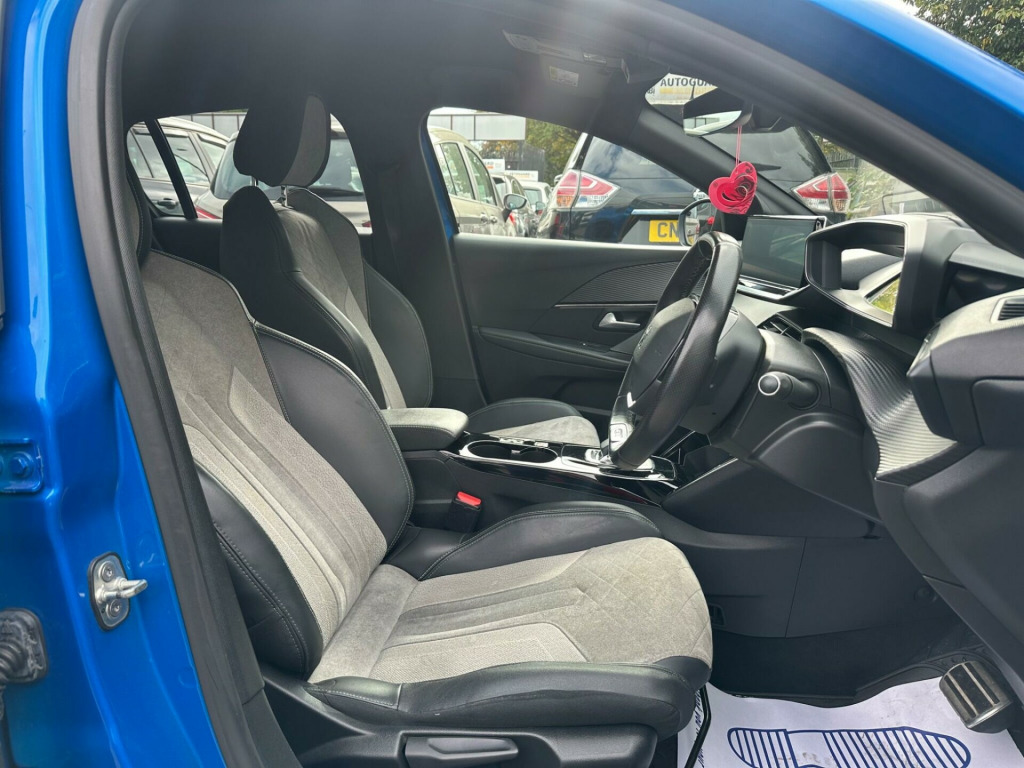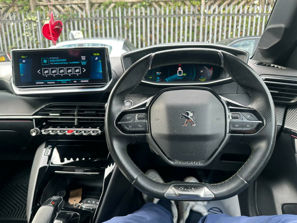 ON V CAR CAT S! This 2020 Peugeot E-208 GT is an exceptional example, boasting remarkably low mileage for its age, having covered just 20,841 miles. As a fully electric vehicle, it offers a compelling blend of modern technology and environmental consciousness. The GT trim level ensures a premium experience, complemented by a 50 kWh battery that provided an impressive maximum range of 217 miles when new. Charging is convenient, with a full charge at home taking approximately 7 hours and 30 minutes using a 7kW charger, while rapid public charging can replenish the battery from empty to 80% in as little as 30 minutes. Notable features include a Smartphone Charging Plate for effortless wireless phone charging, the PEUGEOT Open and Go system with keyless entry for seamless access, and Active Blind Spot Detection for enhanced safety. You'll also appreciate the Bluetooth Telephone Facility for hands-free calls and the Visio Park 1 system, which includes a 180-degree colour reversing camera to aid with parking.The Peugeot E-208 GT stands out with its advanced electric powertrain and comprehensive feature set. The 217 mile maximum range when new highlights its capability for both daily commutes and longer journeys, offering a practical alternative to traditional petrol or diesel cars. The inclusion of features like Active Blind Spot Detection and the 180-degree reversing camera demonstrates a commitment to driver assistance and safety, setting it apart from many other vehicles in its class. The convenience of keyless entry and wireless phone charging further enhances the user experience, making this electric hatchback a sophisticated and forward-thinking choice.. 12V Power Socket, 17in Alloy Wheels - Shaw - Diamond Cut Two-Tone, 6-Speaker Radio - MP3 Compatible, 7KW Monophase On Board Charger, 8-Colour Customisable Ambient Lighting, ABS with Electronic Brake Force Distributor EBD and Emergency Brake Assist EBA, Active Blind Spot Detection, Active Lane Keeping Assistance - LKA and Road Edge Detection, Active Safety Brake - Night Function - Cyclists - Pedestrians, Airbags - Adaptive Driver and Front Passenger, Airbags - Curtain Front and Rear, Airbags - Front Side, Alarm - Thatcham Category 1, Aluminium Footrest and Pedals, Automatic Door Locking When Moving Off, Automatic Dual Zone Air Conditioning, Automatic Hazard Light Activation Upon Heavy Brake Application, Bluetooth Telephone Facility, Child Locking Functionality on Rear Doors, DAB Digital Radio, Dark Tinted Rear Windows, Dashboard - Front and Rear Door Panel Finish - Carbon Effect, Deadlocks, Diamond Black Roof, Dichroic Badging including - Front Lion - E Monogram on C Pillar and Tailgate, Distance Alert System, Door Mirror Shells - Nera Black, Drive Assist Pack Plus - Adaptive Cruise Control with Stop-Go-Lane Positioning Assist, Driver Attention Alert, Driver and Front Passenger Seat Mechanical Height Adjustment, Driver and Front Passenger Sport Seats, ESP - Electronic Stability Program - with Hill Assist, Electric Parking Brake, Electric Power Steering with Reach and Rake Adjustable Steering Column, Electrically Operated and Heated Door Mirrors with Electric Folding Operation, Electronic Code Immobiliser, Extended Diamond Black Rear Spoiler, Exterior Door Handles - Body-Colour, Exterior Temperature Indicator with Ice Warning, Frameless Electrochrome Rear View Mirror, Front Central Armrest with Storage Compartment, Front Optimised Safety Headrests and Rear Retractable Headrests - x3 - Height-Adjustable, Front Three-Point Retractable Seatbelts with Force Limiters, Front USB Socket x2 including x1 USB-C, Front Windscreen Wipers with Magic Wash Cleaning System, Front and Rear Carpet Mats in Black with Specific Detailing, Front and Rear Parking Sensors, Full LED Headlights with Smartbeam Assist, GT Line Model Designation Badging on Tailgate, Gear Lever - Full Grain Leather and Satin Chrome, Gloss Black B Pillar, Gloss Black Rear Cluster Connecting Strip, Gloss Black Wheel Arch Extensions, Gloss Black Window Surround, Headlights Left On Audible Warning, Heated Front Seats, High Centre Console with 2 Cup Holders, ISOFIX Child Seat Fittings - x2 in the Outer Rear Seat, ISOFIX Location Points - Front Passenger, LED Daytime Running Lights - 3-Claw Headlight with Distinctive Tooth Design, LED Front Interior Light with Reading Spotlights -x2- and Rear Interior Light with Timer, LED Side Indicator Lights Integrated into Door Mirrors, Lane Keeping Assist, Map Pockets on Front Seat Backs, Mirror Screen - Apple CarPlay - Android Auto and MirrorLink, Mistral Full-Grain Perforated Leather Steering Wheel with Aikinite Stitch Detail and Satin Chrome GT Emblem, Mode 3 Type 2 Cable for Wallbox Charging, Model Designation Badges - Front and Rear, Multifunction Trip Computer, One-Touch Electric Front Windows with Pinch Protection, One-Touch Electric Rear Windows with Pinch Protection, PEUGEOT 3D i-Cockpit - Configurable 3D Head-Up Instrument Panel, PEUGEOT Open and Go System, PEUGEOT i-Cockpit 10in Capacitive Colour Touchscreen with Connected 3D Navigation includes TomTom Live Updates (3 Year Subscription From New), PEUGEOT i-Cockpit 7in Capacitive Colour Touchscreen, PEUGEOT i-Cockpit Compact Steering Wheel, Peugeot Connect SOS and Assistance, Piano Keys - Gloss Black Plated Toggle Switches to Access Main Functions of Vehicle, Piano Keys - Gloss Black Plated Toggle Switches to Access Touchscreen Functions, Pre-Heating Functionality, Puncture Repair Kit, Push Button Start, Radiator Grille - Body-Colour Chequered with Gloss Black Edge Trim, Rear Full LED 3D Peugeot Signature Claw Effect Lights with Daylight Function, Rear Lower Bumper Gloss Black Diffu.