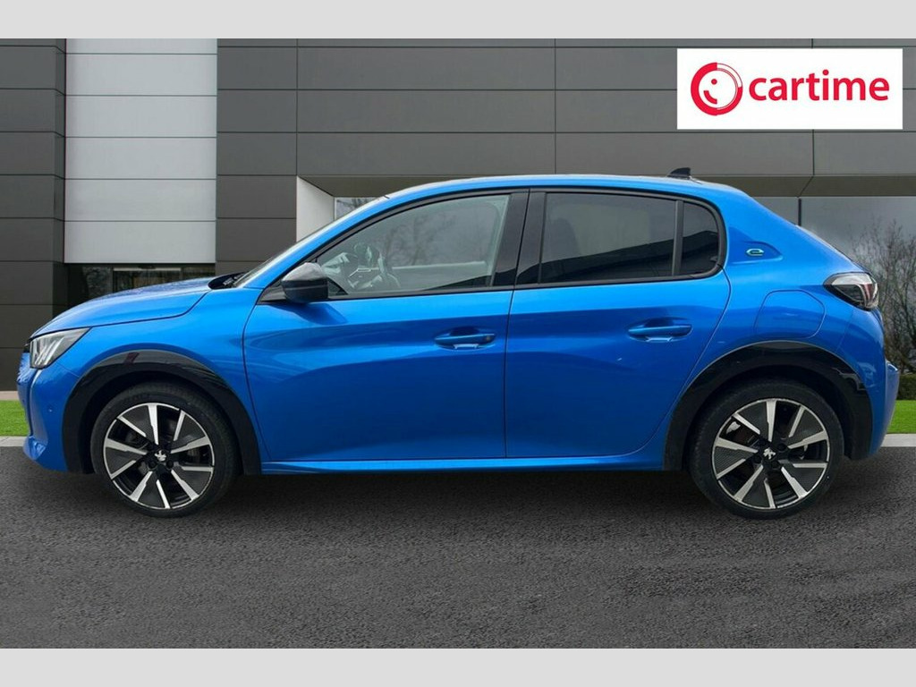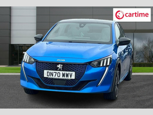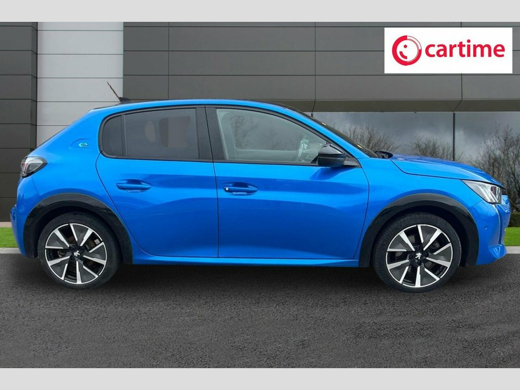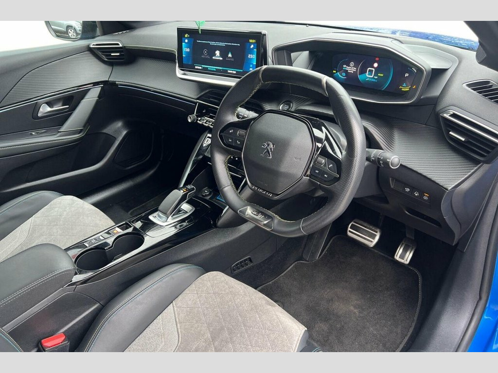 With MOT valid until January 2027 and a clear vehicle history check, this 2020 Peugeot E-208 GT offers excellent peace of mind. This electric model boasts a 50 kWh battery with a maximum range of 217 miles when new, and has covered a low mileage of just 24385 miles for its age. Inside, you'll find Automatic Dual Zone Climate Control for your comfort, and Bluetooth connectivity for seamless phone integration. Safety is enhanced with Blind Spot Monitoring and a Visibility Pack that includes automatic headlights. The Full LED Headlights with Smartbeam Assist ensure excellent illumination. Charging this E-208 GT is convenient, with a full charge at home taking approximately 7 hours and 30 minutes using a 7kW charger. For quicker top ups, the fastest public charging time from empty to 80% is a mere 30 minutes. These features, combined with its electric powertrain and the comprehensive GT trim, position this Peugeot E-208 as a superior choice for those seeking an efficient and well equipped compact car. 12V Power Socket, 17in Alloy Wheels - Shaw - Diamond Cut T, 6-Speaker Radio - MP3 Compatible, 7KW Monophase On Board Charger, 8-Colour Customisable Ambient Lighting, ABS with Electronic Brake Force Distribu, Active Safety Brake - Night Function - C, Airbags - Adaptive Driver and Front Pass, Airbags - Driver and Front Passenger Sid, Alarm - Thatcham Category 1 Approved, Automatic Door Locking When Moving Off, Automatic Dual Zone Climate Control, Automatic Hazard Light Activation Upon H, AVAS - Acoustic Vehicle Alerting System, Blind Spot Monitoring, Bluetooth Telephone Facility, Carpet Mats, Central Front Armrest with Storage Compa, Child Locking Functionality on Rear Door, DAB - Digital Audi